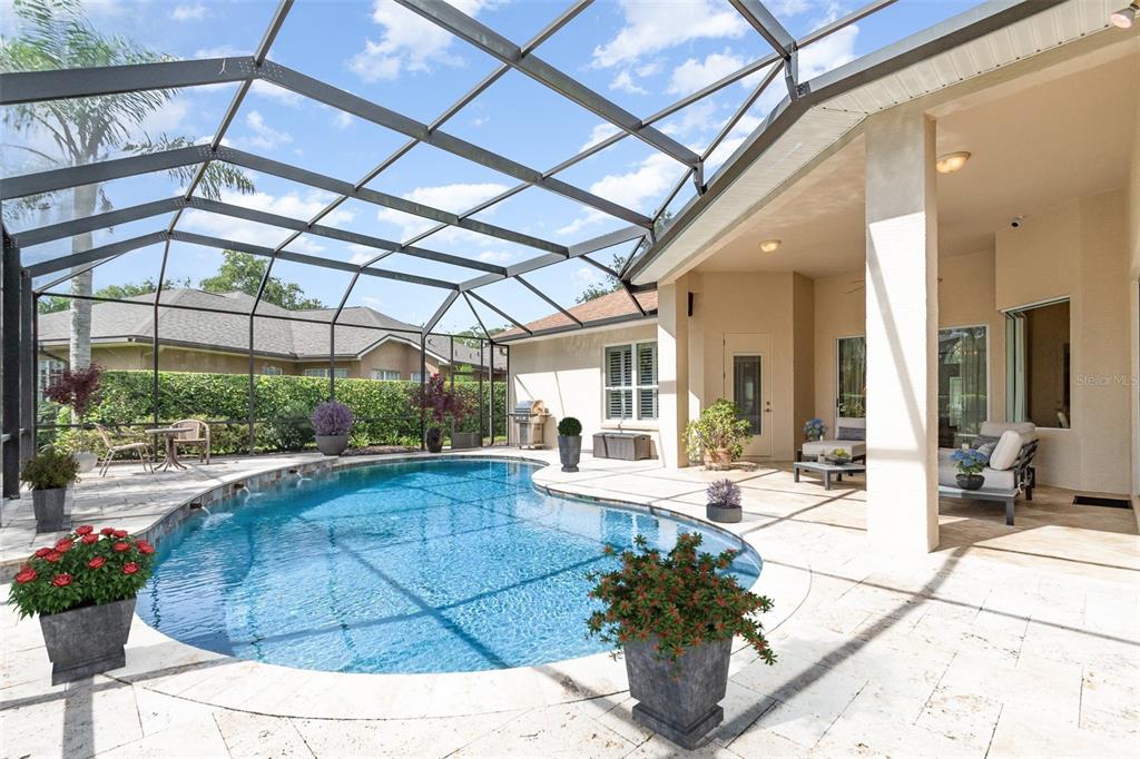 One or more photo(s) has been virtually staged. welcome to this meticulously maintained custom home designed by renowned builder peter solti. on a cul-de-sac in sought-after halifax plantation, this residence blends timeless elegance with modern luxury in a setting that perfectly balances recreation, relaxation and privacy. you'll appreciate the impeccable curb appeal, professionally landscaped grounds offering privacy and beauty on a generous 100-by-125-foot lot. go inside the double glass doors and feel the quality—from the soaring ceilings to the 8-foot doors, sliders, crown molding and plantation shutters in all bedrooms. the transitional design seamlessly blends classic and contemporary elements for a stylish and welcoming feeling. the split floor plan ensures privacy, with the primary suite and office/bedroom on one side of the home, and two guest bedrooms on the other. the primary suite is exceptional in scale and comfort, measuring 18 by 16 feet and offering private access to the lanai and pool. it features two oversized walk-in closets with custom built-ins, and a spa-inspired primary bath with a double door entry, granite-topped vanities with dual sinks, a separate walk-in shower, garden tub and water closet. this home features 2.5 baths, including a well-appointed guest bath doubling as a pool bath. with a granite counter, tub/shower combination and direct door to the lanai, it offers convenience and function for outdoor entertaining. at the heart of the home, the eat-in kitchen features modern cabinetry, stainless appliances, granite counters and a walk-in pantry. a spacious breakfast bar connects the kitchen to the family room, creating an effortless flow for entertaining. enter through the french doors from the formal dining room to a charming courtyard, ideal for alfresco meals. the adjacent living room features sliding glass doors opening to the lanai, allowing seamless indoor-outdoor access from the family room and living room. host with ease on the 20-by-22-foot covered lanai, which overlooks the stunning custom pool with a travertine deck and paramount clearo3 ozone pool water clarifier, designed for superior water quality and extended equipment life. whether enjoying a morning coffee or evening cocktail, this outdoor space offers peace and elegance year-round. additional upgrades include a new roof (2021), custom pool installation (2018), coffered and tray ceilings, 2023 hybrid water heater, double-pane windows, and a 25.7-by-22.5-foot garage spacious enough for your golf cart and more. the inside laundry room is functional and beautiful, featuring cabinetry with built-in sink. in halifax plantation, homeowners enjoy a resort-style lifestyle with optional golf, tennis, fitness and social memberships available at affordable rates. enjoy exceptional cuisine without membership at country club restaurant just a short golf cart ride from home. the community is just minutes from state parks, scenic trails and beaches. with its premium location, expansive driveway, full irrigation system with well, gutters around the entire home and pool enclosure, and move-in ready condition, this home offers a rare opportunity to enjoy luxury living in one of the area's most desirable communities. please note: seller building another home, expected to be ready on or before end of october. seller is open to an earlier closing with a lease-back agreement, offering flexibility for the right buyer.3413 REXFORD, ORMOND BEACH, FL 32174