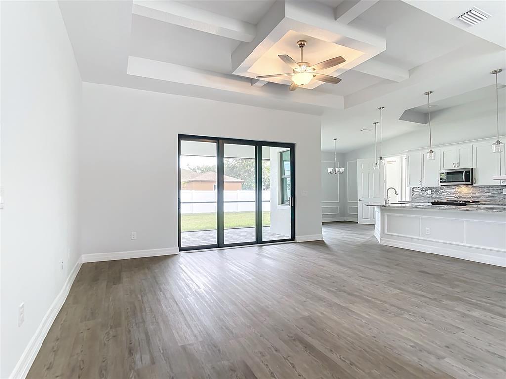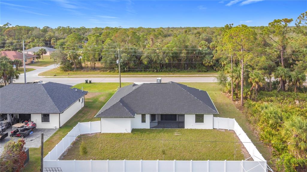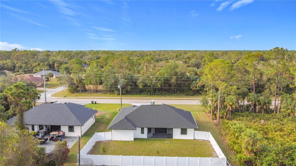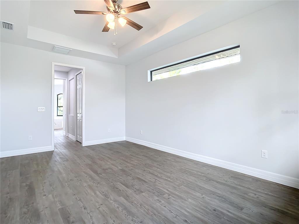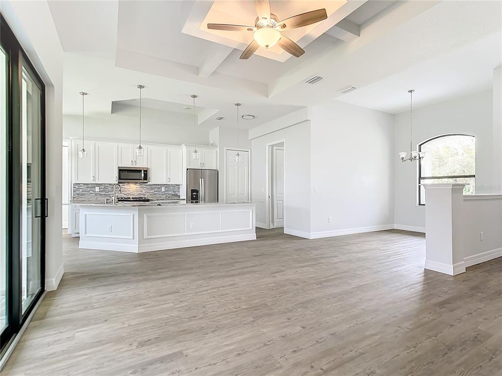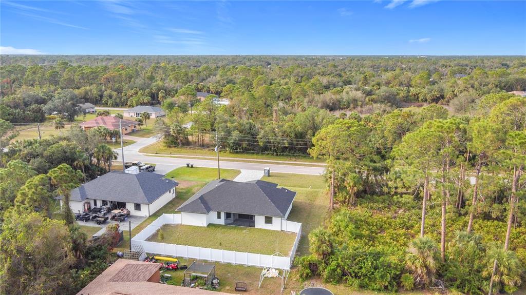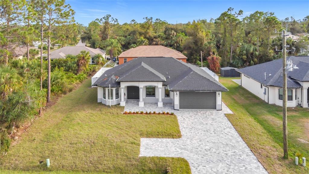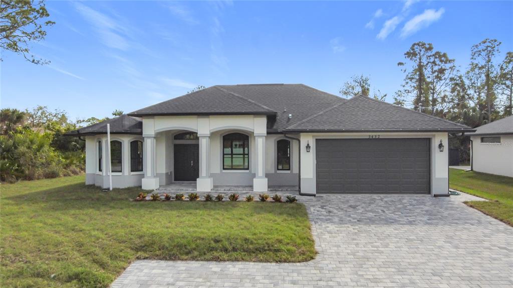 New build custom home!!! city water!!! beautiful single family, 3 bed/2 bath/2 car garage home in the heart of north port! open and split floor plan! high ceilings throughout the house ranging from 9 feet to 11 feet tall. eight foot doors!! coffered ceilings! luxury vinyl plank floorings! double door house entry! hurricane grade impact windows and glass doors! kitchen offers granite counter tops, large angled kitchen isle stretching over 15 feet long, farm sink, backsplash, pantry, whirlpool kitchen appliances! formal dining room! laundry room equipped with utility sink and storage closet! primary suit hosts double walk-in closet space, walk-in shower, tub, double vanity, separate toilet closet, exit door to back lanai from the bedroom, tray ceilings. tiled, covered and screed back lanai looks out to spacious, fenced and private backyard! front driveway is tiled and stretches over 75 feet long and 20 feet wide with an extra parking pad for easy auto-reverse or parking. rain gutters!! not a flood zone! no hoa! no cdd! convenient location and short drive to shopping centers, schools, restaurants, parks, i-75 and all necessities of life!!!3432 S CRANBERRY, NORTH PORT, FL 34286