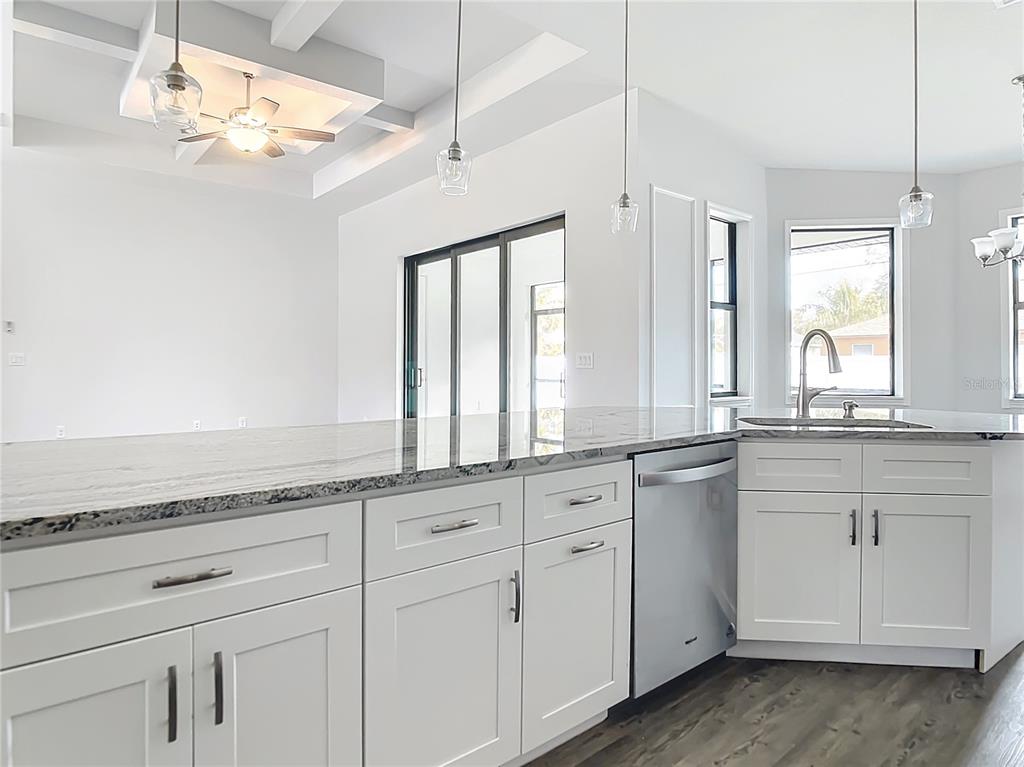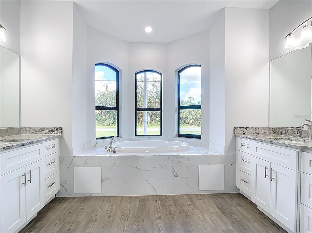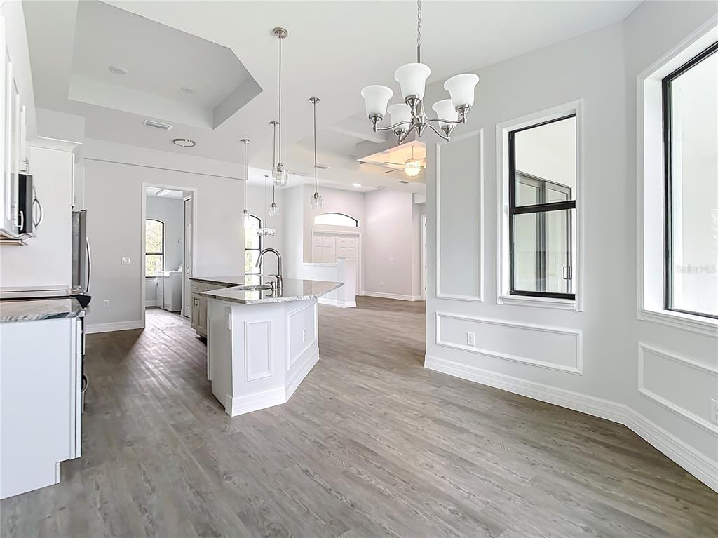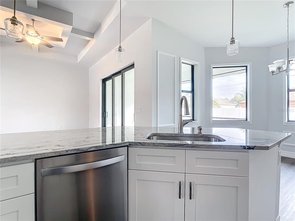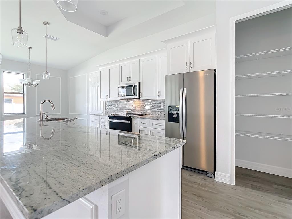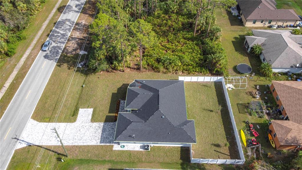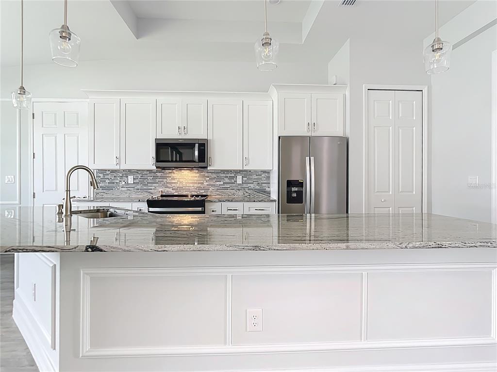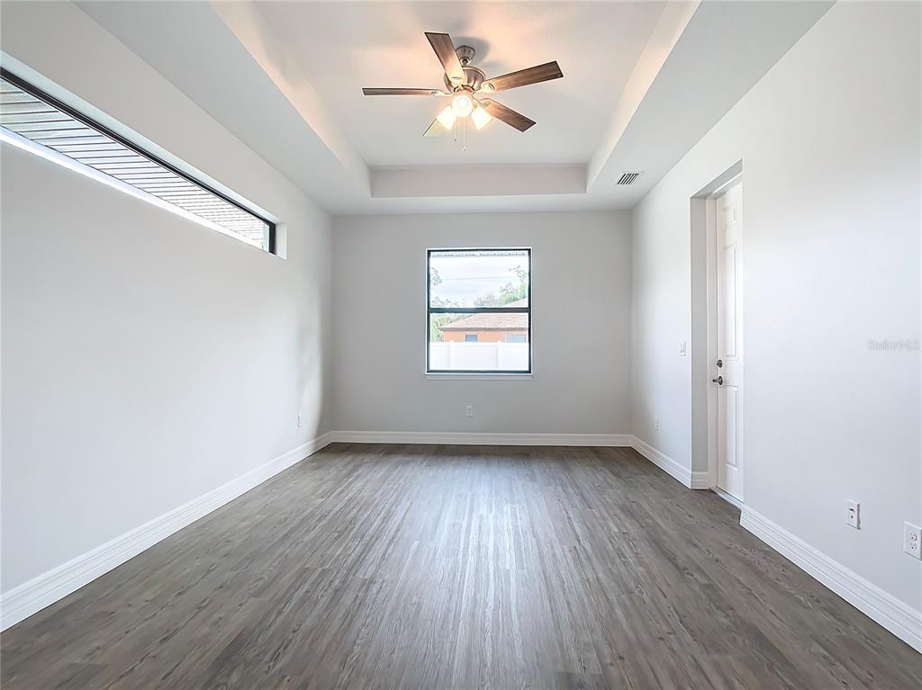 New build custom home!!! city water!!! beautiful single family, 3 bed/2 bath/2 car garage home in the heart of north port! open and split floor plan! high ceilings throughout the house ranging from 9 feet to 11 feet tall. eight foot doors!! coffered ceilings! luxury vinyl plank floorings! double door house entry! hurricane grade impact windows and glass doors! kitchen offers granite counter tops, large angled kitchen isle stretching over 15 feet long, farm sink, backsplash, pantry, whirlpool kitchen appliances! formal dining room! laundry room equipped with utility sink and storage closet! primary suit hosts double walk-in closet space, walk-in shower, tub, double vanity, separate toilet closet, exit door to back lanai from the bedroom, tray ceilings. tiled, covered and screed back lanai looks out to spacious, fenced and private backyard! front driveway is tiled and stretches over 75 feet long and 20 feet wide with an extra parking pad for easy auto-reverse or parking. rain gutters!! not a flood zone! no hoa! no cdd! convenient location and short drive to shopping centers, schools, restaurants, parks, i-75 and all necessities of life!!!3432 S CRANBERRY, NORTH PORT, FL 34286