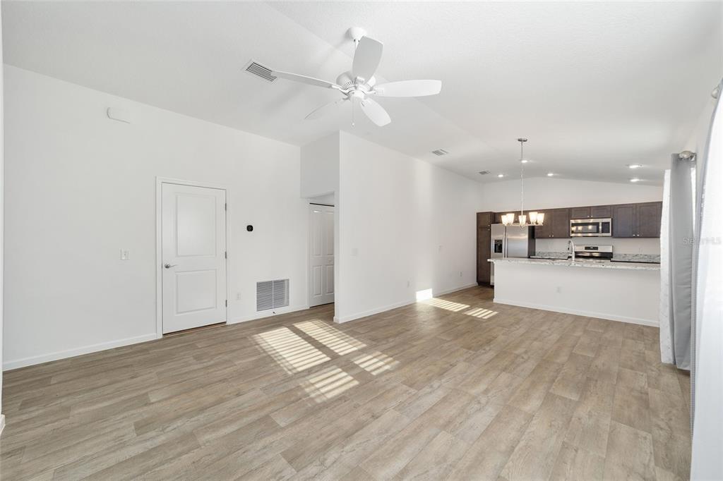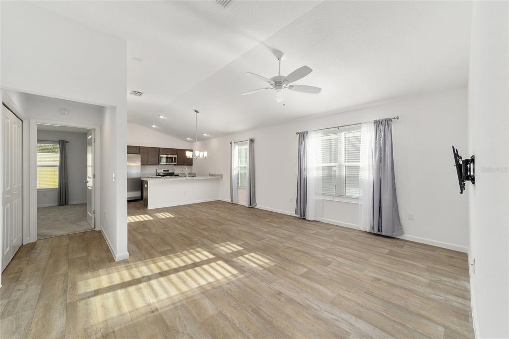 Nearly new! built in 2022 with no homes behind! this retreat model villa in the village of de luna is 2 bed/2 bath home that boasts an open floor plan modern kitchen with stainless steel appliances including a gas stove, built in pantry and a huge counter height breakfast bar. the spacious primary bedroom with a walk-in closet and en-suite bathroom with a walk-in shower. conveniently located, just off of the primary bedroom suite, is the interior laundry. with the second bedroom and bath separately located near the front of the home, the split floor plan ensures plenty of privacy for guests. the second bathroom offers a tub and shower combination with a convenient linen closet in the hallway. the one and half car garage offers plenty of space for a car and a golf cart. gas tankless water heater. the village of deluna is just minutes from deluna recreation center, close to magnolia shopping plaza and brownwood paddock square which boasts nightly entertainment. the villages has plenty of dining, shopping, medical care, pools and so much more!. easy access to the florida turnpike.3433 POSSEHL, THE VILLAGES, FL 32163