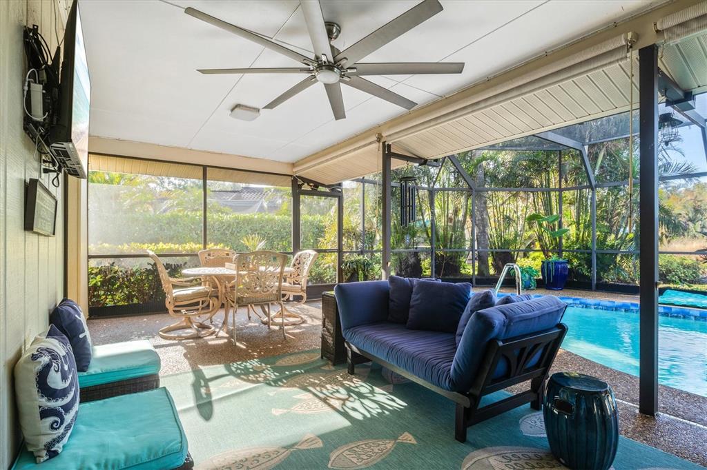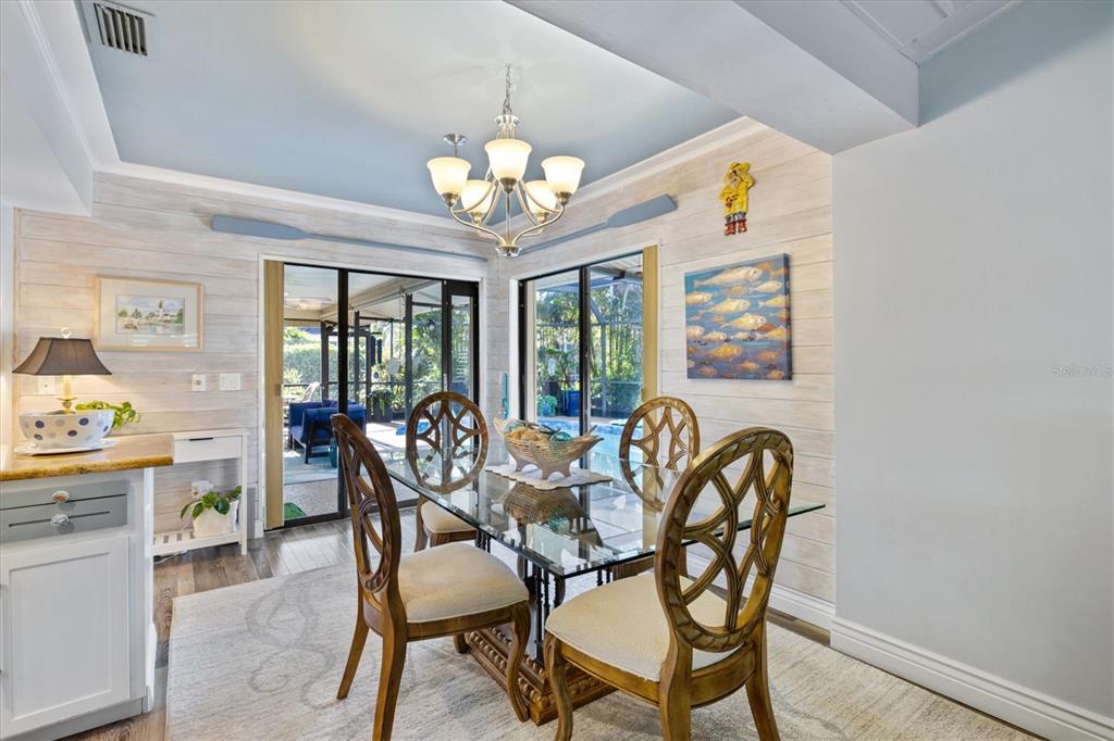 Tucked away in the desirable, active, and friendly community of englewood isles, this stunning (furnished) single-story 3-bedroom, 2-bathroom pool home is a private oasis situated on over a quarter-acre at the end of a quiet cul-de-sac and featuring exclusive beach club rights. as you arrive, lush landscaping frames the home’s charming tile roof, while over 2,300 square feet of living space welcome you inside. recent updates include: newly refinished, heated, salt-water pool to enjoy year round, newer hvac, newer water heater, front door, and garage doors. step through the new double front doors into the foyer, where a formal dining room and a spacious florida room await, complete with built-in cabinets and a work desk—ideal for a home office or study. the family room is a showstopper, boasting a custom coffered ceiling with beams and accent panels, a wet bar perfect for entertaining, and pocket sliding doors that seamlessly blend indoor and outdoor living. many windows throughout the home have been upgraded to impact-resistant glass and outfitted with motorized blinds for convenience and peace of mind. the updated kitchen is a chef’s dream, featuring granite countertops, stainless steel appliances, a mosaic tile backsplash, and a cozy breakfast nook. the owner’s suite offers a serene retreat with its own sliding door leading to the lanai, a spa-like ensuite bathroom with dual sinks, a large walk-in closet, and a separate soaking tub. the guest wing, separated by a pocket door for added privacy, includes two spacious bedrooms with walk-in closets, one of which opens directly to the lanai. the guest bathroom doubles as a convenient pool bath, enhancing the home’s functionality. the indoor laundry room provides ample storage, while the screened-in lanai becomes the heart of outdoor living. centered around an oversized inground pool and surrounded by tropical landscaping, this space offers unmatched privacy for relaxation or entertaining. for those seeking additional perks, homeowners have the option to join the exclusive englewood gardens beach club for just $125/year. membership includes private beach access, free parking, private bathrooms, picnic areas with gas grills, and more on picturesque manasota key. this home is perfectly located to enjoy the best of the gulf coast lifestyle. nearby, the englewood sports complex offers premier facilities, including fields, courts, playgrounds, a gymnasium, and a fitness room. nature lovers will appreciate the proximity to myakka state forest, where outdoor adventures like hiking, biking, horseback riding, and wildlife viewing await. just minutes from shopping, dining, golf, and entertainment, this home truly offers something for everyone. this turn-key home is florida living at it's best and a must see in the fun loving town of englewood, perfectly positioned between sarasota and fort myers. also, recently featured in southern living magazine as a top 10 town for retirement. don’t miss your chance to experience this slice of paradise—schedule your private showing today!348 RED ASH, ENGLEWOOD, FL 34223