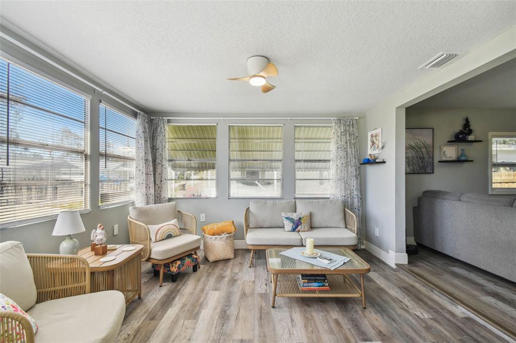 Enjoy the advantage of owning your land with no lot rent in this 55+ community. this adorable clean well maintained home has a brand-new kitchen, stainless steel appliances and granite countertops. major systems also updated in 2022, including hvac, hot water heater, roof, plumbing, windows, and electrical. kitchen and living room open floor plan with beautiful luxury vinyl flooring throughout. there is a florida room off the living room with lots of natural sunlight. the beautifully landscaped backyard provides plenty of privacy and is completely fenced. several shopping and restaurant options with dade city and brooksville only minutes away.34929 FRASER, DADE CITY, FL 33523