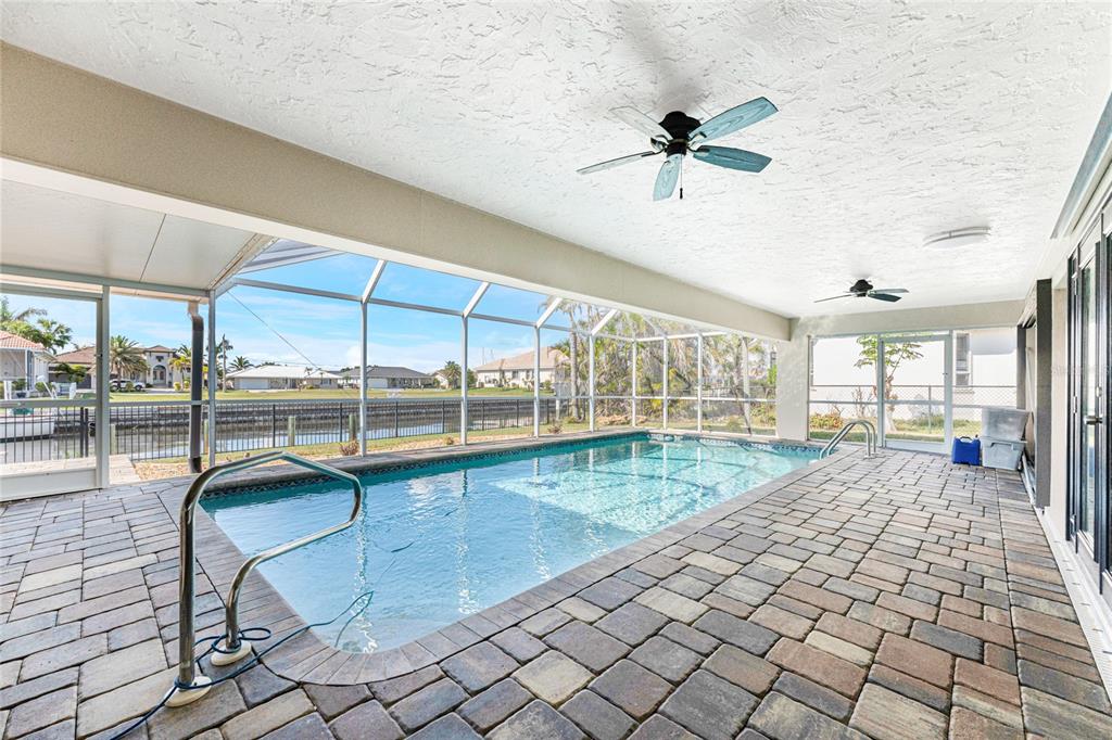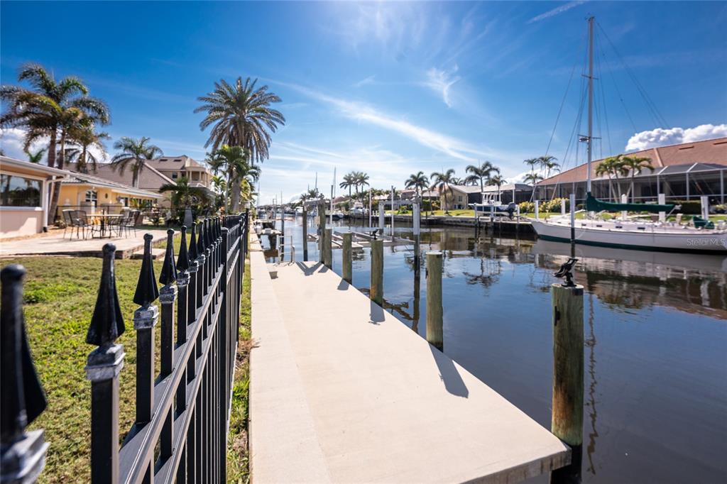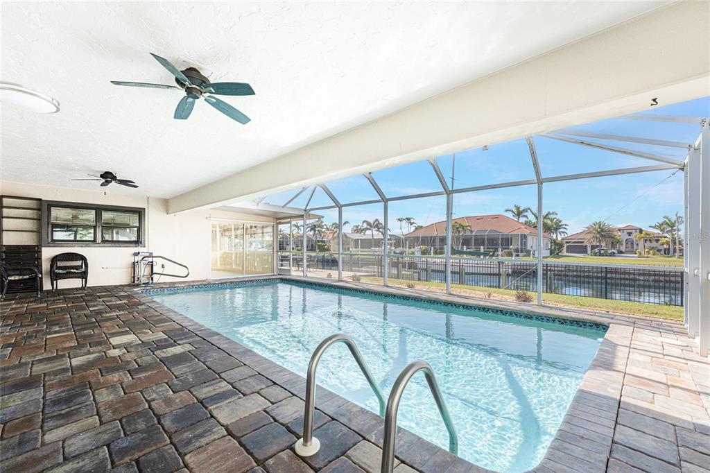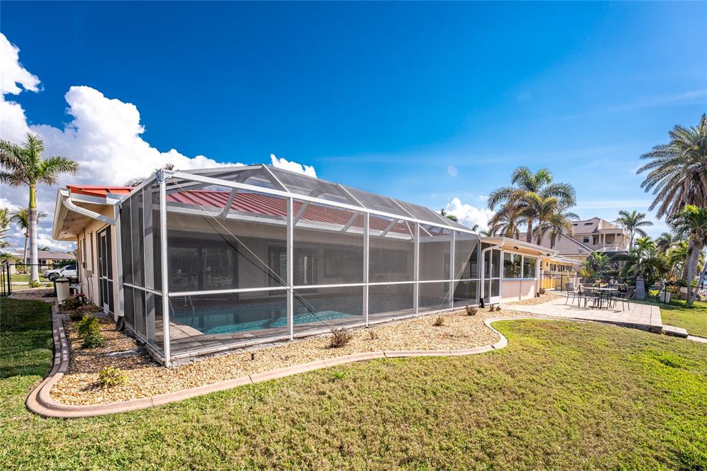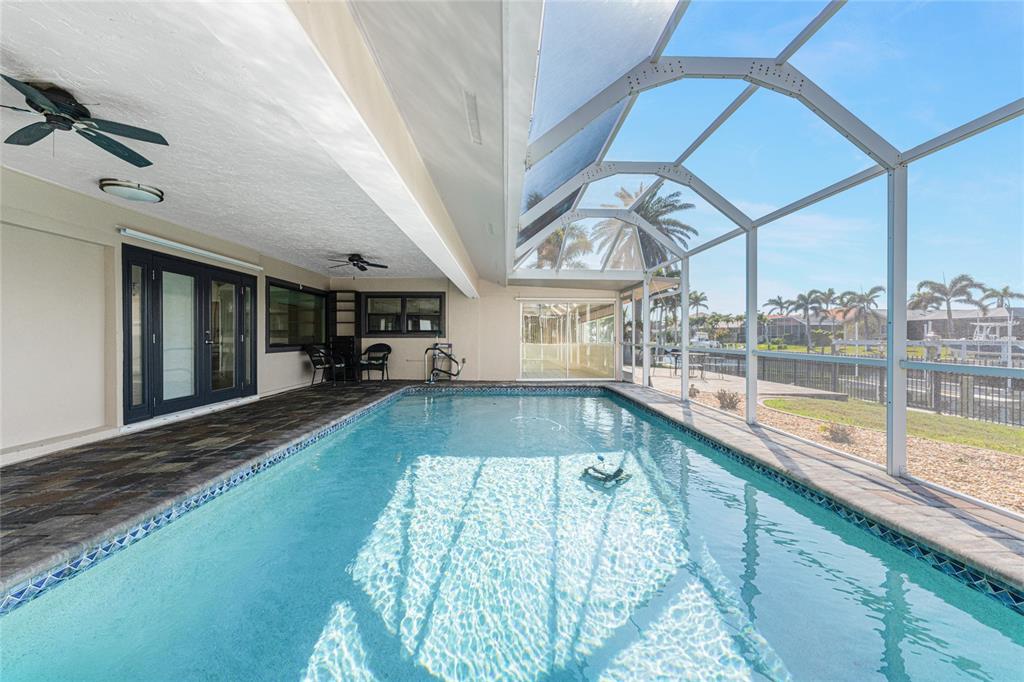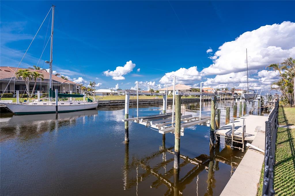 Impressive waterfront 3 bedroom, 2 bathroom home with attached 2 car garage. located in a quiet neighborhood on a dead end street in the desirable deed restricted community of punta gorda isles. this home offers quick sailboat access (no bridges) to charlotte harbor and on to the gulf of mexico. only 9 lots from the harbor. this light and bright home has numerous upgrades throughout the home. this home offers a great room, florida room, well appointed kitchen, inside laundry, screened lanai. the expansive great room features natural light through two large windows, tile floor and french doors to the lanai. the kitchen features white wood cabinetry with crown molding, beautiful quartz counters. stainless appliances are new in 2024 and include: side by side refrigerator, built in microwave, oven/range, dishwasher. the kitchen opens to the large florida room which offers fabulous water views and sliding glass doors to the lanai. there is an inside laundry room that has the electric hwh, laundry tub, cabinets and hook ups for a washer and electric dryer. the master bedroom suite features sliders to the lanai, large walk in closet with shelving and private bathroom. the remodeled bathroom offers a walk in shower with beautiful tile, full width vanity and quartz counter. there are two additional generous sized bedrooms with double closets. the guest bathroom has also been remodeled and has beautiful new shower tile, bath fixtures and full width vanity and counter. your living space extends to the screened lanai with heated inground 28x14 swimming pool (12,000 gallons), covered lanai with two ceiling fans and paver deck. there is also an open paver patio outside of the cage. continue to the waterfront with 85 foot concrete seawall maintained by the city of punta gorda, 40 foot concrete dock with access ladder and 10,000 lb boat lift with genie remote installed in 2017. the backyard is fenced with fencing that does not block your view and you can see charlotte harbor from the backyard. other features include: new metal panel roof and gutters (2024), double pane bay windows in the front great room and florida room (2023), new 4 ton a/c air handler and condensing unit (2024), exterior painted 2023, interior painted 2024, tile floors and attractive window blinds throughout the home, hurricane shutters 2023, exterior double door entry with glass panels 2025, spotless side entry garage, new epoxy garage floor 2025, security access door to garage 2023. punta gorda isles is deed restricted but there is no hoa. utilities are city water and sewer. this home is 5 minutes from golf and 10 minutes from fishermen's village and historic downtown punta gorda shopping, dining, medical care, waterfront parks, boat ramps, fishing piers, walking and biking paths, art galleries, charlotte harbor event center, weekend farmers markets, downtown events and more! this is a beautiful home in a great community perfect for year round living, a winter retreat or investment property.35 SABAL, PUNTA GORDA, FL 33950
