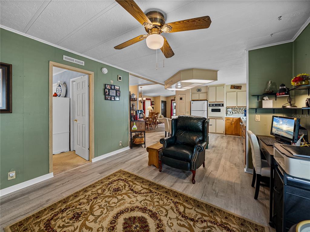 Walk-In Closet(s)Ceiling Fan(s) Eating Space In Kitchen Living Room/Dining Room Combo Open Floorplan Solid Wood CabinetsCrown Molding Primary Bedroom Main Floor Kitchen/Family Room ComboExterior Features: