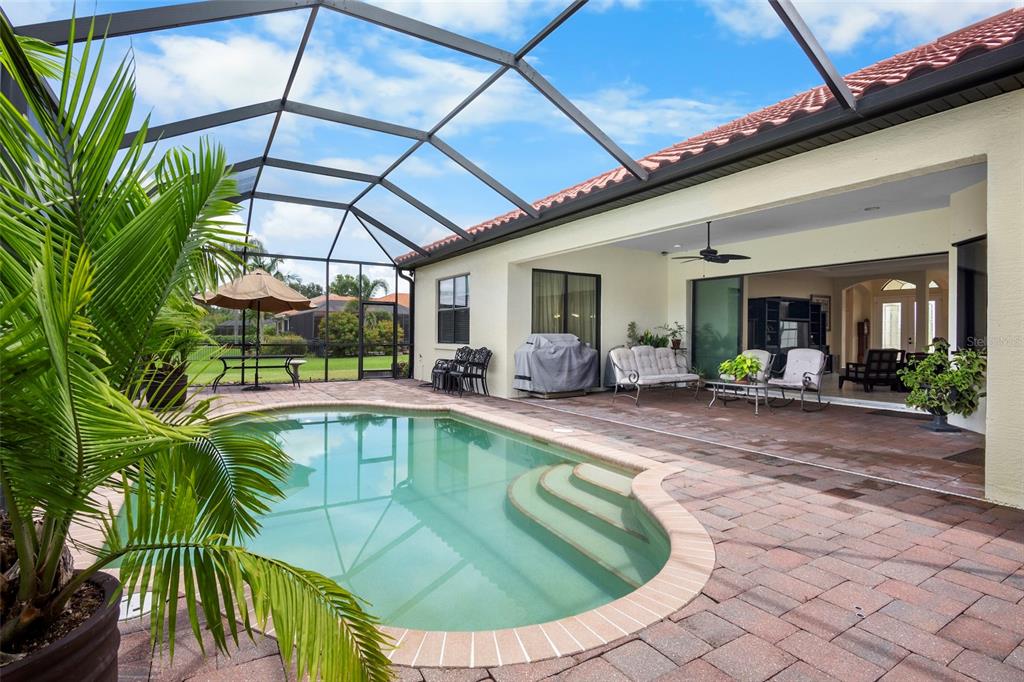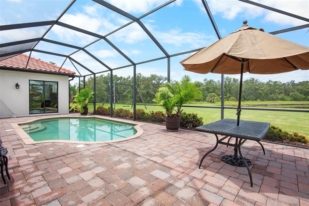 Beautiful home located in the highly sought after neighborhood of twin rivers. if you are looking for a large home with plenty of greenspace, look no further. this home has over 3400 square feet and sits on an acre of land. this is a rare find in parrish. this home has 3 bedrooms, 3 baths with an office, playroom, and a 19x17 bonus room. the playroom/bonus room area could be used as an in-law suite, place for all of your kids toys or for entertaining large get togethers. the uses are endless! the moment you walk through the front door, you will be amazed by the 11-foot ceilings in the great room and the view out the triple pocket slider. the gourmet kitchen overlooks the great room, which leads to the patio and pool area. the large patio has brick pavers and a saltwater pool with an electric heater. the views on the patio overlook the beautiful pond and preserve area. at night, the sunsets over the pond are breathtaking! this home also has a 4-car garage, tile roof and a brick paver driveway. twin rivers has a boat ramp that you can launch a small boat or kayak from and docks for fishing. you will not want to miss this home and the lovely amenities that twin rivers has to offer!3511 TWIN RIVERS, PARRISH, FL 34219