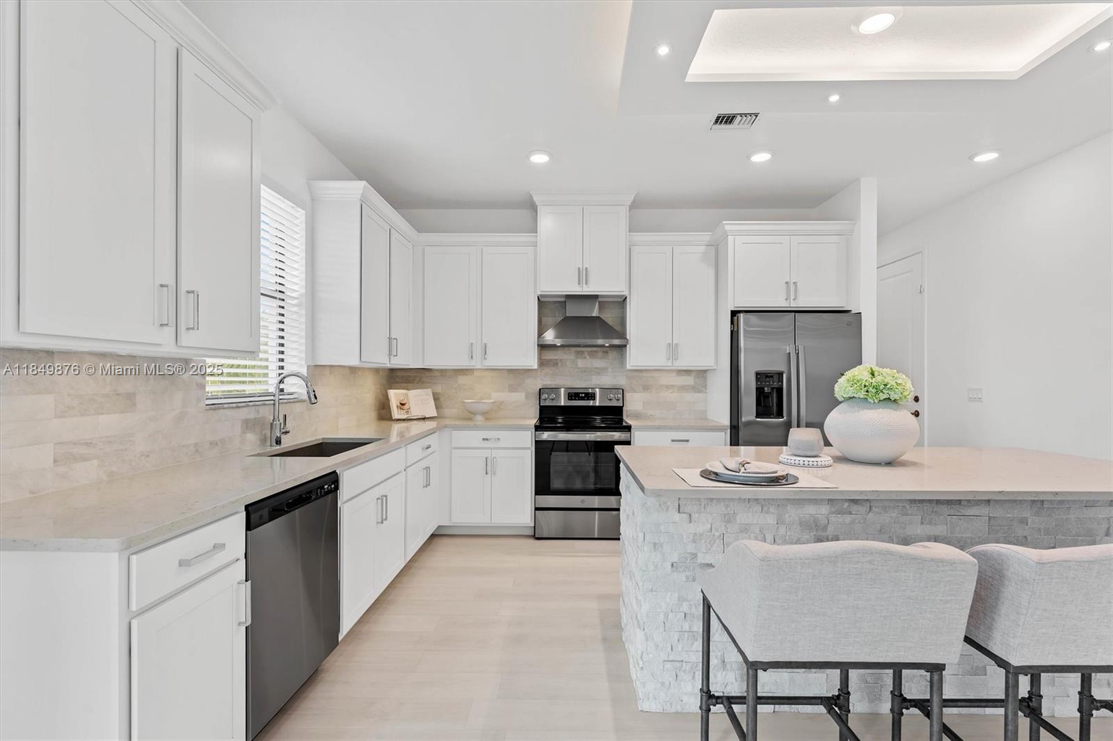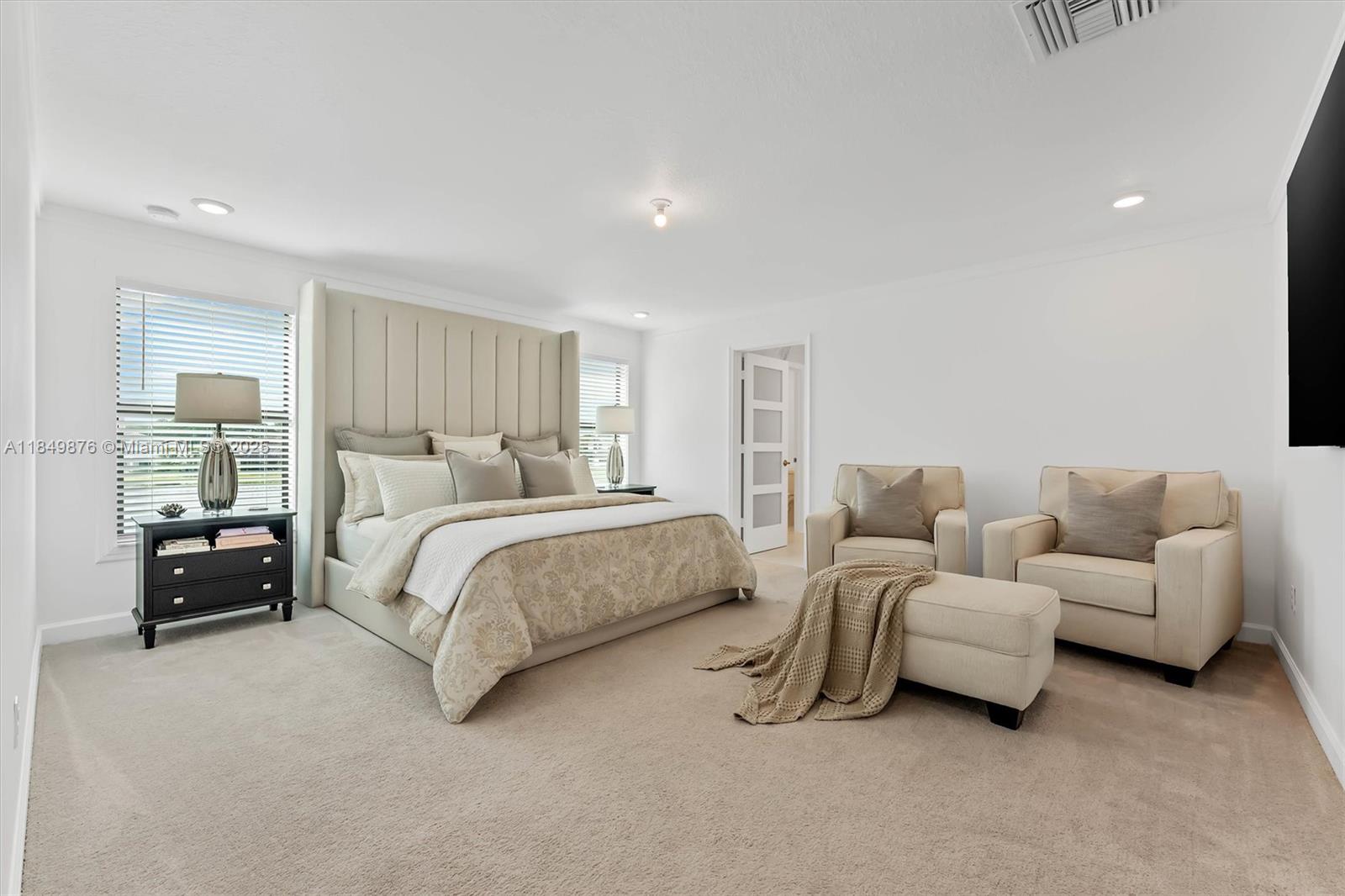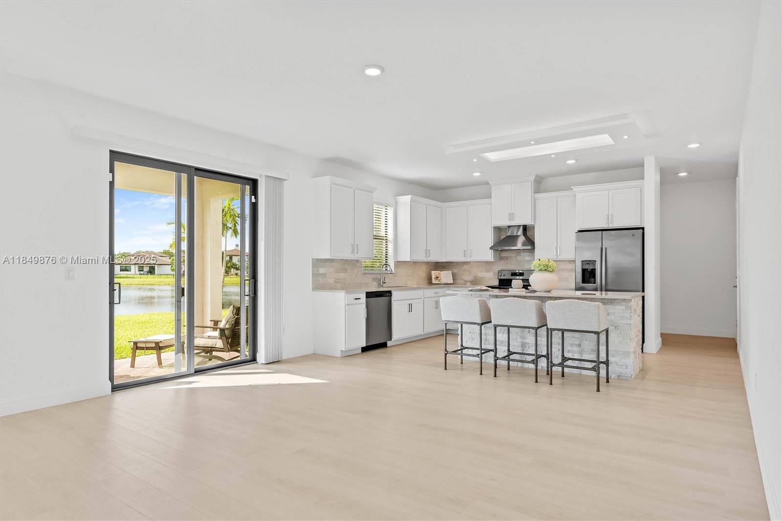 Exquisite 4-bedroom + den/office(can be 5th bdrm), loft, 2.5-bath lakefront home in bellasera! this 2022 home offers an open-concept layout with designer finishes. the gourmet kitchen features wood cabinetry, ss appliances + hood, quartz countertops, and stone tile backsplash. dreamy walk-in pantry includes a wine cooler, coffee bar, and under-cabinet lighting.spacious primary bedroom has a sitting area. luxury vinyl floors, custom closet systems, lighting enhancements on first floor and illuminated stairs with glass railings add elegance. enjoy lake views from the patio with room for a pool. additional features include hurricane-impact windows, a 3-car garage, no neighbors on the right, and beautiful landscaping with nighttime lighting.don't miss the opportunity to own this stunning home.3520 HALDIN PL, ROYAL PALM BEACH, FL 33411