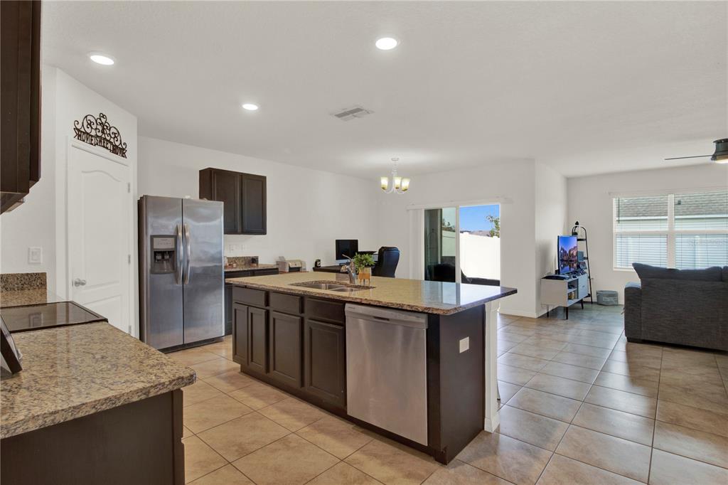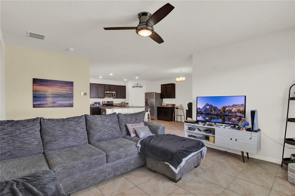 Walk-In Closet(s)Ceiling Fan(s) Thermostat Open Floorplan Window Treatments Solid Surface Counters Kitchen/Family Room ComboExterior Features: