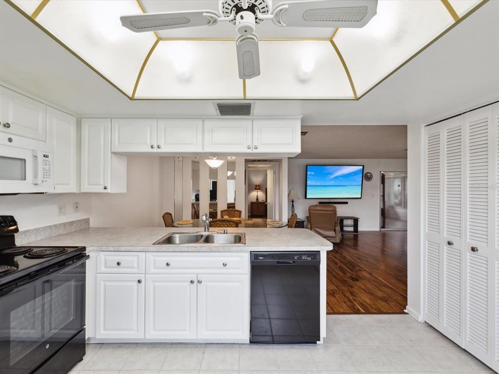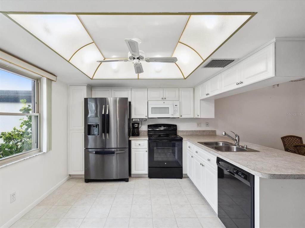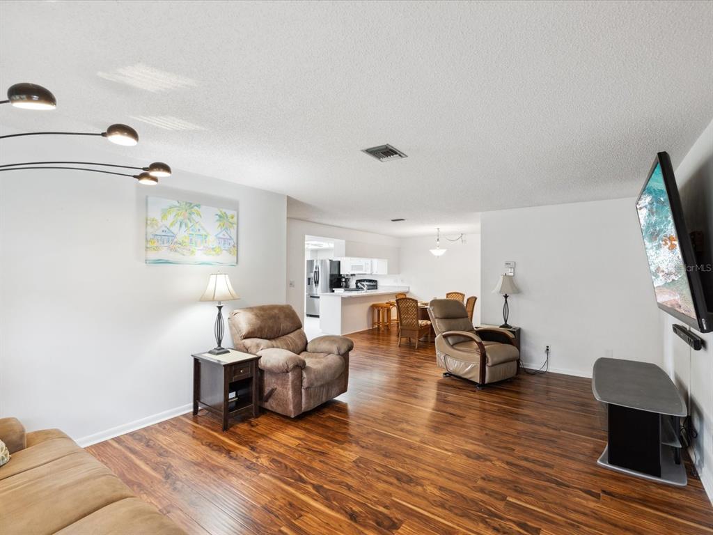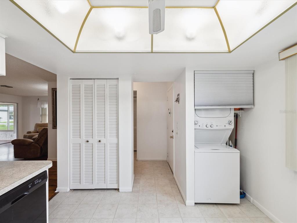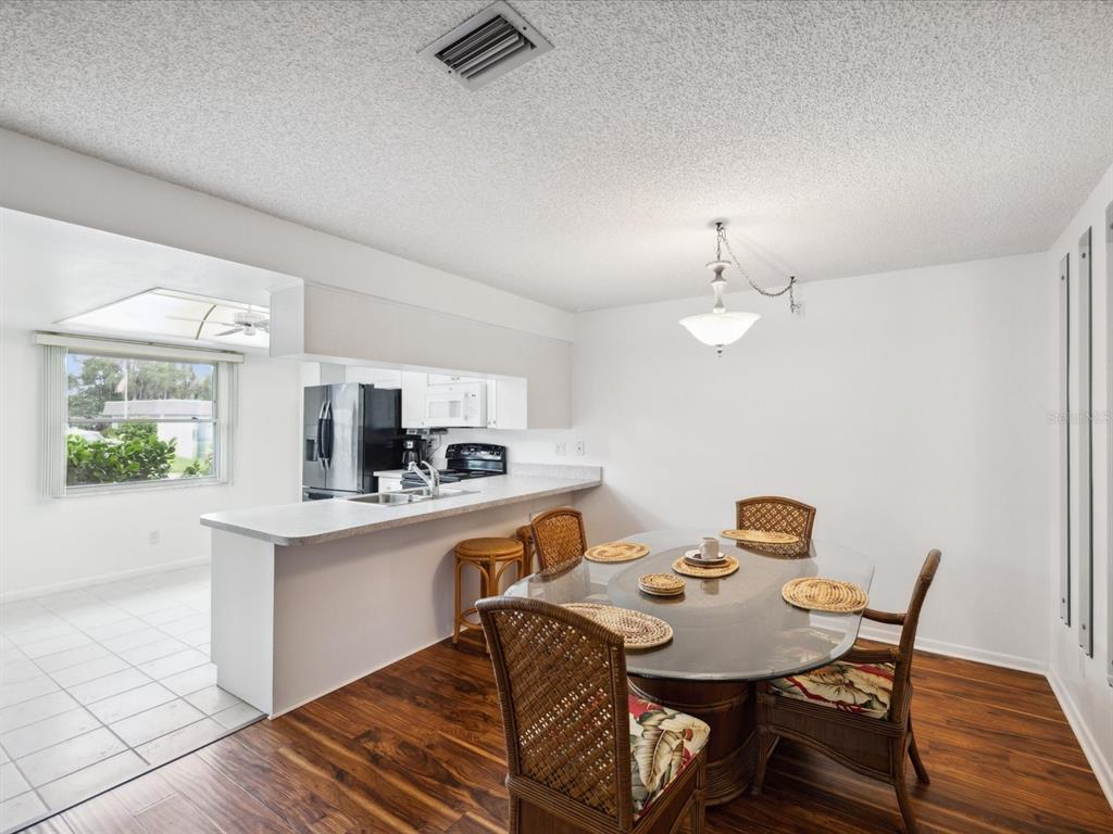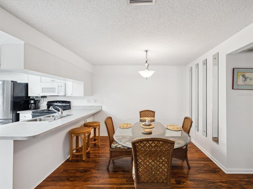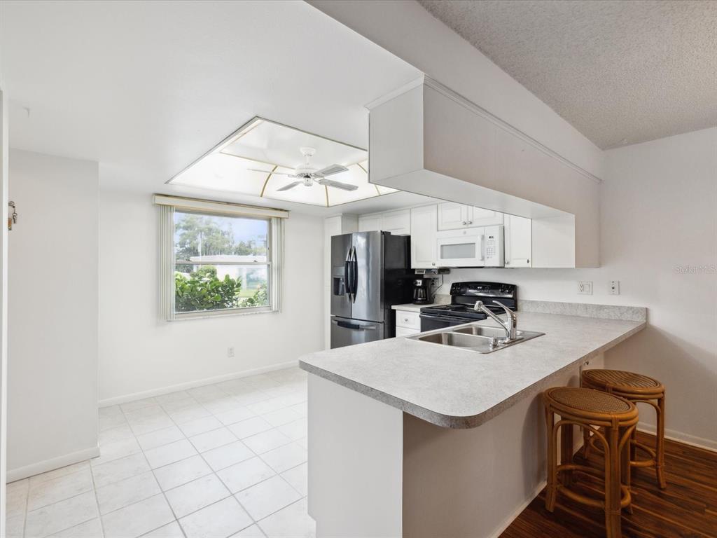 Welcome to seven springs golf & country club - a golf course community for all ages w/24-hour gated security! enjoy this charming 2 bedroom, 2 bath, end-unit condo featuring a split bedroom floor plan w/wood-look tile flooring throughout, new carpet in second bedroom, fresh interior paint, new roof 2024 & hurricane shutters. the kitchen boasts plenty of cabinets/counterspace, pantry, laundry closet w/stackable washer/dryer & breakfast bar connecting the kitchen to dining room. the spacious living room leads to a relaxing florida room & back patio. each unit includes one covered parking space, shared guest parking & storage unit just outside your front door. the monthly condo fee includes 24-hour guard gate, security, cable tv, internet, water, sewer, trash pick-up, insurance, exterior paint, roof, pest control, lawn care, common grounds maintenance, & escrow reserves fund. there is an optional social membership offering something for everyone - two 18-hole golf courses, pro-shop, clubhouse w/restaurant, tennis courts, & 2 community pools. all of this and a perfect location - minutes to shopping, medical, dining & more! furnishings are negotiable & the seller is offering a one year home warranty. call today to schedule your private showing.3544 TEESIDE, NEW PORT RICHEY, FL 34655