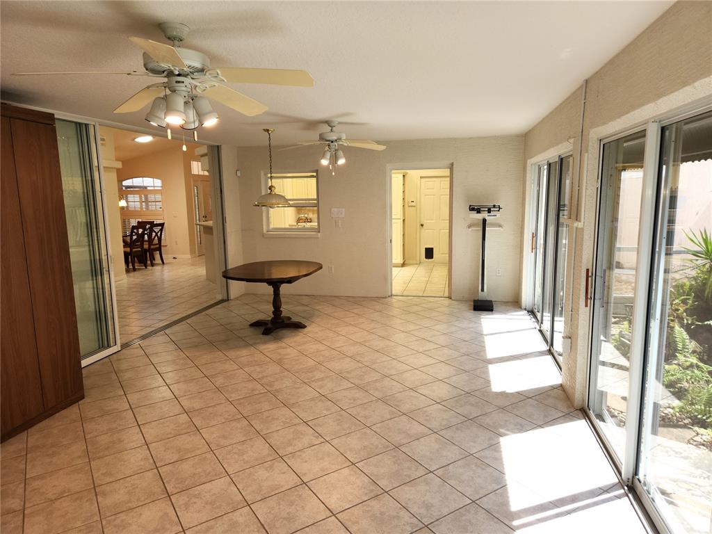 3 bedroom home at the palms of 7 hills- enter the home from the front screened porch to the tiled entry foyer- there is a great room- formal dining room- kitchen with a center island with a small sink plus dual sinks , a breakfast bar, pantry, cook top stove wall oven and wall microwave- the main bedroom has a walk in closet with clothing organizers, dual sinks and a tiled shower- the enclosed lanai, florida room measures 25x16 with a murphy bed- plus there is an inside laundry room with a wash tub and wall cabinets- extras include a screened garage, interior paneled doors, plant shelves, vaulted ceilings, all tile flooring, irrigation system, screened porch, pond with a water fall ,attic pull down stairs, garage door opener- fenced yard, open floor plan- call today for a showing.Villa 3 bedrooms - PALMS AT SEVEN HILLS for Sale