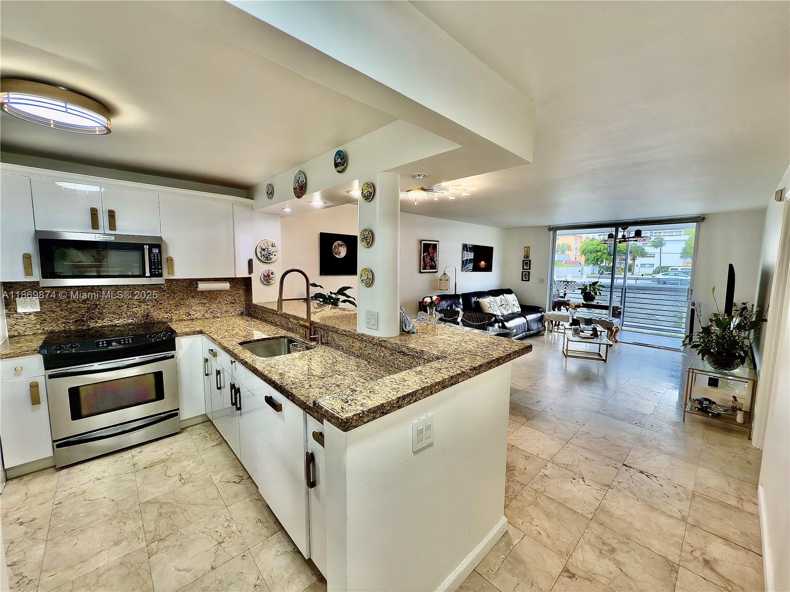 Boat-lover's retreat in ultra-quiet 55+ eden isles, canal-front minutes to the ocean. bright 1br first-floor garden home with screened balcony facing the canal and private docks. elegant new kitchen with wood cabinetry, granite, bosch dishwasher and a brand-new convection oven/microwave; custom closets, updated high impact doors and lighting. 2025 a/c with transferable warranty; impact entry (per owner). hoa includes cable, internet and water. heated pool, clubhouse, gym, billiards and community shuttle. dockage to rent or buy – bring your boat! surrounded by ultra-luxury homes and towers with private docks, including williams island, acqualina and the future intracoastal/uptown harbour. 3-d virtual tour & floor plan available – call listing agent.3551 NE 169TH ST #105, NORTH MIAMI BEACH, FL 33160