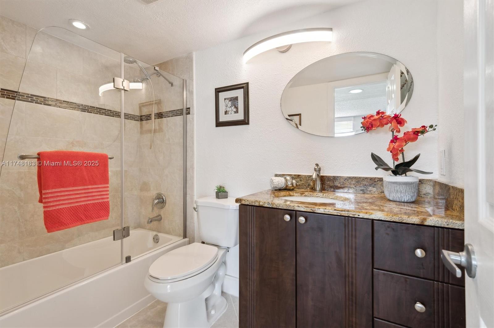 Turn key condo with stunning golf course & lake views. enjoy breathtaking long lake views from your screened terrace in this bright and beautifully designed turnkey condo, perfectly situated on a scenic par-3-golf course .this well-appointed 2/2 home in a 55+ community features a modern designer kitchen with a convenient lunch granite counter , allowing you to take in picturesque views from the moment you step thought the front door , spacious second bedroom with a murphy bed for flexible use ,elegant livingroom with a high quality italian leather couch, hurricane proof patio door for peace of mine in the livingroom, tile throughout for stylish finish, parking right in front your door live the resort life with free golf (rec lease paid )7 pool , 14 tennis court, theater , gym ,restaurant361 S HOLLYBROOK DR #107, PEMBROKE PINES, FL 33025