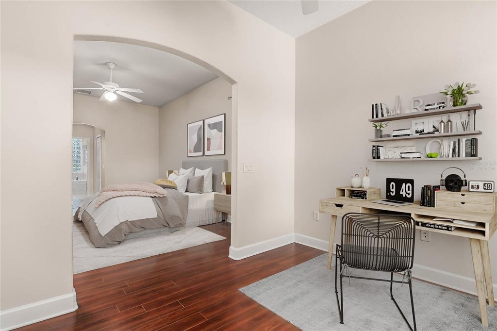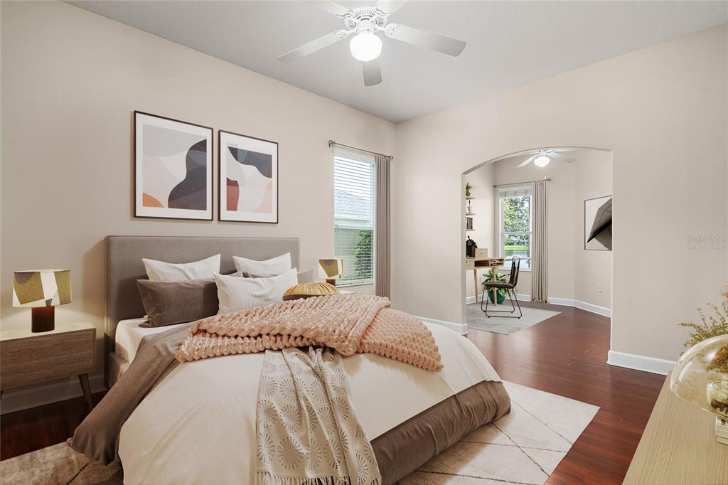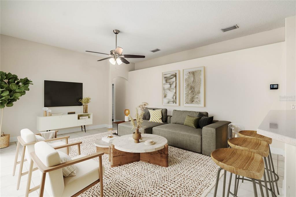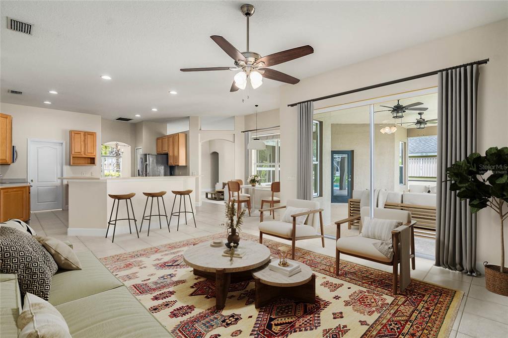 Ceiling Fan(s) High Ceilings Living Room/Dining Room Combo Open Floorplan Window Treatments Solid Surface Counters Solid Wood Cabinets Primary Bedroom Main Floor Kitchen/Family Room ComboExterior Features: