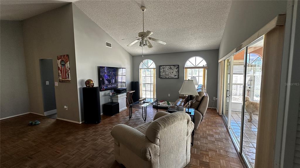 Split Bedroom Vaulted Ceiling(s)Ceiling Fan(s) Eating Space In Kitchen High Ceilings Living Room/Dining Room Combo Thermostat Window Treatments Solid Surface Counters Solid Wood Cabinets Primary Bedroom Main FloorExterior Features: