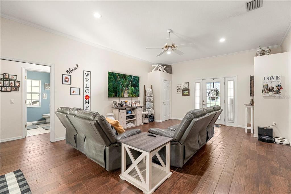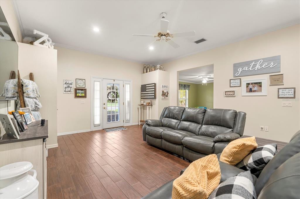 Split Bedroom Walk-In Closet(s)Ceiling Fan(s) Eating Space In Kitchen High Ceilings Open FloorplanCrown MoldingExterior Features: