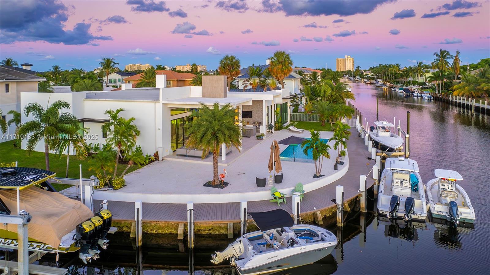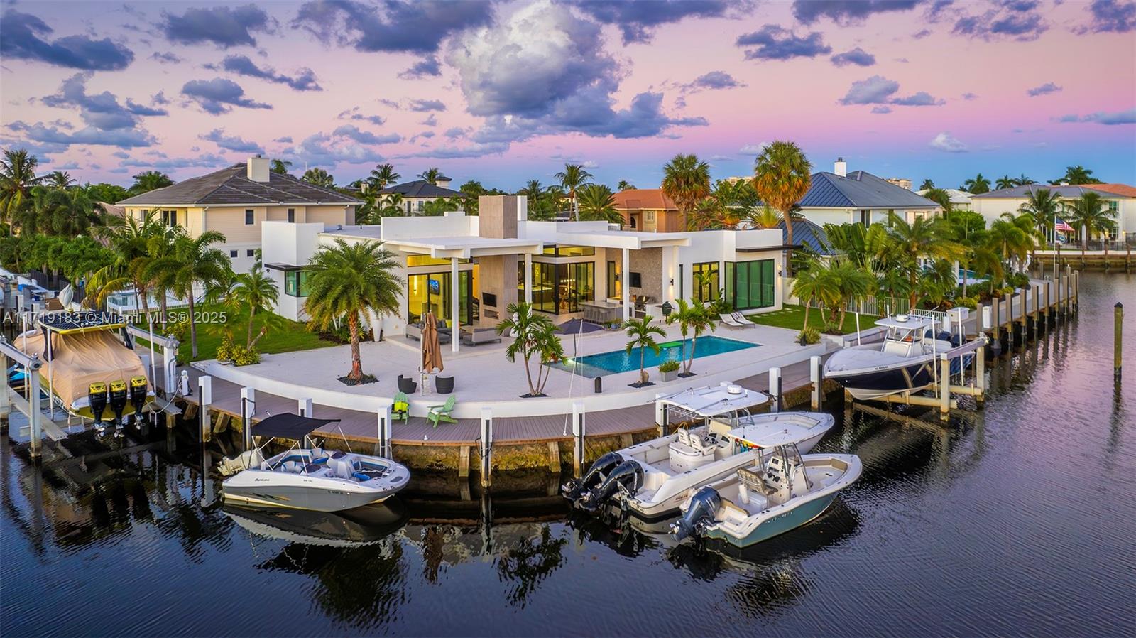 Experience the epitome of luxury in this brand-new modern ranch-style home built by renowned zahn builders, positioned perfectly on a coveted southern point lot. boasting over 200' of prime waterfrontage on the south grand canal, this gem is just minutes from the ocean. the home spans over 4,700 total square feet, including more than 3,000 square feet of outdoor space. revel in the meticulous design with 3 primary-sized bedrooms, 4.5 lavish baths, a state-of-the-art gym, and an expansive 4-car garage. outdoors, enjoy the convenience of two 25k lb lifts, perfect for your boating needs. the open-concept interior showcases no-expense-spared finishes, including mesmerizing backlit onyx countertops and select materials that exude opulence. a rare gem, this home defines sophisticated living.3701 NE 26TH AVE, LIGHTHOUSE POINT, FL 33064