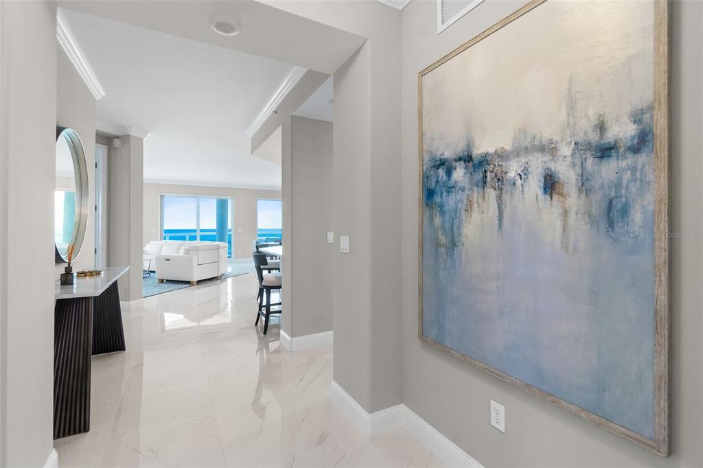 Coveted southern exposure direct oceanfront! discover the captivating synergy of ocean views seamlessly blended with coastal elegance throughout this luxurious residence, which stands as one of the region's most esteemed offerings. (**seller financing available with 30% down**). 3 parking spaces, storage room and cage included. delivered furnished, this exceptional direct oceanfront home has been curated with a designer's vision and elevated through meticulous upgrades to a standard that is uncommonly achieved. ocean villas is an amalgamation of exquisite architecture and a masterpiece of uncompromising quality amidst the white sands of the shores. this extraordinary offer includes a semi-private elevator that graciously leads you to your large personal vestibule, opening to a grand presidential double door entryway that embodies the essence of a luxurious home. spanning 3 bedrooms and 3 bathrooms, this impressive property offers 2,471 square feet of living space, featuring two master suites and breathtaking ocean views from every room. the rotunda is adorned with a modern, minimalist, light with a spiraling suspension interwoven with contemporary glam. the shiny 24x24 porcelain tile flooring with grey veining artistically sets the scene of opulence. the european kitchen cabinets are elegantly accentuated by quartz countertops and a grey backsplash. this space features a sub-zero refrigerator, wine fridge, and an 11-foot island. plus, a center island with waterfall edge. stylish pendant lighting provides the perfect finishing touch to this oceanfront oasis. open the blinds to unveil a stunning ocean view through over 30 feet of floor-to-ceiling glass, panoramically encompassing the living room and providing an ideal setting for both relaxation and entertainment. the primary suite serves as a perfect escape, offering enchanting ocean views that extend to the balcony. it features a walk-in closet for the lady of the house and a distinct gentleman's closet crafted in wood. the bath features contemporary white cabinets with stainless handles, a magnificent walk-in shower, jetted tub, toto toilet, and separate water closet. two additional oceanfront bedrooms with ensuite and balcony. laundry room with sink and storage cabinets. the translucent railing on the balcony captures the direct ocean views as the waves crash in. the wide-open space is circular shaped encompassing 525 square feet, perfect to create several vignettes, with a southeast wraparound orientation that encompasses a 270 degree sweep from the atlantic ocean to the intracoastal. its grandeur begs for undisturbed moments of tranquility before embarking on your journey to the breathtaking beach. experience the crown jewel of the shores with its exclusive amenities: a zen meditation area, oceanfront pool, lush landscaping, two glass-enclosed business centers, a grand owners club room, state-of-the-art fitness center, hot tub, and an opulent double-height lobby featuring stunning marble throughout. pet-friendly. schedule your personal tour today! all information intended to be accurate but should be verified.3703 S ATLANTIC #507, DAYTONA BEACH SHORES, FL 32118
