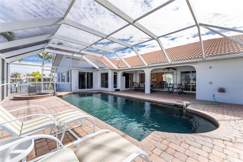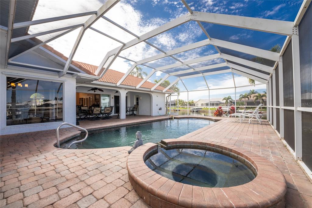 Welcome to your piece of florida paradise! located in the highly sought-after burnt store isles community in punta gorda. this waterfront property is a boater's and golfer’s dream! open water access in a matter of minutes along with the twin isles country club for the golfer. this beautifully maintained waterfront pool home is situated in a cul-de-sac on a sprawling tip lot and boasts 2,904 square feet of living space. it features the open/split floor plan providing perfect spaces for all, including living room, dining room, family room, 3 bathrooms, and 3 spacious bedrooms all connected to the beautiful outdoor area that makes this perfect for living out your florida dream lifestyle. the moment you arrive at this home you will begin to appreciate the upgrades from the tile roof, front portico with double door entry, nicely landscaped yard with water fountain, lighting and soaring palms. the front entryway opens into the formal living/dining room that features a mix of plush carpeting and tile flooring, soaring ceilings, a wall of disappearing glass sliders with water views, and and lots of space that flows effortlessly into the kitchen. the kitchen showcases corian countertops, an abundance of cabinet and draw space, a built-in microwave and convection oven, an electric cooktop, and trash compactor. enjoy casual meals in the dinette space overlooking the pool or entertain family and friends in the spacious great room. your primary suite with private pool access features two walk-in closets, carpet flooring and a fabulous en-suite' showcasing a walk-in shower, jetted soaking tub, and granite countertop vanity with dual sinks. family and friends alike will appreciate the guest area with two guest bedrooms each with its own walk-in closets, a full bathroom and is tucked away from the living area ensuring privacy for all. the versatile office/den offers flexibility and could easily serve as a third bedroom to accommodate guests or family members. outside is an entertaining delight with an oversized pool/lanai area showcasing a sparkling heated pool with attached hot tub, pool bath with walk-in shower, brick paver deck, covered lanai with ceiling fans, pool cage with new screens and fabulous intersecting canal water views. take in the view and florida breeze on the added outdoor patio area. this stunning home is situated on a corner with wide water views and has 185’ of cement seawall, water/electric, and 14x8 concrete boat dock offering endless opportunities for boating and water activities. the home also features an oversized 2-car garage, an inside laundry room with storage space and utility sink, hurricane shutters, central vac, irrigation, 2 a/c units (one just replaced with transferable warranty) and 2 water heaters. close to i-75/us41 and nearby to fishermen's village, downtown punta gorda shops & restaurants, great boating, fishing, sailing, and more. home is completely spotless and waiting for you. come enjoy the florida lifestyle in this impressive home.3705 TOULOUSE, PUNTA GORDA, FL 33950