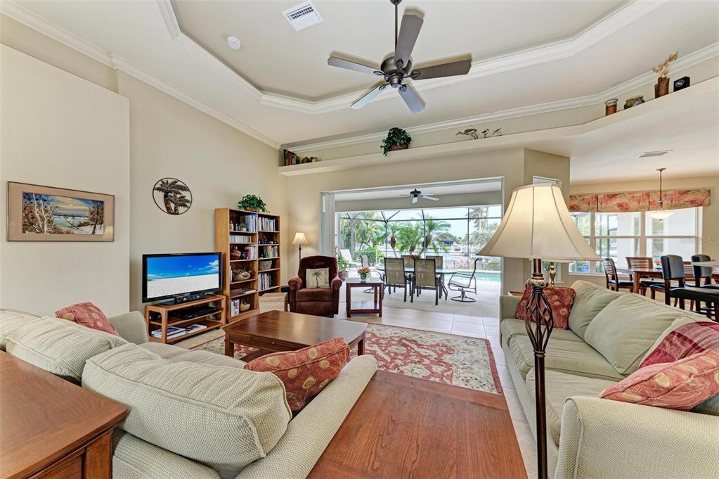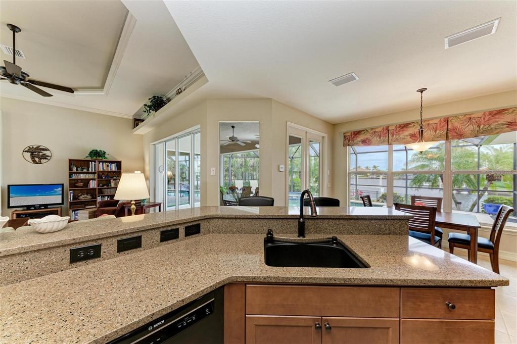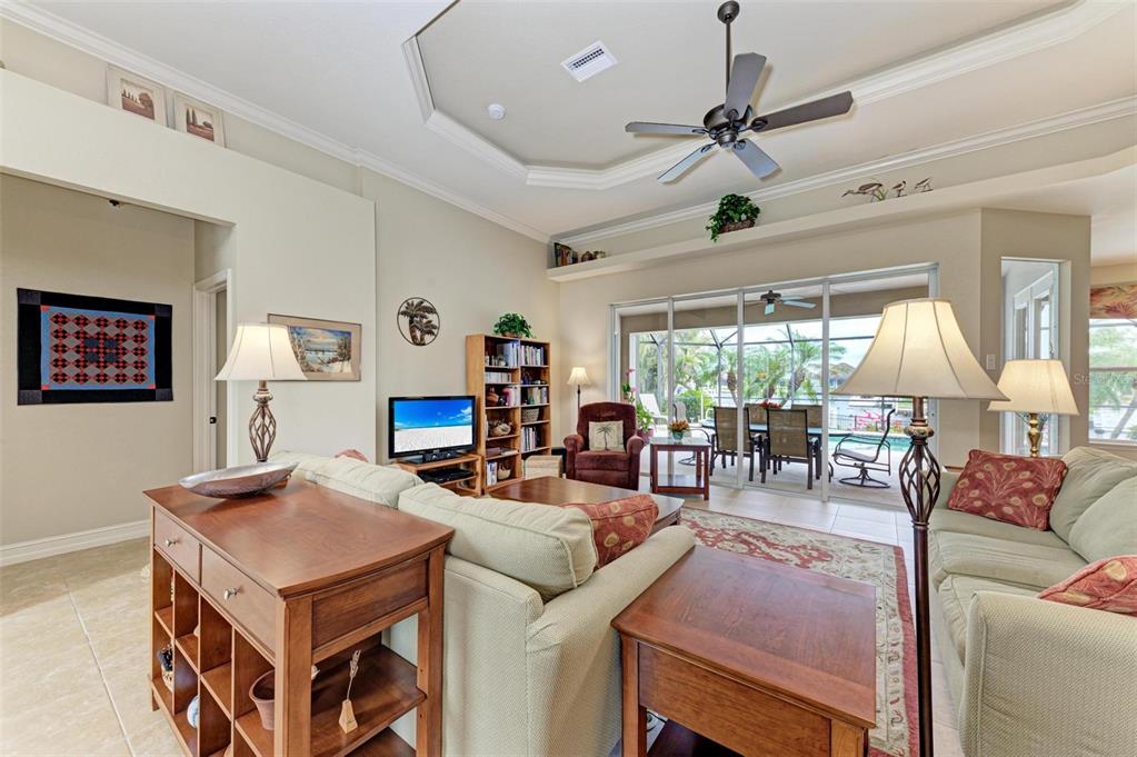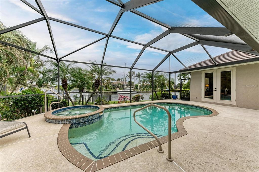Discover this beautifully maintained three-bedroom, two-bathroom heated pool home with spa, located in the serene "bird section" of punta gorda isles. this stunning 2008 plantation model from mccandless homes boasts an extended great room featuring tall tray ceilings, beautiful crown molding, and pocket sliders that seamlessly connect to the pool area. featuring a 2022 hvac. the well-appointed kitchen is designed with 42in upper cabinets, quartz countertops and large soft-close drawers with plenty of room for storage. the split floor plan offers convenience, with the spacious primary suite situated on the left side of the home, enhanced by an added bump-out, perfect for a small office space, and sliders that open directly to the pool deck. the primary bath is an exceptional retreat, featuring dual sinks, a charming sitting bench with storage, and a walk-in shower with dual showerheads. both guest bedrooms are generously sized and meticulously maintained, with the third bedroom providing easy access to the pool deck through stylish french doors. the expansive pool deck includes a covered seating area, and the saltwater pool is complemented by a relaxing spa. the meticulously kept yard features mature landscaping, trees, and a working irrigation system. while the large lot offers ample front and backyard space, complete with 40 feet of seawall and a 20-foot concrete dock. this home sits above the designated flood elevation. the new slate tile roof, impact windows, and elevated design have ensured the homes safety from recent storms. you'll appreciate the added bump-out in the oversized two and half car garage, providing extra space for storage or a workshop. this prime location offers easy access to all the amenities of punta gorda isles and the vibrant atmosphere of downtown punta gorda, all while providing a peaceful retreat in the quiet "bird section". bring your boat and take advantage of the stunning waters of charlotte harbor, just minutes away. don’t miss out on this exceptional opportunity! be sure to click the full virtual tour links for details!3706 WHIPPOORWILL, PUNTA GORDA, FL 33950