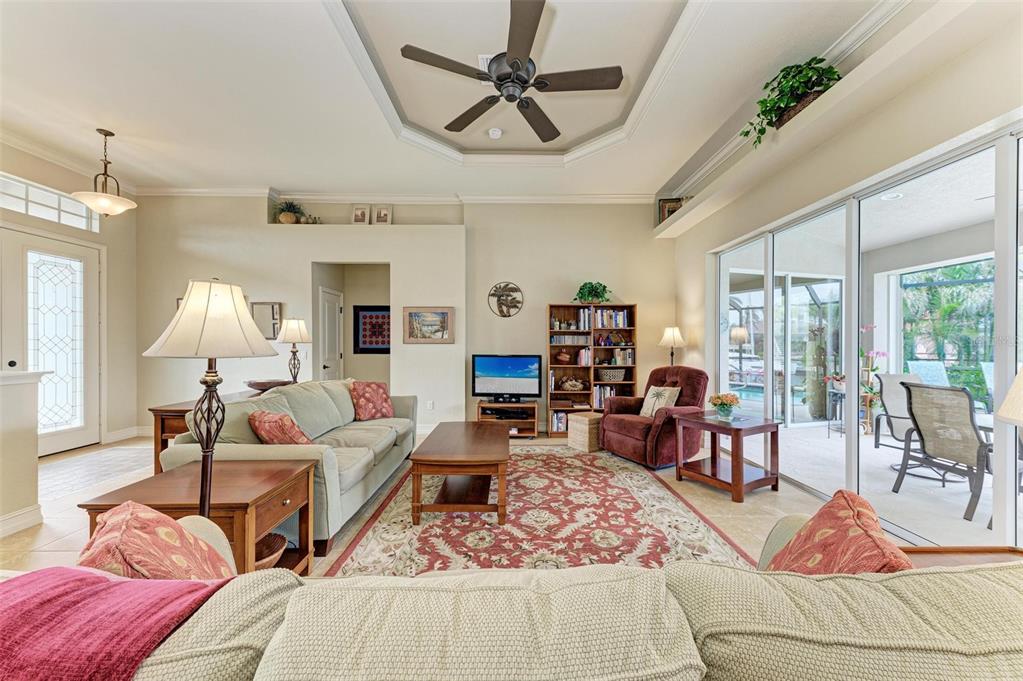 Split Bedroom Walk-In Closet(s)Ceiling Fan(s) Eating Space In Kitchen High Ceilings Stone Counters ThermostatCrown Molding Tray Ceiling(s)Exterior Features: