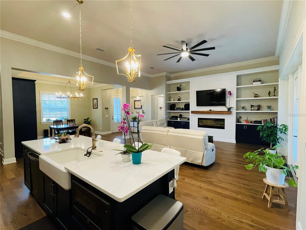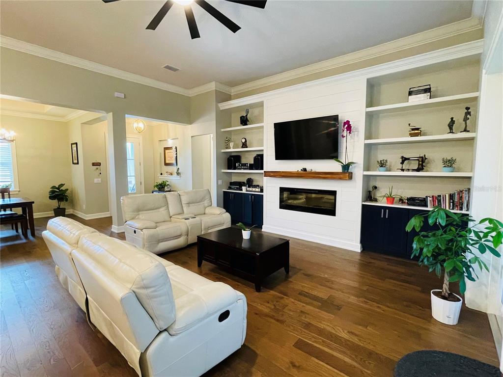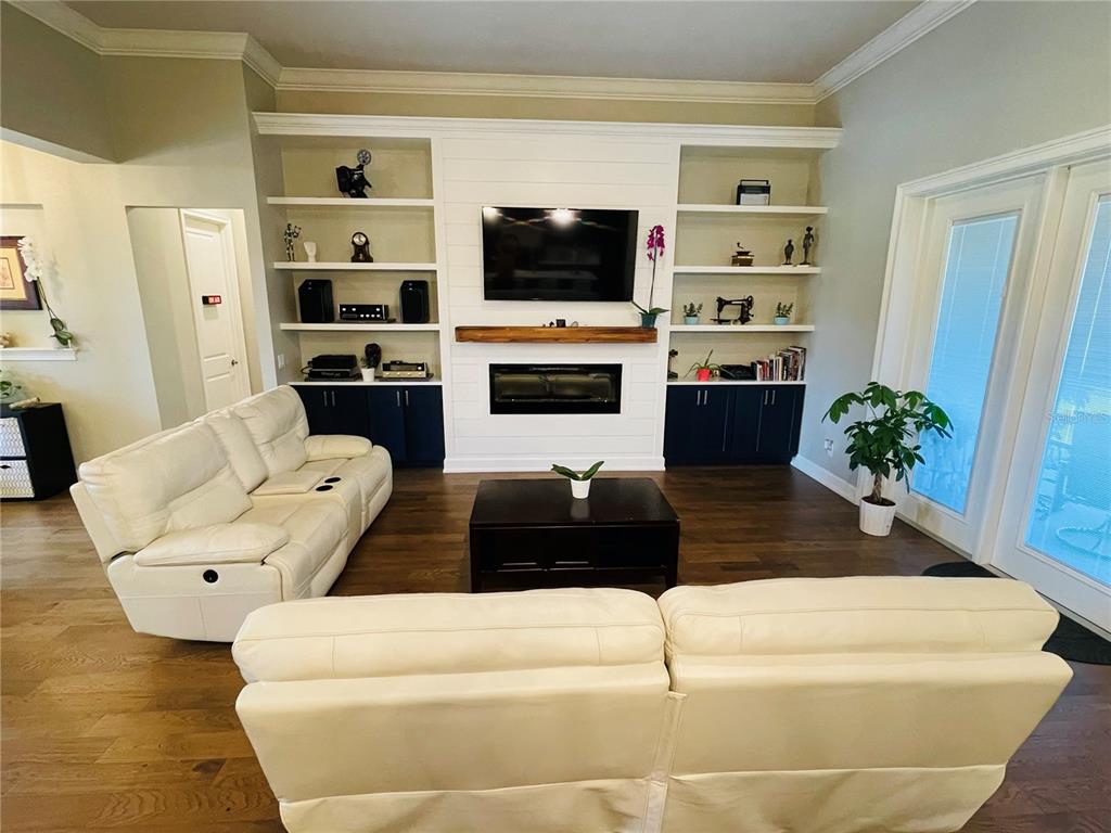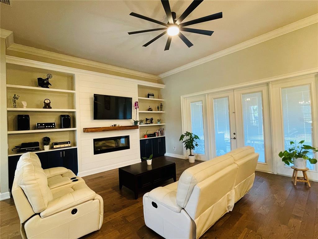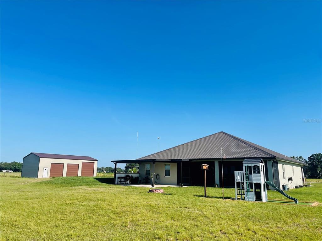 Discover your dream home, where classic american traditional architecture meets modern luxury on 2.52 acres, free from hoa or deed restrictions. the exterior boasts modern shutters, brick-lined trim, and elegant tapered columns, leading to an expansive outdoor space complete with a covered rear lanai featuring an outdoor kitchen, a firepit for starlit evenings, a metal garage workshop, an oversized chicken coop, and various fruit trees nurtured by irrigation. inside, the home offers an open floor plan with engineered hardwood flooring, crown molding, custom built-ins, and a linear electric fireplace, alongside a dining area with a tray ceiling and a brushed gold chandelier. the kitchen dazzles with navy cabinetry and slate appliances, extending your culinary adventures outdoors. this residence combines luxury, sustainability, and convenience, featuring solar panels and a generator backup with power storage for uninterrupted living. the primary suite is a light-filled retreat with dual walk-in closets and a luxurious en-suite bath, while additional bedrooms cater to comfort. with two 50-amp full hook-up rv spots, one near the house and another at the back, this property is perfect for those who love to travel or entertain. here, you can embrace the tranquility of country living with all the modern amenities, making this home not just a place to live, but a lifestyle to cherish.3713 OLD MULBERRY, PLANT CITY, FL 33567