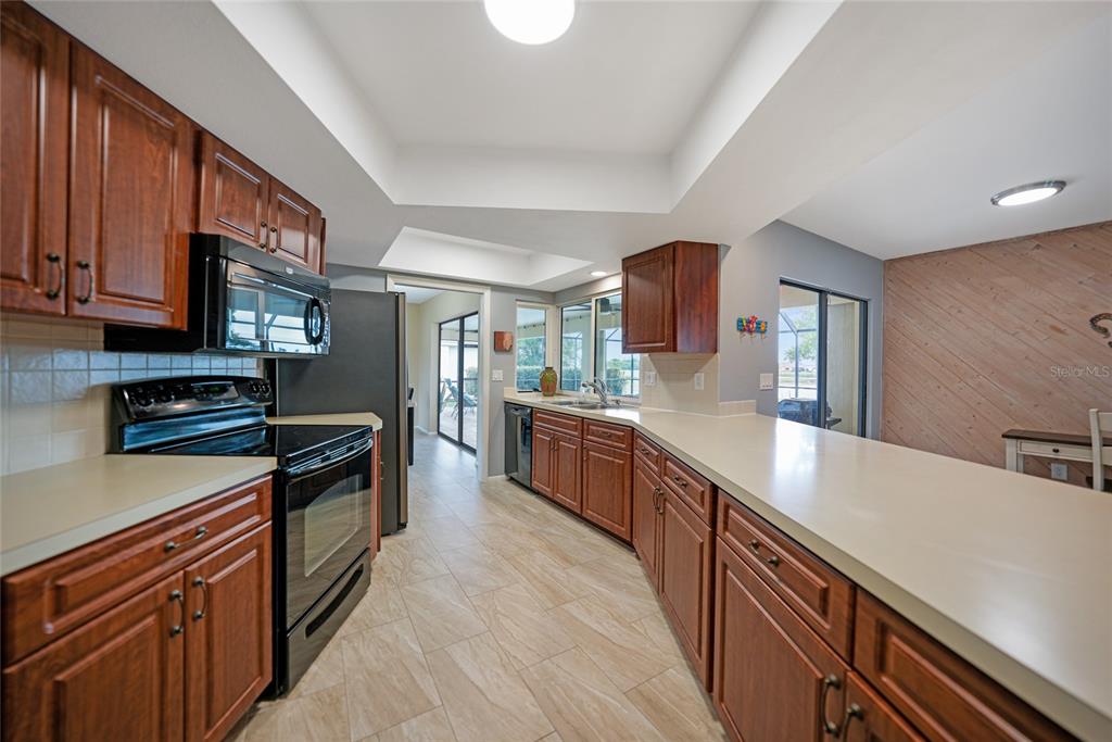 Welcome to burnt store isles, a desirable golf and waterfront community with optional hoa fees. this impeccably maintained 3-bedroom, 2-bath, 2-car garage home offers over 2,200 sq. ft. of living space, featuring a heated saltwater pool and breathtaking waterfront views overlooking the 15th green of twin isles golf course with no worries about being hit by golf balls! recent updates include hurricane shutters, new tile flooring, a new electrical panel with a whole-house surge protector, a sprinkler system, a new pool deck, and fresh interior paint. from the moment you arrive, you’ll be captivated by the home’s curb appeal, with tropical landscaping, a screened front porch, a cement tile roof, and lake views visible from every room. the open-concept layout is ideal for entertaining, with expansive double sliding pocket doors that effortlessly connect the interior to the outdoor lanai, expanding your living space. tile flooring throughout the main living areas enhances the living and dining rooms. the chef-inspired kitchen boasts ample cabinet and counter space, a closet pantry, a stylish tile backsplash, a dinette area, a full suite of appliances, a convenient pass-thru window to the lanai, and a breakfast bar. the kitchen opens to a cozy family room featuring a decorative wood-paneled accent wall, wet bar, and decorative fireplace. the master suite is a tranquil retreat with private pool access, two walk-in closets, dual vanities, a separate toilet area, and a roman-style walk-in shower. guest bedrooms are generously sized, one with pool access, each featuring ceiling fans and built-in closets. they share a full bath with convenient pool access. the dedicated laundry room includes front-load washers and dryers, a utility sink, and extra shelving for storage. step outside to your upgraded, screened lanai with no-see-um screening, where a sparkling saltwater heated pool awaits, offering stunning lake views. perfect for entertaining, relaxing, or dining while watching the picturesque sunset. enjoy the convenience of being close to top-rated beaches, parks with biking and walking trails, and boat ramps providing access to the peace & myakka rivers, charlotte harbor, and the gulf of mexico. historic downtown punta gorda and fishermen’s village, with charming shops and cafes, are just a short drive away.3723 TRIPOLI, PUNTA GORDA, FL 33950