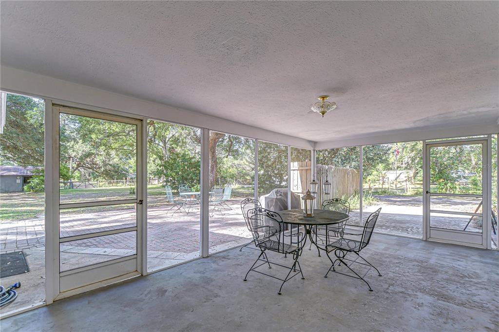 I am a 1968 ranch style block home in zephyrhills. there are three bedrooms and two full bathrooms with 1580 square foot heated excluding the utility room, which has an ac vent. i feature a living room and dining area combined, a family room, and a large utility room which is accessed through my side screened porch. there are two screened porches. the back porch is accessed through a door from the family room, or french doors from the kitchen. the side screened porch used to be a carport at one time, and could be again if desired. i realize my age, but i do have good bones, and upgrades: roof, soffit, screens, blinds, light fixtures, the interior and exterior freshly painted and a 3.5-ton ac unit in 2025. over the years i also had new windows throughout installed plus bathroom vanities. i am situated on 10 acres with lovely oak trees and a horse barn. hurricane milton did damage many of my trees, but not the house or the barn. a new water line from the well pump to the house access was installed in 2025. my well is over 200 foot deep. i had beautiful horses boarded here at one time. the horse barn has 5 stalls and a covered paddock. 4 stalls are 12 x12 and 1 foaling stall is 12 x 24. there is a tack room and wash rack. the back yard is fenced, and i have one cross fence in the back. this is a peaceful property with lovely trees and my owner has been here for over 38 years. they have adored living here and have taken care of me to the best of their abilities. seller is a licensed realtor.37348 TUCKER, ZEPHYRHILLS, FL 33541