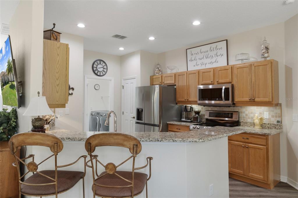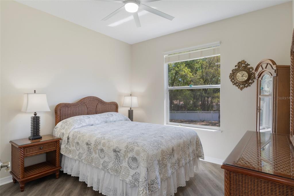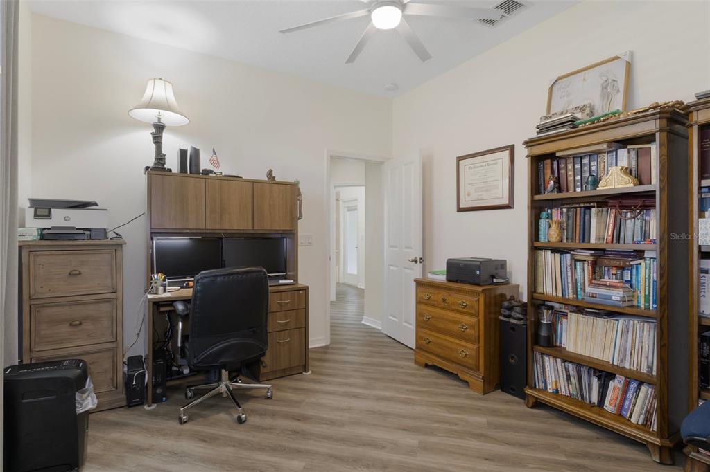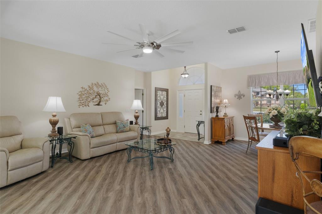 Clean and crisp, this 2014 home has been customized to feature contemporary and durable finishes that present a great opportunity for a turn-key home purchase located within the 55+ gated community of heritage village. the home offers 3 bedrooms, 2 bathrooms, and a 2 car garage with 2,076 living square feet. the layout of the home features a split-floor plan with a large family room, formal dining space, well-appointed kitchen, breakfast nook and dedicated laundry room. you'll instantly notice the diagonal luxury vinyl plank (installed 2023) and 9'4" ceilings throughout, which create a sense of modernity, accentuated by multiple 72" white and chrome ceiling fans (installed 2023). this bright and airy home has double paned windows throughout, with sliders to an enclosed florida room, perfect for a flex space. the primary bedroom includes a sitting or office nook, large walk-in closet, and spacious attached bathroom with double vanity, walk-in shower, linen closet, and separate toilet room. the kitchen includes granite countertops and solid wood cabinets with pull-outs in all base cabinets and the slow close feature on all doors. all kitchen appliances are stainless steel - lg & bosch. the guest wing includes 2 bedrooms which share a bathroom - with a door out to the enclosed florida room. energy efficient led lighting has been installed throughout the home to help keep electricity bills lower. the attached 2 car garage includes a painted floor, pull-down stairs for attic access, a utility sink and a side entry door for your convenience. the luxury vinyl plank is commercial grade with a 22mil wear layer, the interior of the home was painted with welcoming neutral tones in 2023, and the exterior was repainted in 2023 with high quality exterior paint. the exterior of the home features gutters and downspouts, a sprinkler system, lemon trees, and includes yard maintenance through the hoa! heritage village is a small, private community, located close to shopping centers heritage oaks and shops at black diamond.374 W COBBLESTONE, HERNANDO, FL 34442