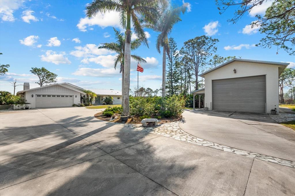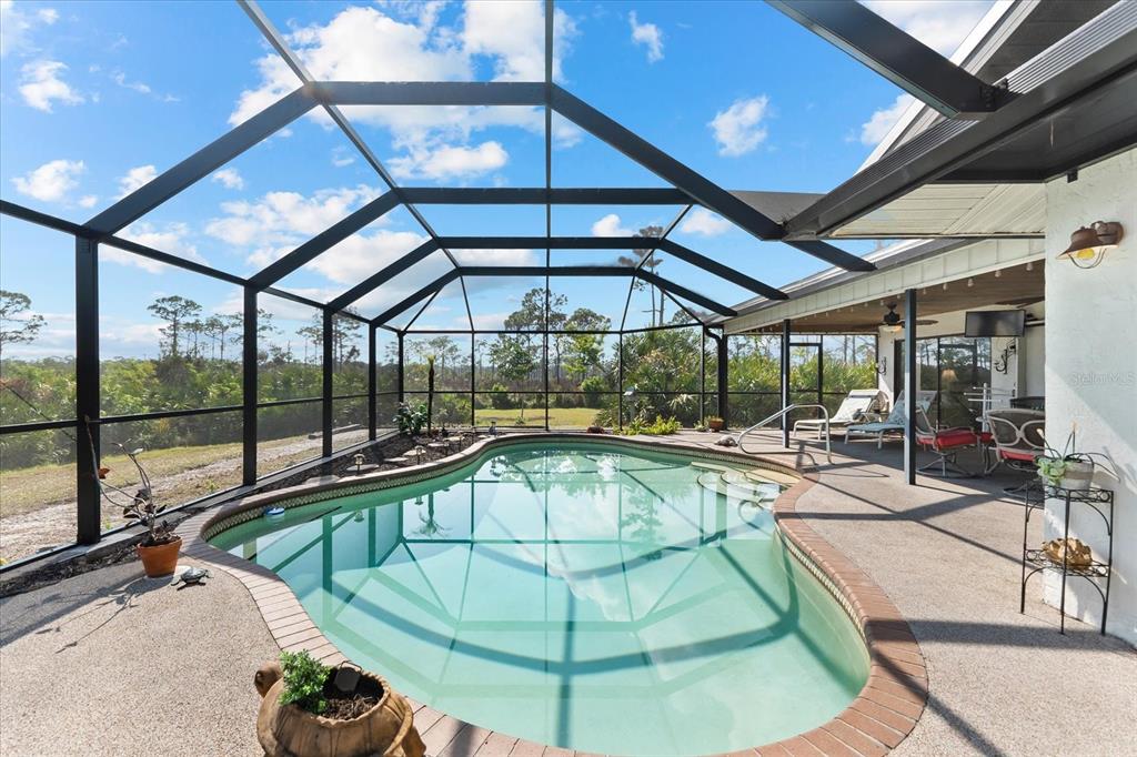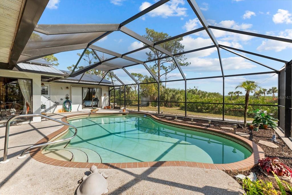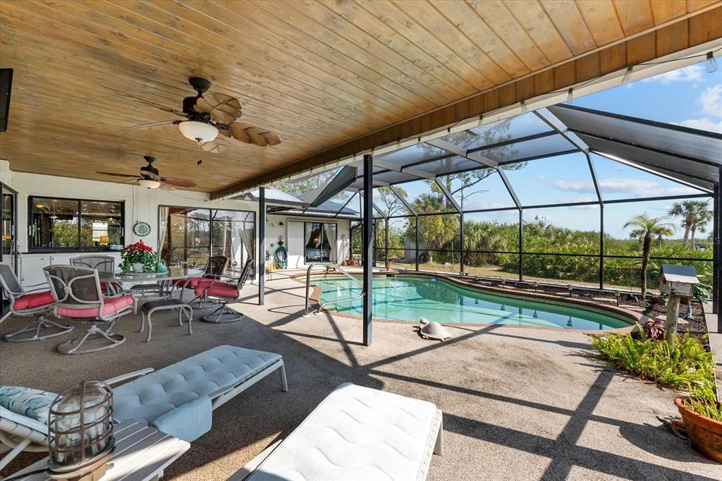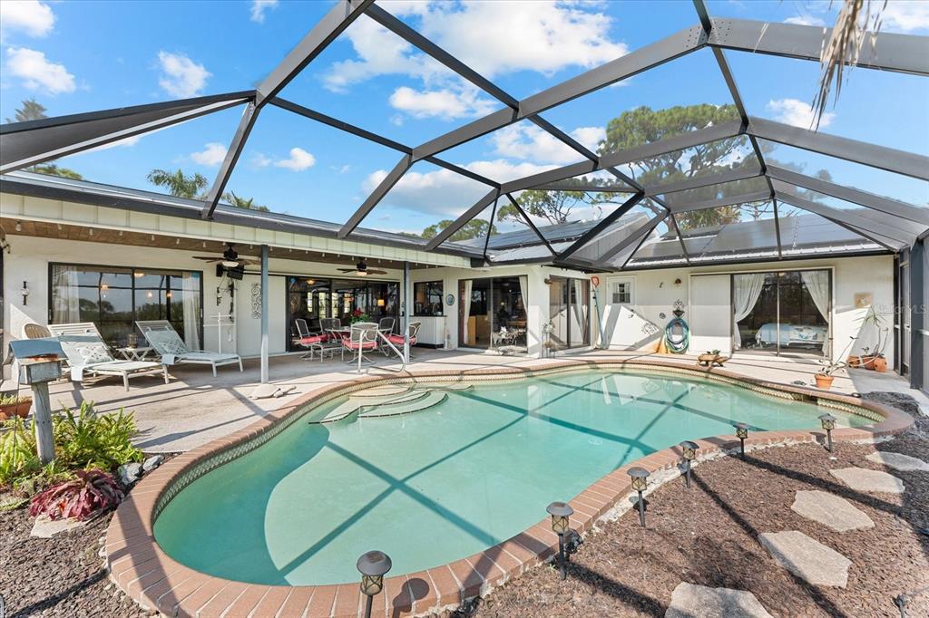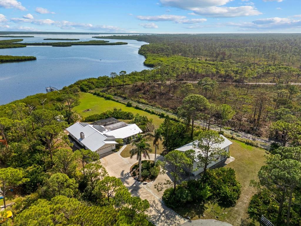 Nestled in the tranquil and sought-after myakka country, this 4-bedroom, 2-bathroom waterfront home spans 2,490 square feet and sits on 1.7 acres of lush land. with a private boat dock and boat lift, it’s the perfect retreat for those who love waterfront living, privacy and outdoor adventure. this home offers a versatile, open floor plan with two distinct living areas. upon entry, you are greeted by the formal living and dining rooms, which flow seamlessly into the pool area through large sliding glass pocket doors. beyond the dining room, the spacious kitchen features a massive island that overlooks the family room, where a charming fireplace creates a cozy retreat. to the right of the kitchen, the dinette area and a large walk-in pantry provide loads of storage, keeping your kitchen organized and clutter-free. the dinette area also offers direct access to the pool. the primary bedroom is located on one side of the house, while the three additional bedrooms are thoughtfully positioned on the opposite side for enhanced privacy. bedrooms 3 and 4 are separated with a bifold closet door. you could leave it as is to make one very large room/office space or if you choose, you could close it off completely. the pool area is fully enclosed with a newer pool cage (installed in 2022), offering generous covered space ideal for entertaining guests. a new metal roof, installed in 2019, is complemented by solar panels, providing both energy efficiency and sustainability. this property includes a spacious 1,320-square-foot garage/barn, perfect for storing your rv, boat, cars, or other recreational vehicles, with plenty of room left for additional storage. the home also features an attached 2-car garage, adding even more convenience for everyday use. the south side of the expansive lot is bordered by myakka state forest, which contains over 40 miles of trails that are open to hiking, biking and equestrian activities- perfect for nature lovers. this home offers the best of both worlds: seclusion in a peaceful, waterfront setting with easy access to i75 and all the amenities of wellen park and nearby beaches. whether you’re seeking a full-time residence or a seasonal getaway, this property provides everything needed for the ultimate waterfront lifestyle.38 RIVERFRONT, VENICE, FL 34293