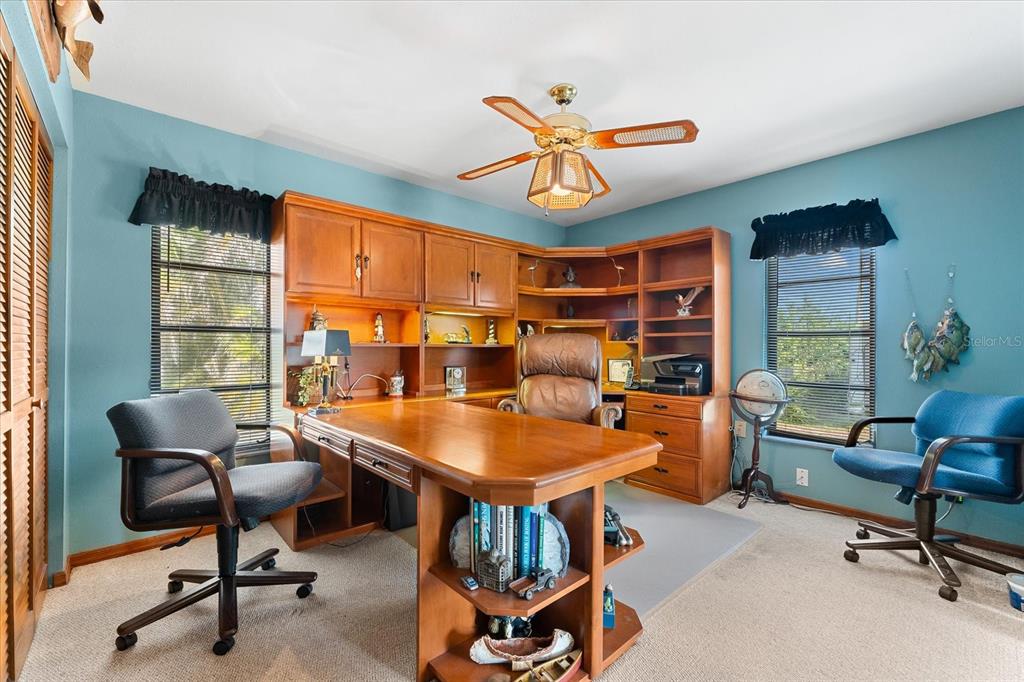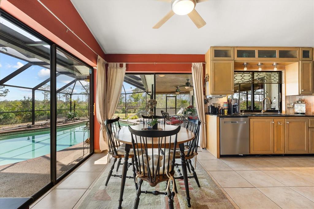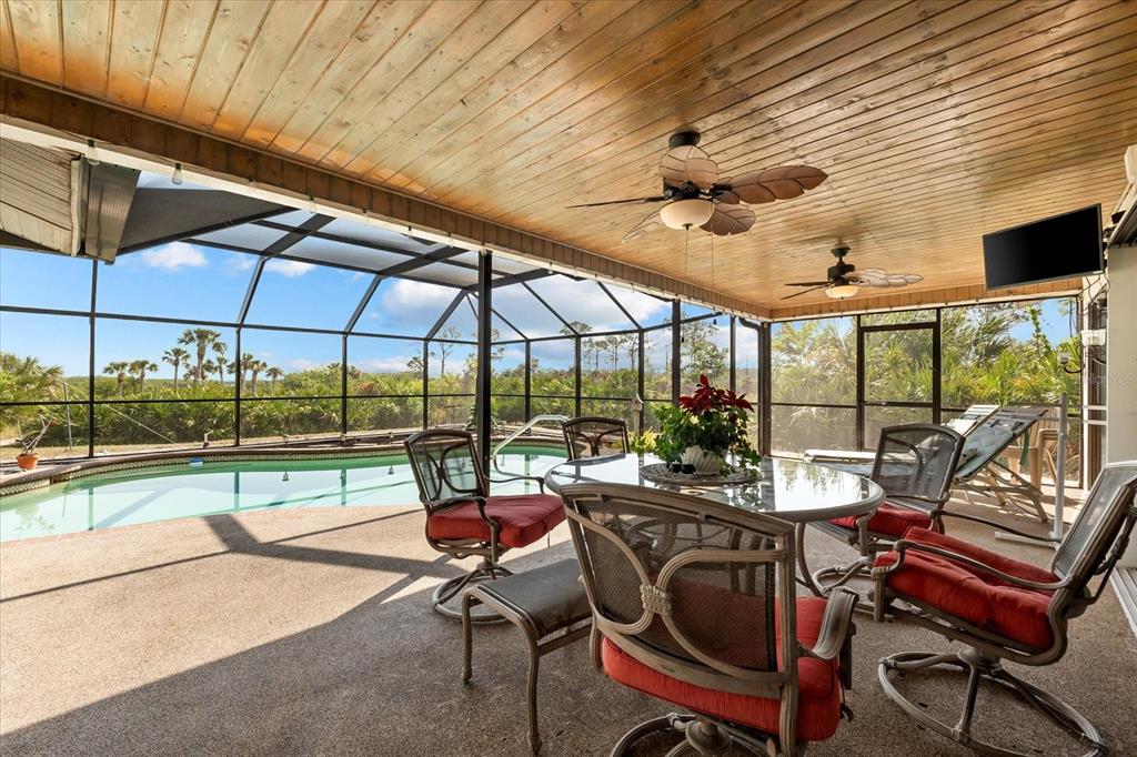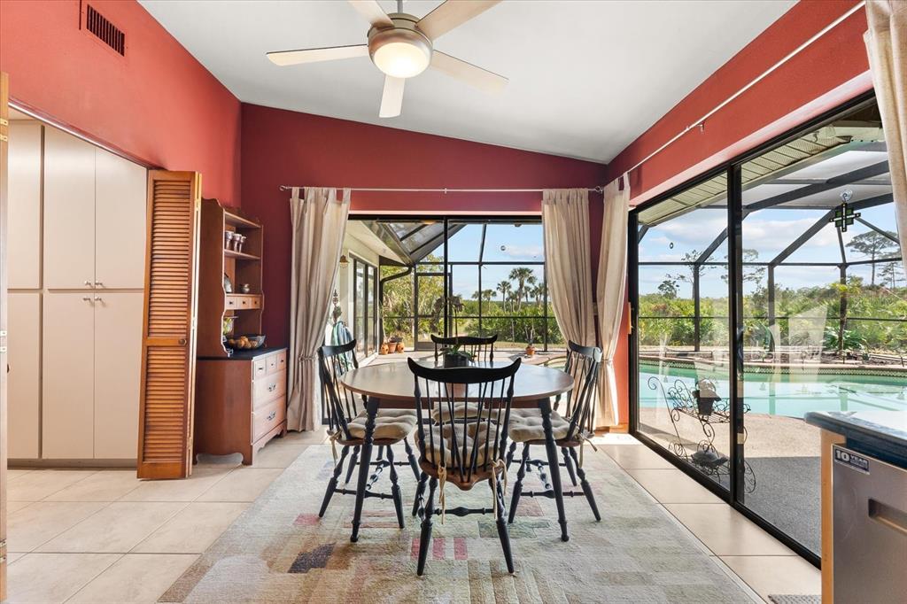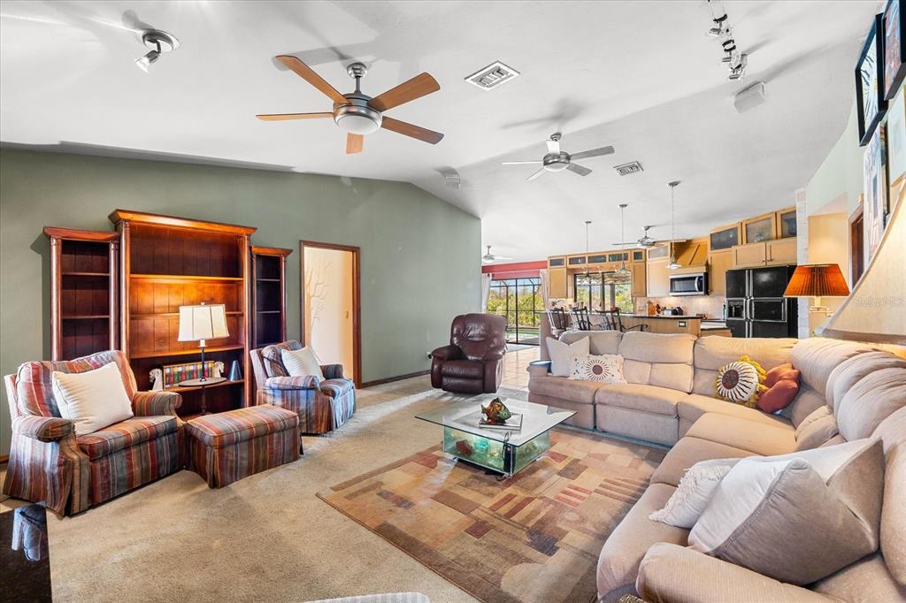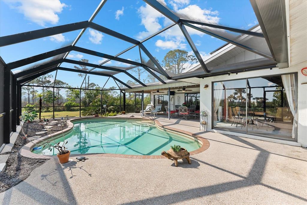 Nestled in the tranquil and sought-after myakka country, this 4-bedroom, 2-bathroom waterfront home spans 2,490 square feet and sits on 1.7 acres of lush land. with a private boat dock and boat lift, it’s the perfect retreat for those who love waterfront living, privacy and outdoor adventure. this home offers a versatile, open floor plan with two distinct living areas. upon entry, you are greeted by the formal living and dining rooms, which flow seamlessly into the pool area through large sliding glass pocket doors. beyond the dining room, the spacious kitchen features a massive island that overlooks the family room, where a charming fireplace creates a cozy retreat. to the right of the kitchen, the dinette area and a large walk-in pantry provide loads of storage, keeping your kitchen organized and clutter-free. the dinette area also offers direct access to the pool. the primary bedroom is located on one side of the house, while the three additional bedrooms are thoughtfully positioned on the opposite side for enhanced privacy. bedrooms 3 and 4 are separated with a bifold closet door. you could leave it as is to make one very large room/office space or if you choose, you could close it off completely. the pool area is fully enclosed with a newer pool cage (installed in 2022), offering generous covered space ideal for entertaining guests. a new metal roof, installed in 2019, is complemented by solar panels, providing both energy efficiency and sustainability. this property includes a spacious 1,320-square-foot garage/barn, perfect for storing your rv, boat, cars, or other recreational vehicles, with plenty of room left for additional storage. the home also features an attached 2-car garage, adding even more convenience for everyday use. the south side of the expansive lot is bordered by myakka state forest, which contains over 40 miles of trails that are open to hiking, biking and equestrian activities- perfect for nature lovers. this home offers the best of both worlds: seclusion in a peaceful, waterfront setting with easy access to i75 and all the amenities of wellen park and nearby beaches. whether you’re seeking a full-time residence or a seasonal getaway, this property provides everything needed for the ultimate waterfront lifestyle.38 RIVERFRONT, VENICE, FL 34293