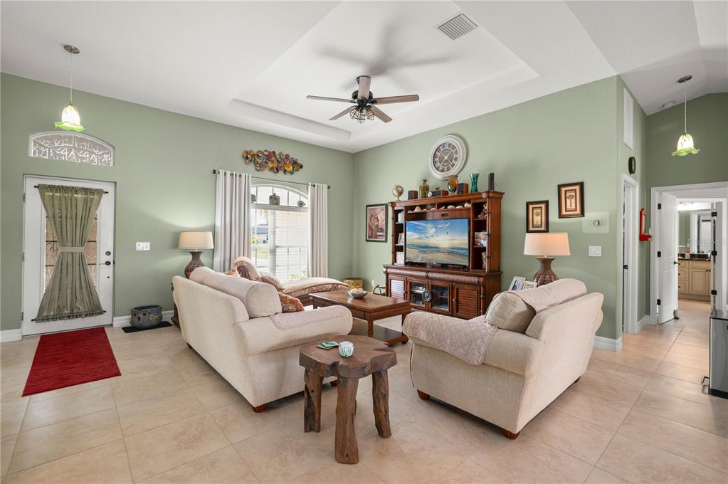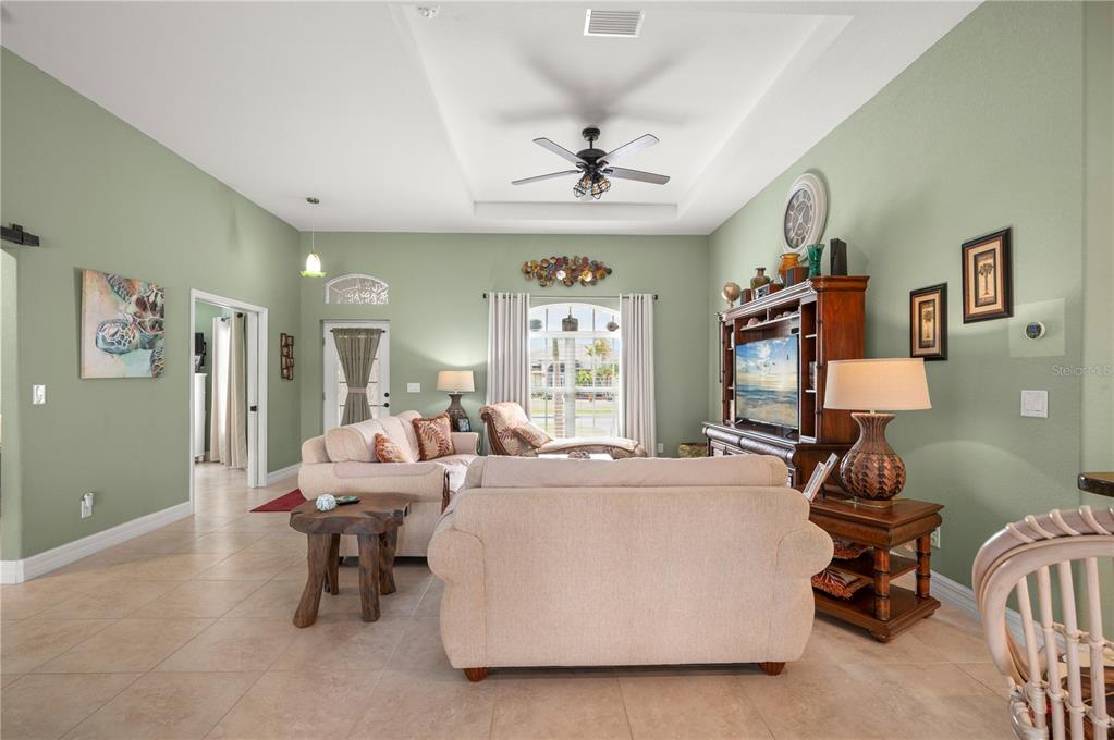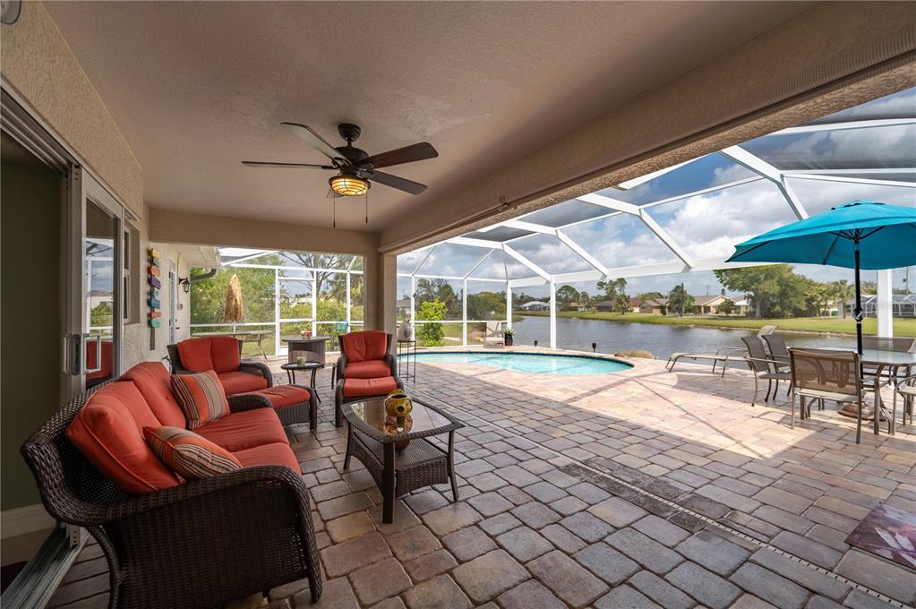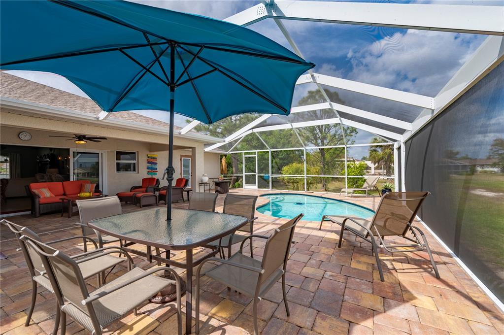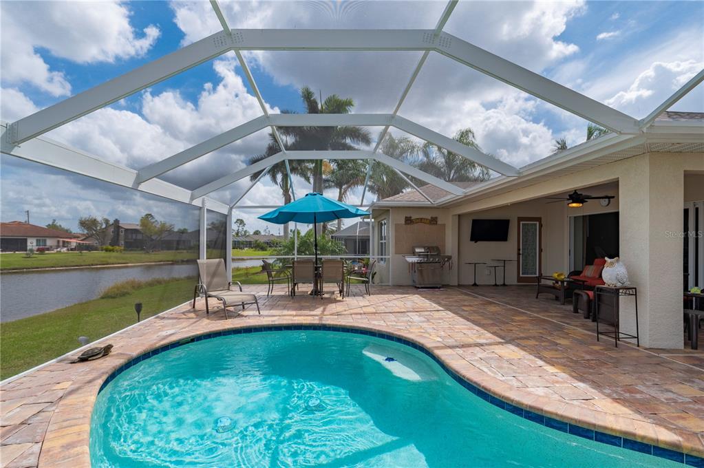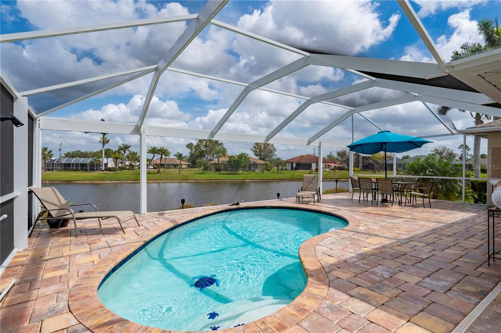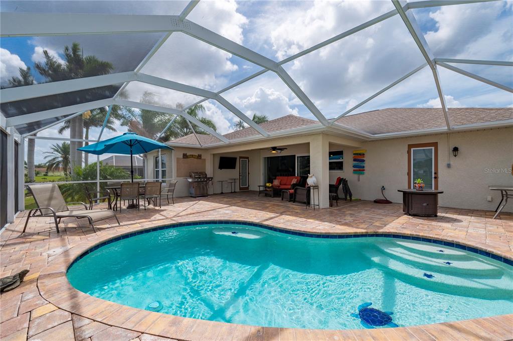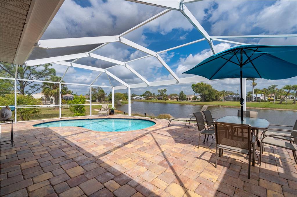 Within deep creek-known for its low hoa fees, expansive greenbelt views, serene area lakes, family-friendly public golf course, and excellent elementary school-you will find this stunning 3 bedroom, 3 bathroom pool home with a bonus den/study and picturesque lake views. this home offers the perfect blend of comfort, style, and low-maintenance living. nestled on a quiet street, this home welcomes you with an inviting open floor plan, enhanced by 20” porcelain tile throughout. the bright and airy living room boasts tray ceilings and sliding doors that open onto the spacious lanai, perfectly framing tranquil lake vistas. the well-appointed kitchen features decorative lighting, raised panel cream cabinetry with pencil-line accents, soft-close cabinets, granite countertops, and a breakfast bar—ideal for entertaining. the primary suite offers a peaceful retreat with a tray ceiling, a walk-in closet, and private access to the lanai. its en-suite bathroom is elegantly designed with granite countertops, rich wood cabinetry, and fine-line accents. a stylish barn door and a pocket door enhance privacy for the guest quarters and study. two additional guest bedrooms provide ample space, with one featuring a walk-in closet. step outside to your paved pool deck, complete with a roll-down sunscreen, overlooking your heated pool where you can relax and take in the serene views through a custom picture-frame pool screen. the home also features new 2023 roof, impact windows for added peace of mind, as well as a garage with epoxy flooring. whether you’re a full-time resident or a seasonal homeowner looking to enjoy all the comforts of florida living, this home is a true gem in one of charlotte county’s most desirable neighborhoods.380 CONCORDIA, PUNTA GORDA, FL 33983