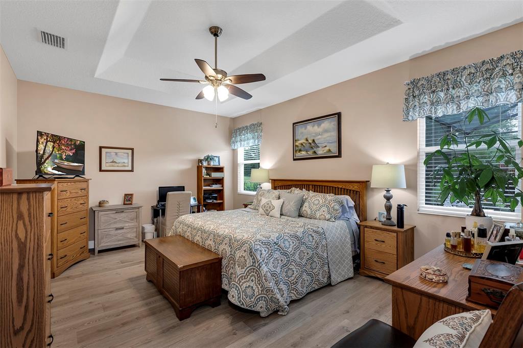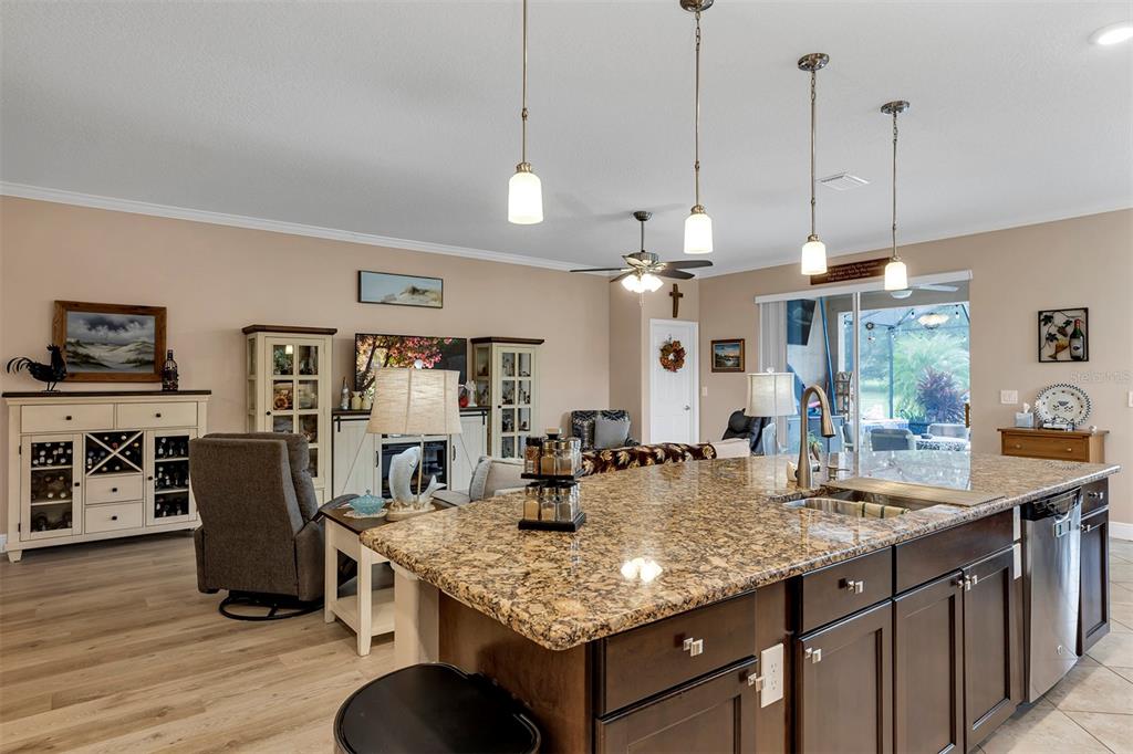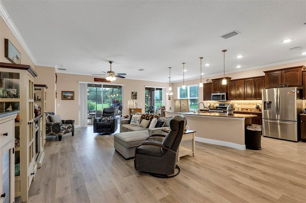 Get your golf-front pool before spring or you may not find one or pay a lot more for the home vs winter pricing, if you need a quick closing and move-in, this one is it. retirement at its finest. come "live the dream" in this meticulously maintained pool home on the golf course . in the beautiful and highly sought after arlington ridge . gated active adult, golf community. open concept floor plan, great for entertaining. beautiful master suite with walk- in shower, dual vanities and walk-in closet. split bedrooms with bathroom for extra privacy. kitchen boasts granite countertops and backsplash. a large island that seats four and stainless steel appliances . laundry room has cabinets for storage, large sink and washer and dryer. large garage with lots of storage plus a golf cart garage. this home has been very well maintained and was custom built with many extras. enjoy the view from your spacious lanai or a leisurely swim in the pool. the low hoa of $126/month includes lawn mowing, edging, and blowing. internet and cable tv with dvr. you can drive your golf cart to the golf course , community pools (one heated and cooled for year round comfort), sauna, hot tub, tennis, pickle ball & bocce courts, fitness center equipped with nautilus equipment & recreation centers and even a free movie theater. there is dining in the chesapeake bay grill or enjoy drinks in the sports bar tavern after a game of billiards or after a round on the championship 18 hole golf course. this gated 55+ community is centrally located with close proximity to grocery stores, pharmacies, banks and medical facilities. 45 minutes to theme parks and airport. 90 minutes to the gulf or atlantic ocean.3809 ARLINGTON RDG, LEESBURG, FL 34748