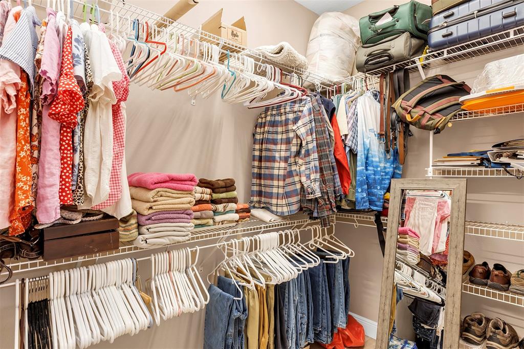 Split Bedroom Walk-In Closet(s)Ceiling Fan(s) High Ceilings Open Floorplan Window Treatments Solid Surface Counters Solid Wood Cabinets Primary Bedroom Main Floor Kitchen/Family Room ComboAttic FanExterior Features: