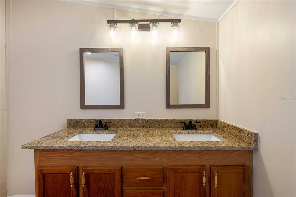 One or more photo(s) has been virtually staged. if you're looking for a place to escape those northern winter blues, come to terrace park 55+community where you own the land with a low annual hoa of $480. this community is pet freindly! this updated 2002 fleetwood double wide is not to be overlooked! this home offers 1,404 sq/ft living space with 3 bedrooms and 2 baths, split bedroom plan, with a bright, sunny kitchen/dining area and has many updates throughout this home. the updates include new laminate flooring, fresh paint throughout, and new shingle roof 2023. newly updated granite counter tops in kitchen, master bathroom, and second bathroom. updated cabinets in kitchen, stainless steel appliances, and new ceiling fans throughout the home. the kitchen boasts granite counters and cupboards, ceiling fan, laminate flooring and pantry closet. open concept between kitchen and dining room is nice for entertaining or just visiting with friends. the split bedroom plan offers the master bedroom at one end of the home and has a ceiling fan, new carpeting, large walk-in closet and easy access to the master bathroom, which has laminate floor, updated fixtures, granite double sink vanity and step in shower. the second and third bedrooms are located at the opposite end of the home, have walk-in closets, new carpeting, and easy access to the guest bathroom. the guest bathroom has tub/shower combo with granite vanity and laminate flooring. the laundry is located off the kitchen and inside the home with laminate flooring and plenty of storage. off the carport is a large florida room that has vinyl windows with screens. a 9x12 storage area is located off the florida room. call for an appointment today. you will truly feel like you're in florida when you call this property, home.3824 JULIE, WESLEY CHAPEL, FL 33543