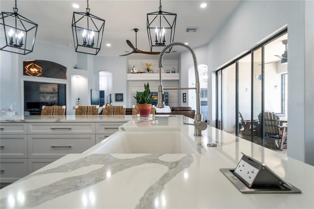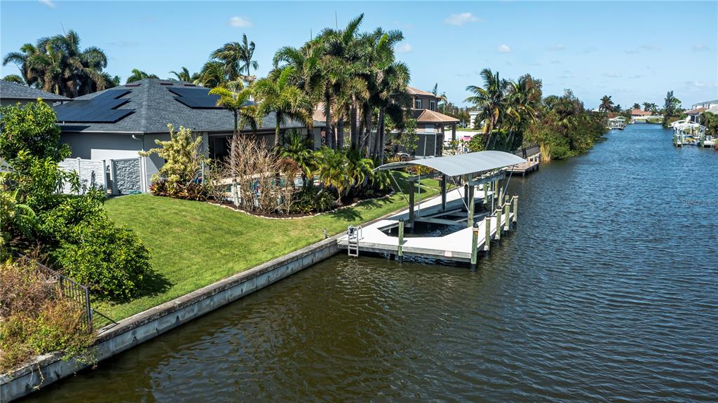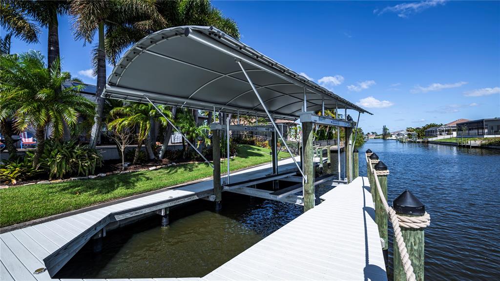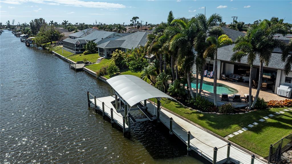 This stunning gulf-access home offers the ultimate waterfront lifestyle. with a wrap around dock, 14,000 lb boat lift and canopy, enjoy the convenience of keeping your boat in your backyard, ready for quick access to the open waters. the heart of the home is the luxurious kitchen, featuring custom cabinetry, quartz countertops, and top-tier ge café refrigerator and dishwasher, including a fisher and paykel 36” induction range and a touchless range hood. a pot filler and oversized farmhouse sink add to the appeal of this gourmet space. there's also a separate bar/coffee area with a wine fridge—perfect for entertaining. step outside to the heated saltwater pool and expansive pool deck, offering breathtaking, unobstructed views. with no screen enclosure, you can fully appreciate the beauty, while the automatic and very effective pest misting system keeps bugs at bay. relax in the covered lanai, protected by an electric hurricane screen for added peace of mind. the home’s standout feature is the enormous, 1600 sq ft, air-conditioned double rv garage! measuring approximately 47’ x 34’ with 17’ ceilings, two 12’ x 15’ overhead doors, and its own a/c unit, this space is perfect for storing rvs, boats, or business equipment—or for anyone needing serious extra space. in addition to the standard 2-car garage, this property has ample storage for all your needs. a photovoltaic solar system on the new 2022 roof offers energy efficiency and cost savings, making this home as practical as it is beautiful.3825 SW 17TH, CAPE CORAL, FL 33914