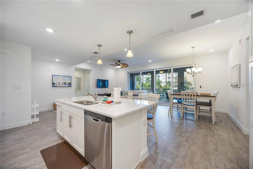 Waterfront living without the stress at one particular harbour, where island-style living meets luxury and convenience. this stunning 2-bedroom, 2-bathroom residence offers unparalleled sunset views and access to a deep-water marina, providing direct entry to the gulf of mexico. as you step inside this beautifully decorated condo, you'll be greeted by an airy, open-concept living area with exquisite tile flooring throughout. the chef’s kitchen is a true culinary haven, featuring plenty of cabinet space, stainless steel appliances, quartz countertops, a unique tile backsplash, and a massive center island. enjoy your morning coffee at the island while soaking in the breathtaking views through the wall-to-wall sliding doors that open to a screened-in lanai, overlooking the community pool, lounge area, and a peek-a-boo view of the bay. the primary suite is a sanctuary, offering ample space for a king-sized bed, an en-suite bathroom with a luxurious walk-in shower, and an expansive walk-in closet for all of your storage needs. the second bedroom comfortably accommodates a queen-sized bed, offering a cozy retreat for guests or family members, or it could serve as a fantastic, sunny office space. an indoor laundry closet completes this fabulous home, adding to its convenience and charm. nature enthusiasts will love the proximity to three nearby nature preserves, perfect for walking, biking, paddleboarding, and kayaking. residents of one particular harbour can also indulge in resort-like amenities, including a heated pool, playground, and dining at florida's bar and grill. all of this is just one mile from the pristine sandy beaches of anna maria island. experience the ultimate in relaxation and luxury at jimmy buffett’s margaritaville’s one particular harbour. with the community's limited rental restrictions, you have the flexibility to use this property as an income-producing rental or enjoy it as your forever residence! don’t wait, your waterfront paradise awaits!383 ARUBA #101, BRADENTON, FL 34209