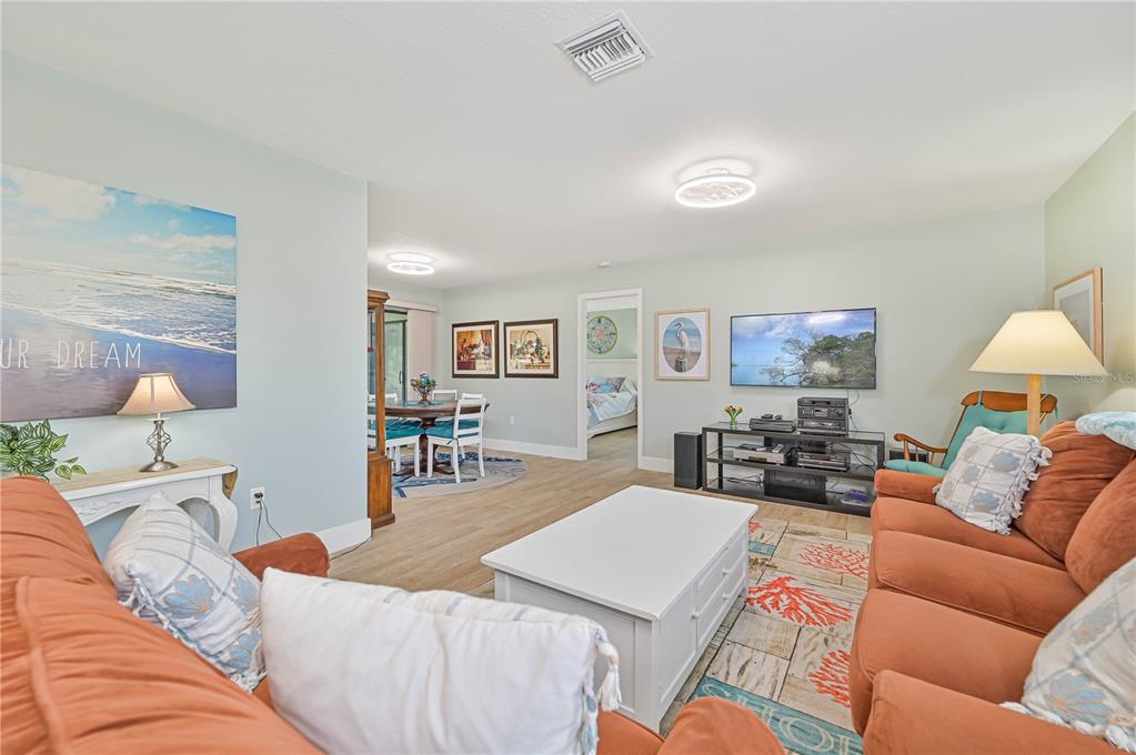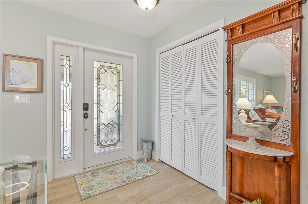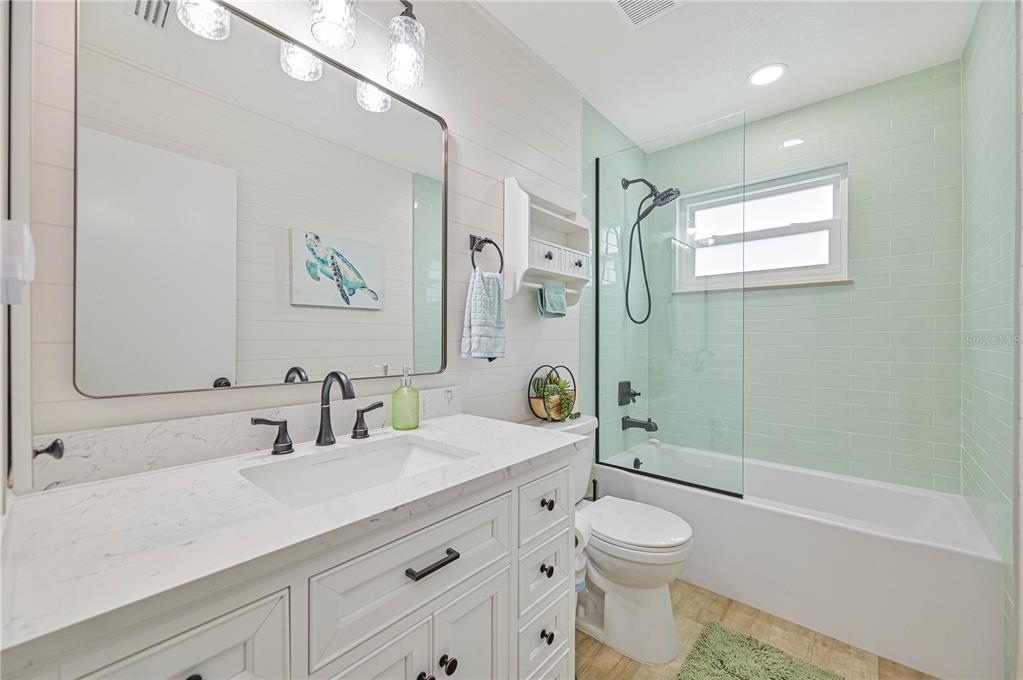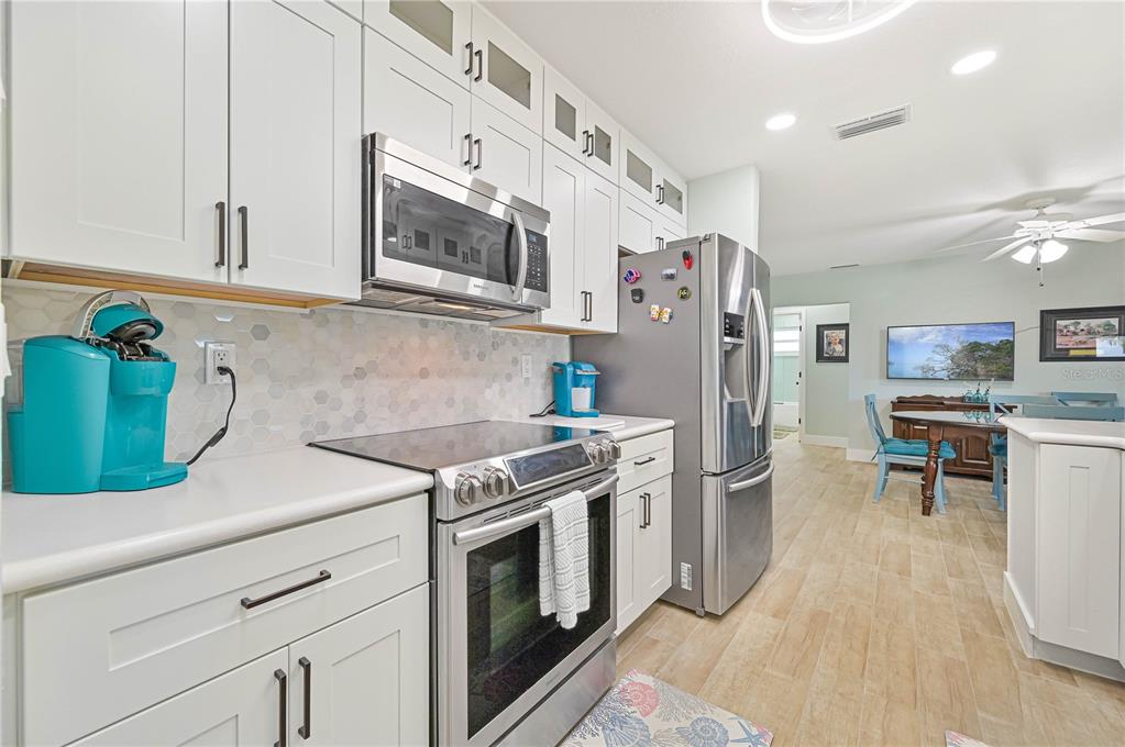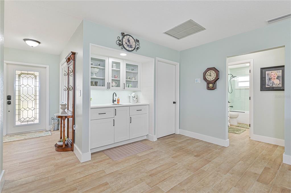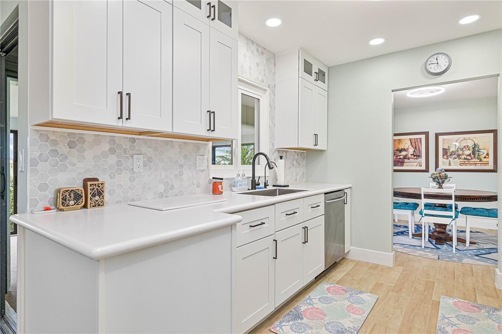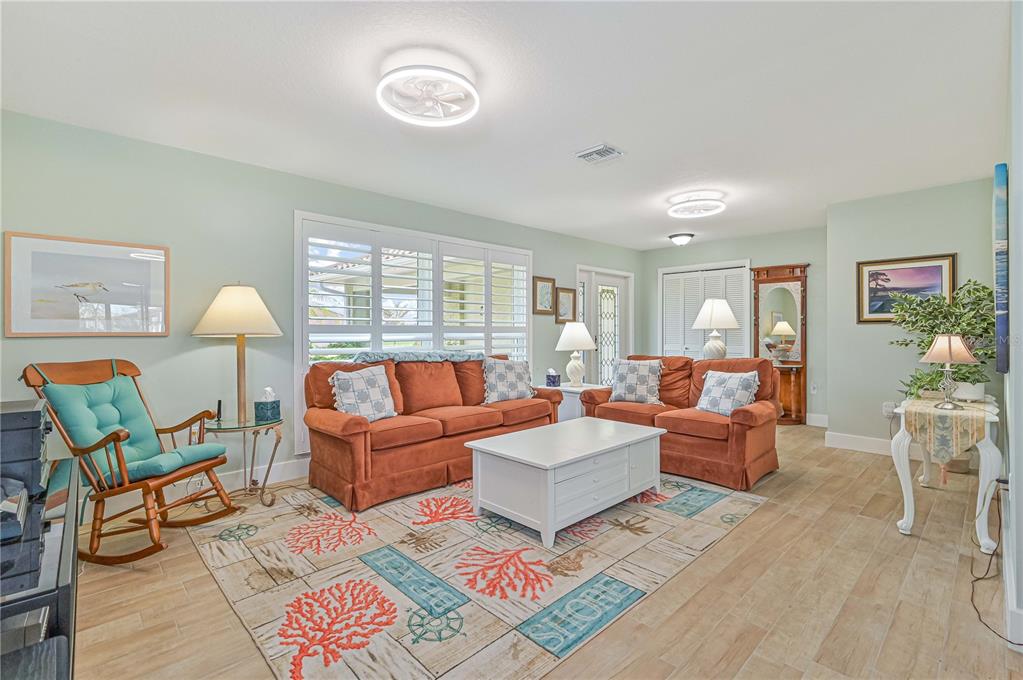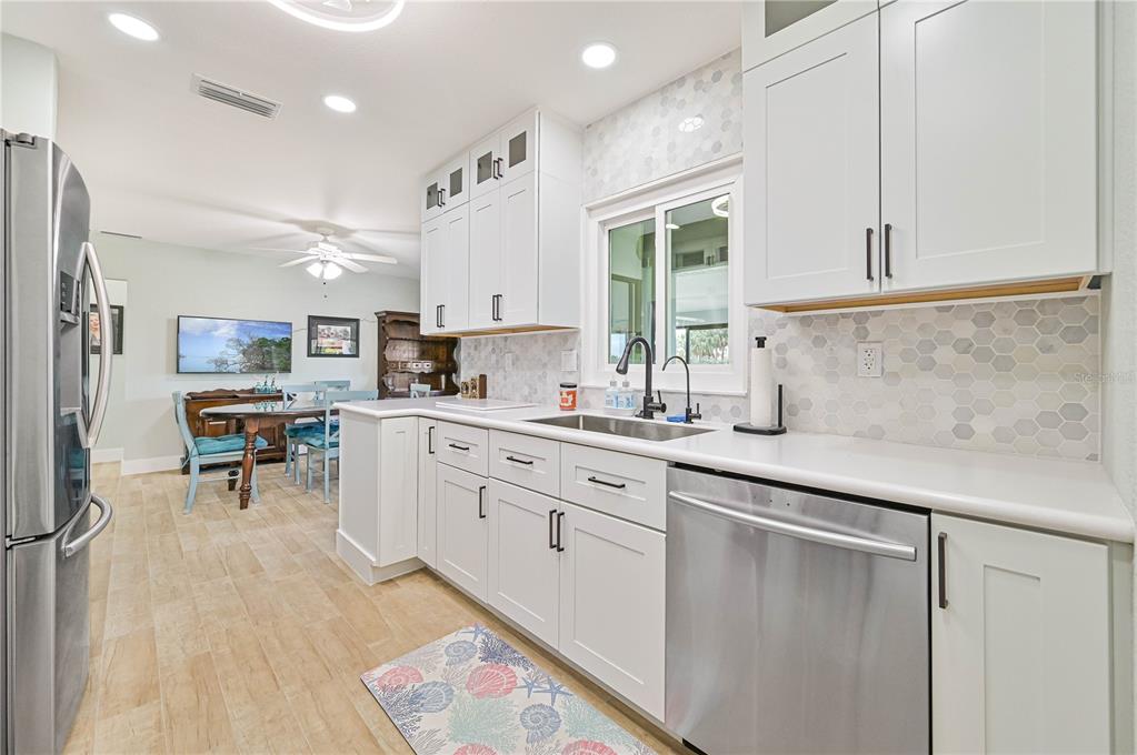 This home has been completely updated and is move-in ready! the entire house features stunning new tile flooring. the remodeled kitchen includes solid wood cabinets, a stylish tiled backsplash, a pass-through window to a counter bar on the lanai, an exhaust fan, glass in the upper cabinets, stainless steel appliances, and a brand-new sink and faucet. off the kitchen, you’ll find a brand new butlers pantry with a wet bar. the family room, currently used as a formal dining room, has sliders leading to the lanai. the dining area/breakfast nook also offers sliders to the lanai, perfect for outdoor living. the home’s inviting entryway features an 18x9 covered porch that leads to a brand-new front door and opens into a spacious living room. the oversized main bedroom includes a ceiling fan and a slider to the lanai. the remodeled ensuite bathroom boasts a large shower, a double sink solid wood vanity with a quartz countertop and soft close cabinetry and a generous 10x6 walk-in closet. the guest bathroom has also been beautifully remodeled with a tiled shower/tub combo, solid wood vanity with a quartz countertop and soft close cabinetry. the second bedroom includes a double closet for extra storage. interior highlights include new solid core plantation shutters, shiplap siding, new ceiling fans, solid surface countertops in the kitchen and bathrooms, and fresh paint with new baseboards throughout. additional updates include new interior and exterior light fixtures, new gutters, fresh exterior paint, a/c (2022), new hurricane impact windows (2023), new irrigation, a new hot water heater, and a new hurricane rated front door. the enclosed lanai, approximately 480 sq ft, offers ceiling fans and sliders all around, creating the perfect space for dining or relaxation while enjoying views of the golf course and park-like surroundings. the spacious 22x19 garage features an opener, 2 ceiling fans, cabinets, a service door, a pull-down ladder to the attic, and a new storm-rated garage door. the home also includes a wind mitigation report showing new hurricane impact windows (2023), hurricane shutters, a new storm smart roll-down storm catcher, and a brand-new metal roof (2023) for added protection. walk to nearby restaurants and shopping, and enjoy a short drive to downtown and i-75. this home truly has it all!3871 BORDEAUX, PUNTA GORDA, FL 33950