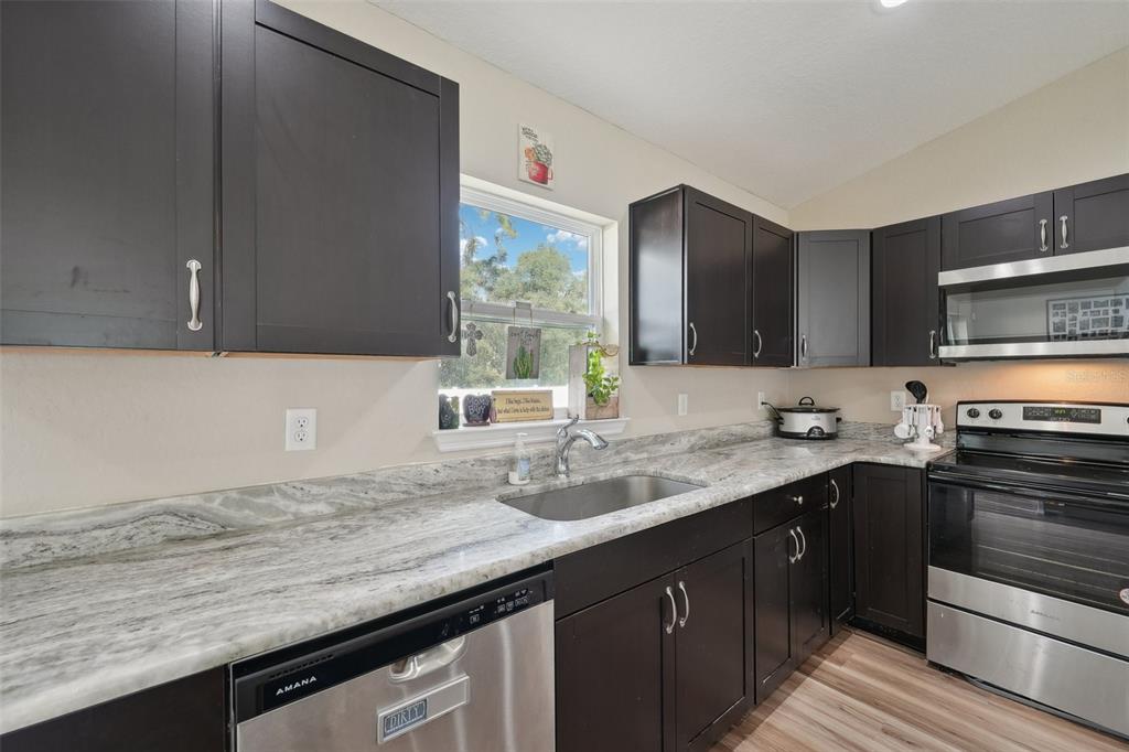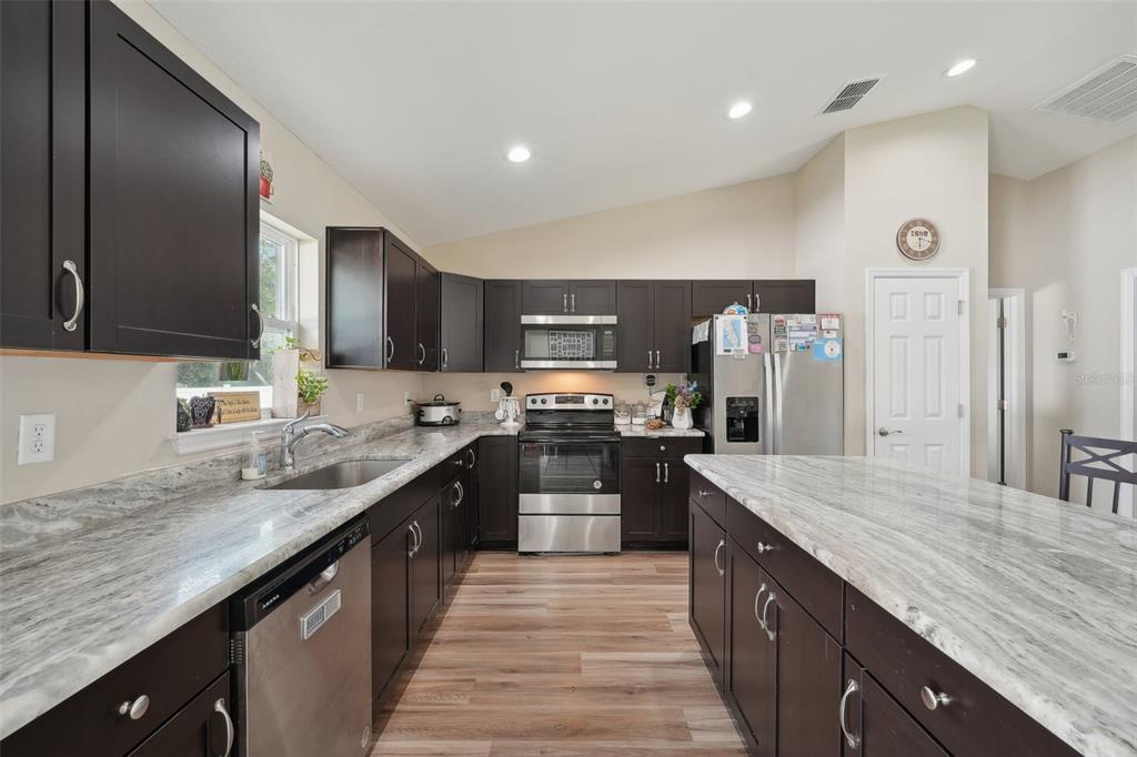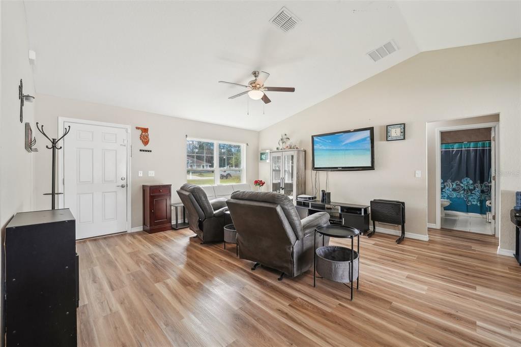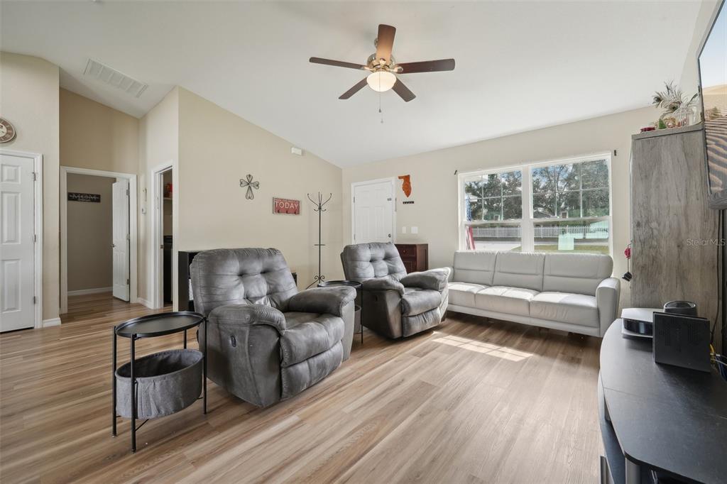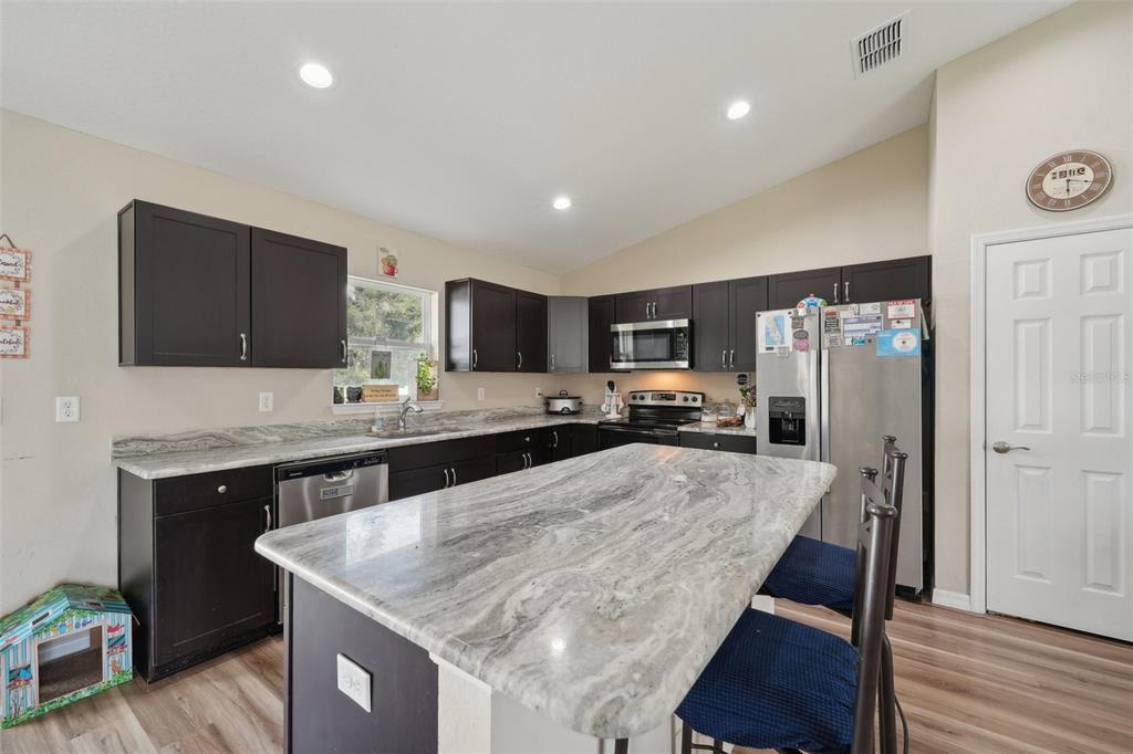Welcome to this beautiful 3-bedroom, 2-bathroom home located in ocala, florida. built in 2023, this 1,398 sq ft home provides a modern, open layout with vaulted ceilings that create a bright and airy feel throughout. as you step inside, you’ll immediately notice how the living room, dining room, and kitchen seamlessly flow into one another, making this space perfect for both everyday living and entertaining. the kitchen is a standout feature, complete with a stunning center island with an eat-in space, all stone countertops, and sleek stainless steel appliances. the refrigerator, microwave, dishwasher and range convey.whether you’re preparing meals or hosting guests, this kitchen is both functional and stylish. the primary bedroom is spacious and includes a large walk-in closet, as well as an en suite bathroom featuring a walk-in stone shower. the two additional bedrooms are generously sized, providing comfort and versatility for family, guests, or home offices. this home also includes a convenient laundry room and access to a spacious, fenced-in backyard through the sliding glass doors, providing a private outdoor space for relaxation or recreation. with its modern finishes, open layout, and thoughtful design, this home provides both style and comfort. don’t miss the opportunity to make this move-in-ready property yours—schedule a showing today!3891 SW 166TH PL, OCALA, FL 34473