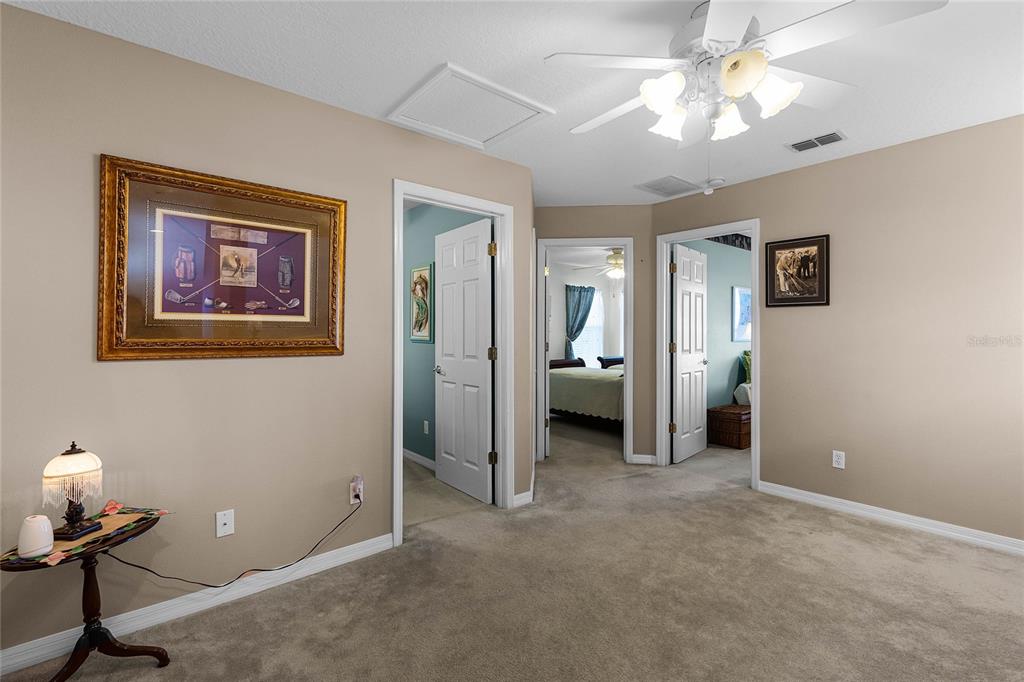 Presenting this stunningly beautiful 2 story pool home on a premium lot in the much desired gated golf & country club community of legends in the rolling hills of clermont. this home offers spectacular views overlooking the 14th hole on the golf course. as you enter the home we have a foyer that leads to a spacious formal dining room on your left perfect for those family gatherings. the heart of the home is the living/family room with high cathedral ceiling offering stunning views of the pool and golf course. there are also sliding doors leading into the sun room. the living space flows nicely into the eat in kitchen with custom built solid oak cabinets, offering granite counter tops, a deluxe island, stainless appliances, pantry, with an abundance of draw space and cabinet top valance lighting. the kitchen then flows nicely into a gorgeous sun room, with solid oak trim with valance ld lighting accent, this truly is a gem with georgeous window treatments, then leading to the screened in spacious lanai with a 45 x 15 foot heated pool. there is plenty of room for entertaining and enjoying the spectacular views and watching the nightly fireworks from disney. to the right of the family room we have the primary suite again offering fantastic views of the pool and golf course beyond. dual sinks, shower and separate tub and a large walk in closet. to complete the downstairs there is a 1/2 bathroom, large walk in closet under the stairs for extra storage, large laundry room with washer & dryer, sink and fridge and plenty of storage space. upstairs we have 3 bedrooms, a full bathroom and a loft area that overlooks the living room, so much potential and possibilities with this layout. this home boasts many attributes including a 2 car garage that has a vinyl floor coating, features over 50 lineal feet of custom designed solid oak cabinets with 23 large storage draws and 48 cabinet doors and 19 lineal feet of countertop providing ample storage capacity, it is has a fully insulated double garage door to ensure agaisn't excessive heat build up during the hot summer months. the roof was replaced in 2018 with gutters and leaf guard, the heat pump and water heater have also been replaced. the inside has recently been painted and the outside has a ceramic coating to help preserve the home. the lush landscaping offers a mature magnolia tree on the front and 4 holly trees line the back of the property, an abundance of colorful plants and shubbery, all with a unquie irrigation sysyem that ensures the lawn and shrubs are well watered. aside from the golf course legends also offers a clubhouse, fitness center, resort style pool with spa, tennis & basketball courts and restaurant. the hoa fee includes internet and cable. clermont offers great shoppjng, restaurants and easy access to the turnpike and just a short drive to disney and all that orlando has. call today for your own personal tour of this unique home that offers so much3898 BEACON RDG, CLERMONT, FL 34711