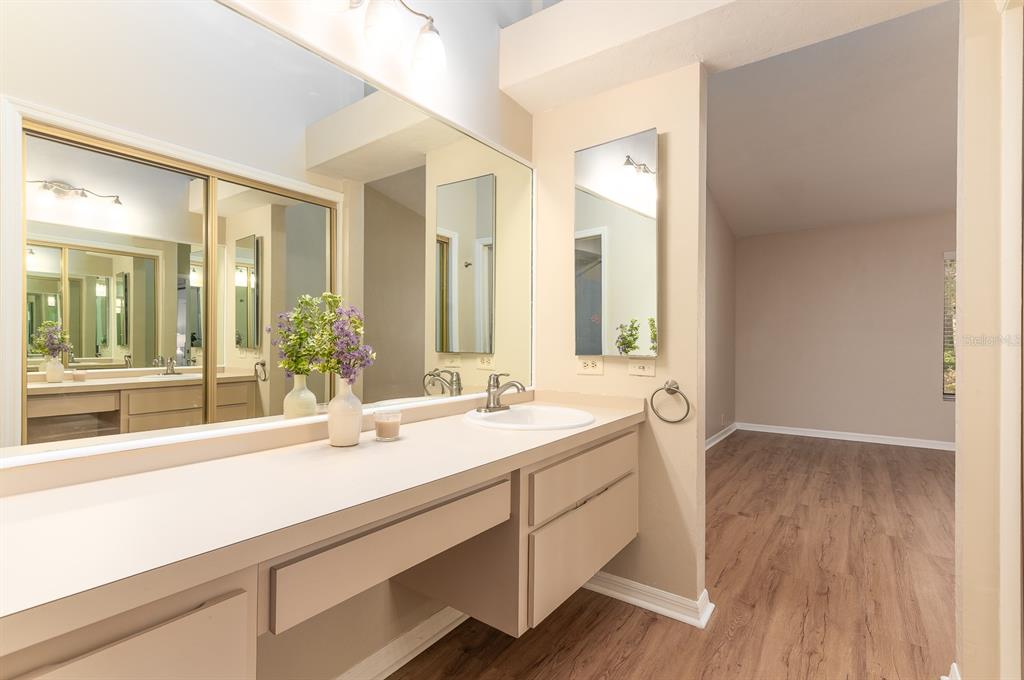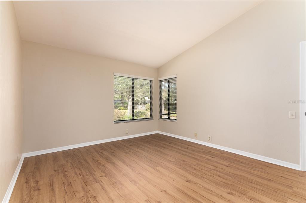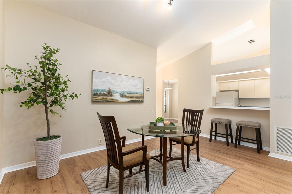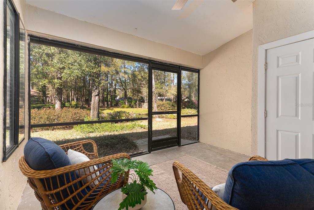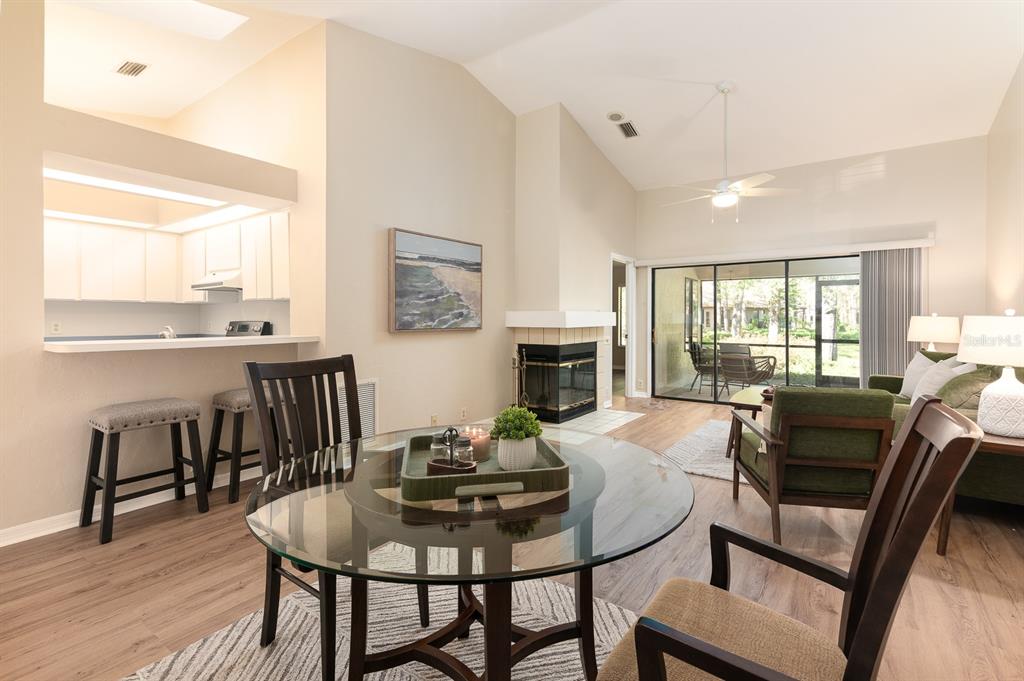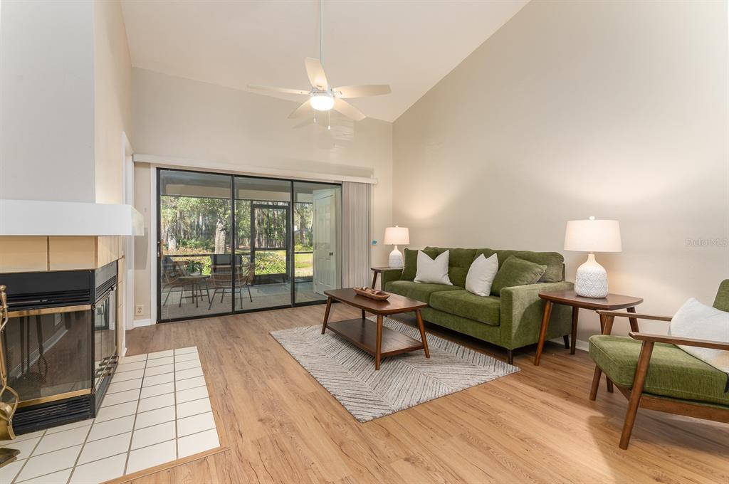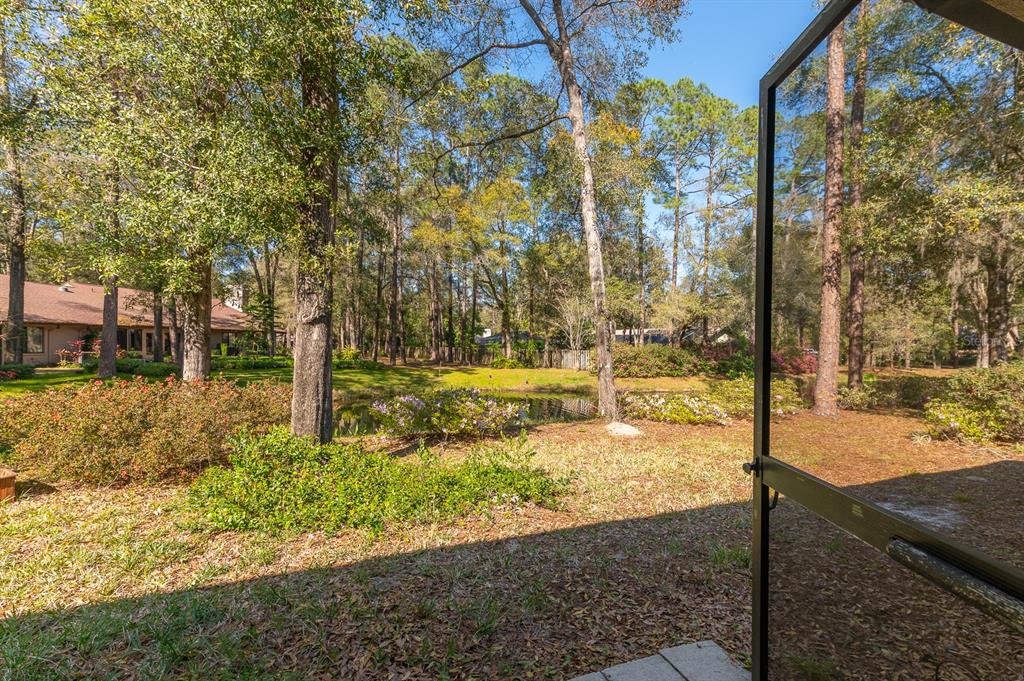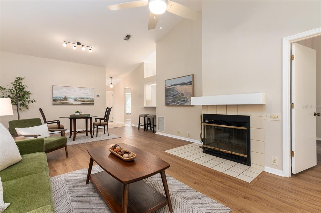 This spacious well-maintained, move-in ready, two-bedroom, two-bath townhome flat offers maintenance-free living at its finest. the bright, open floor plan features vaulted ceilings, creating an airy and inviting atmosphere. the kitchen has plenty of cabinet space, a pantry, an eat-in area with a bay window, and a breakfast bar that opens to the dining room and great room. the great room is highlighted by a beautiful wood-burning fireplace and a triple sliding glass door that leads to a screened porch with serene views of a private pond and fountain.the primary suite includes an en suite bath, a generous walk-in closet, a large vanity, and a walk-in shower. the sizable secondary bedroom has easy access to a hall bath with a tub/shower combination. luxury vinyl plank flooring runs throughout—no carpet! additional conveniences include an inside laundry closet, a storage room off the screened porch, two assigned parking spaces, and guest parking. ideally located in the heart of gainesville, this home is just minutes from fresh market, publix, popular restaurants, and shopping. wood creek village is not a condominium association.3915 NW 23RD #3915, GAINESVILLE, FL 32605