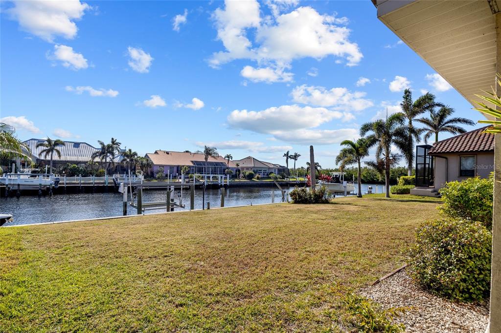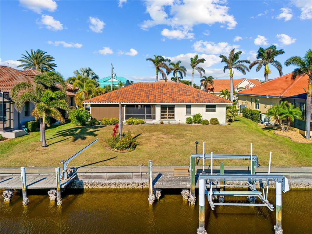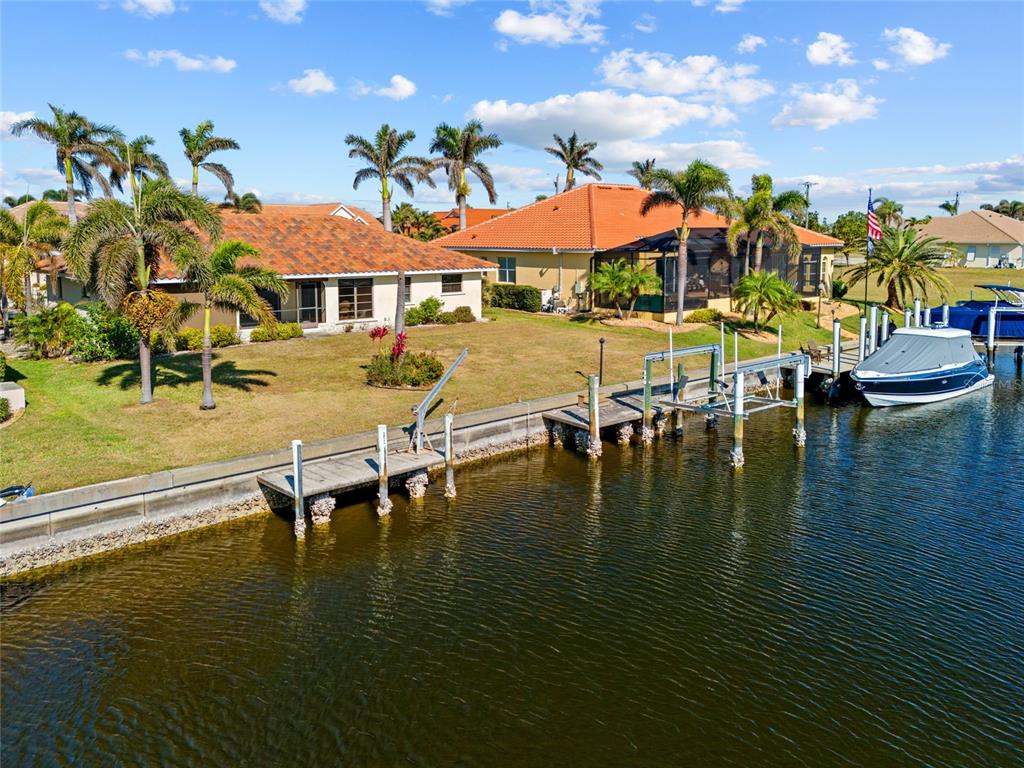 Punta gorda isles! spacious 3 bedroom, 2 bath, 2-car garage waterfront home with sailboat access to charlotte harbor leading to the gulf of mexico via buckley’s pass or ponce inlet! 90 ft of waterfrontage on wide canal, 2 concrete docks with water and electric plus 7,500 lb. boat lift and davit. new roof in 2024 and new a/c in 2023. screened front entry leads to an open floor plan featuring high ceilings, an abundance of natural light, neutral décor, formal dining room and living room with pocket slider to lanai. the kitchen offers granite counters, closet pantry and breakfast bar plus casual dining area with beautiful water views. the primary suite offers two walk-in closets, access to lanai and generous private bath with dual sinks, soaking tub and walk-in shower. a split floor plan provides privacy for guests with two nicely sized bedrooms and separate full bath. step outside to covered screened lanai overlooking large backyard with plenty of room to add your custom pool. additional features include one-owner home, hurricane shutters and screens for lanai, house re-piped overhead in 2015, transferrable warranty on roof, oversized garage with workshop area and tropical exterior landscaping. great location on quiet cul-de-sac street nestled in a popular golf and boating community, this home is just minutes from st. andrews south golf club, the yacht club, fishermen's village, and the historic downtown area of punta gorda. enjoy access to arts, community events, entertainment, world-class fishing, boating, fine dining, and beautiful parks, as well as easy access to the swfl gulf beaches. don't miss this opportunity to make this property your new snowbird retreat or permanent home. schedule your private showing today!3918 LA COSTA IS, PUNTA GORDA, FL 33950