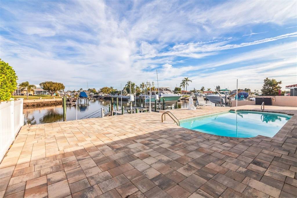 Flood insurance is transferrable!!! 500 feet to open gulf. 30 foot heated pool. two boat lifts. no electric bill, solar paid off. remodeled inside and out. owner will consider 50% ownership to a snowbird. this completely remodeled home boasts a stunning kitchen with granite countertops, a granite island, and new, high-end, soft-close wood cabinets (19 total!). remodeled bathrooms feature new tile showers and floors, an oversized tub, and new soft-close wood vanities with cultured marble sinks. new interior and exterior doors, 5-inch baseboards, and levolor no-string blinds throughout. updated lighting fixtures include bedroom fan/light, kitchen/dining area lights, garage lights, and exterior lights. double-pane windows. relax in the newly resurfaced 30-foot fiberglass heated pool (new hayward pump and salt system) and take advantage of the new solar system (no electric bill!). boaters will love the new 13,000lb and 11,000lb boat lifts, davits for a third vessel, a brand-new floating boat dock, and a jet ski floating dock. new flagstone pavers surround the home and pool. new gutters with underground drainage to canal. new privacy vinyl fence. 7-year-old a/c with a 15-year warranty. generator transfer switch. located on a quiet dead-end street. don't miss this opportunity!3939 RUDDER, NEW PORT RICHEY, FL 34652