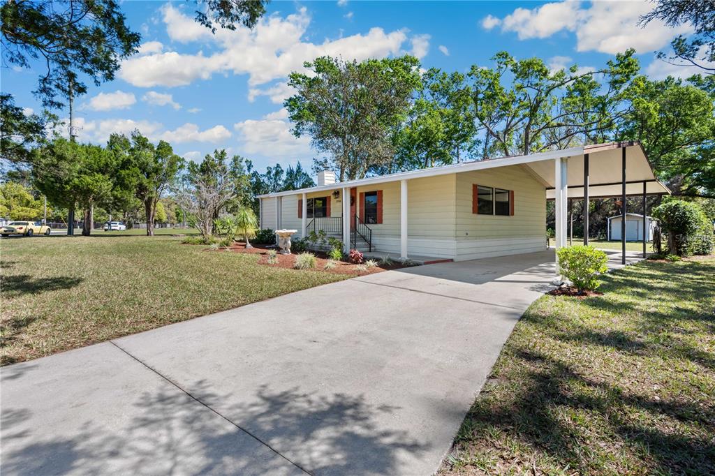 Charming country living in wesley chapel – 2br/2ba palm harbor home on half an acre. welcome to country living at its finest! this charming two-bedroom, two-bathroom palm harbor double-wide home is nestled on just over half an acre, surrounded by majestic oak and palm trees and a beautifully landscaped front garden. whether you're looking for the perfect place to raise a family or retire in a peaceful setting, this home offers the best of both worlds. step inside to an open-concept design that seamlessly connects the living room, dining room, and kitchen, creating a warm and inviting space ideal for entertaining. the kitchen features vinyl flooring, a breakfast bar, ample cabinetry, and a closet pantry, offering plenty of storage and counter space to please any home chef. the living and dining areas are bright and spacious, with carpeting that adds to the home’s cozy feel. the split-bedroom layout provides added privacy, with the owner’s retreat positioned separately from the second bedroom. the primary suite is a true retreat, complete with a walk-in closet, ceiling fan, and an ensuite bath featuring a step-in shower and a relaxing garden tub. at the opposite end of the home, the second bedroom is generously sized and conveniently located near the guest bathroom, which includes a tub/shower combo. an inside laundry room, measuring 6x5, comes equipped with a washer and dryer for added convenience. the outdoor space is just as impressive as the interior. a large 11x20 screened back deck offers the perfect spot to enjoy the warm florida breezes while overlooking the peaceful expanse of your private backyard. a covered patio area is ideal for a barbecue pit, campfire setup, or outdoor entertaining. the home also includes an attached double carport for ample parking and two storage buildings, providing plenty of extra space for tools, hobbies, or additional storage needs. with recent updates, including a 2009 ac and a brand-new shingle roof in 2025, this well-constructed home is move-in ready. best of all, there’s no hoa, meaning you can enjoy the freedom of homeownership without extra fees or restrictions. located in a desirable area of wesley chapel, this property offers the perfect blend of privacy and convenience, with easy access to shopping, dining, and major roadways. don't miss this incredible opportunity—schedule your showing today!3946 ERNEST, WESLEY CHAPEL, FL 33543