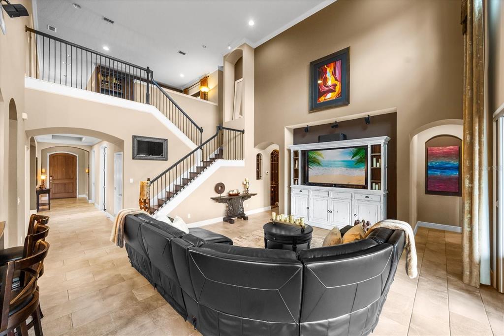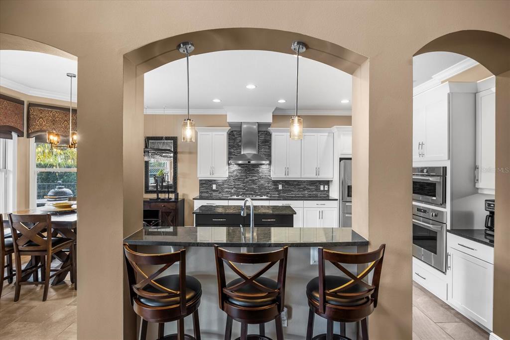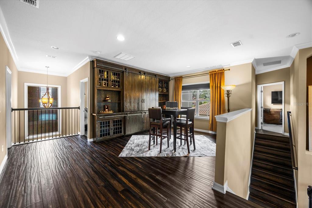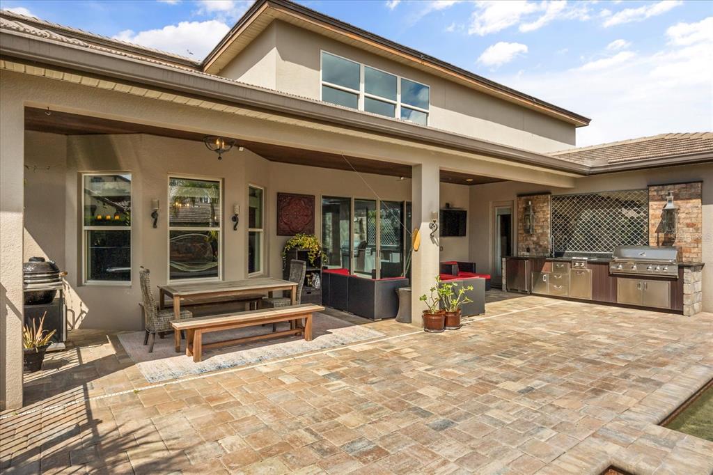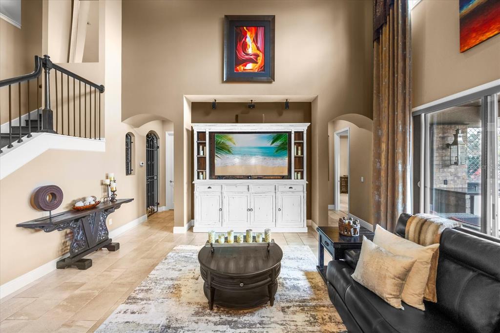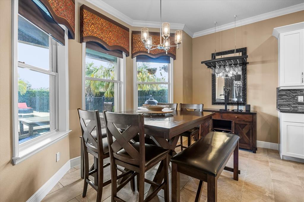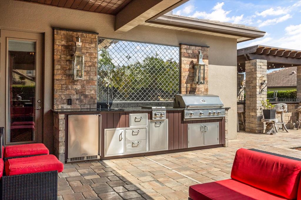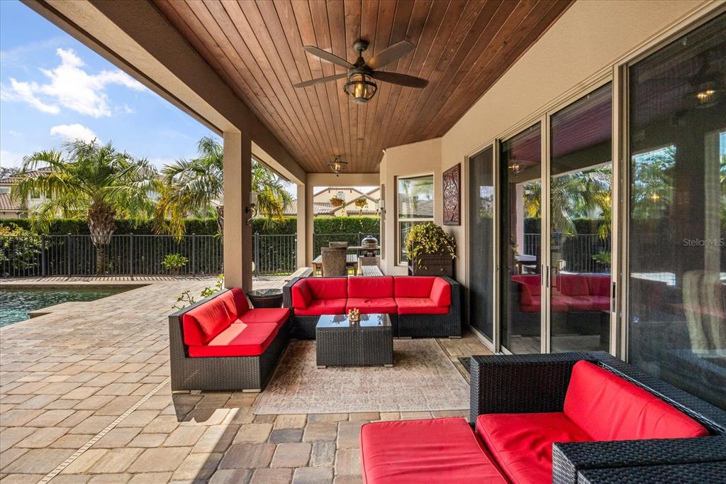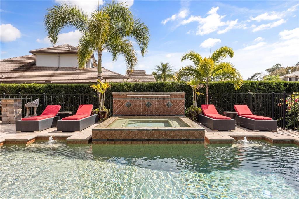 One or more photo(s) has been virtually staged. stunning “granada plan,” resort-style home in the heart of the gated steeple chase community located in lake mary. craftsman woodworking detailing throughout the home, and adorns this private, outdoor retreat from the tongue and groove wood ceiling in the expansive lanai to the decked-out summer kitchen including natural gas stove and grill, frig, and attractive, gas-lit coach lights. you can enjoy your saltwater pool and heated spa while relaxing in the outdoor bar. it's equipped with beer taps, storage, and a sink with plenty of seating options. a fence line of mature podocarpus shrubs surrounds this secluded outdoor space, and this area boasts surround sound speakers as well as mosquito control using all-natural products. upon entering, you will find a well- organized open concept. the gourmet style kitchen has a dual oven/microwave combo, a center island for extra prep space, tons of counter space sure to please, a walk-in pantry, and a farmhouse sink. unique to this home is a secluded wine room, with a wrought iron door entrance and window feature, welcoming you to the custom cabinetry and solid surface tops with its own beer tap . enjoy the generous great room overlooking the outdoor pool area. the oversized, private, first-floor master suite includes walk-in closets and a luxurious shower. it also has a soaker tub, dual vanity, and a water closet. first-floor office, with custom-built storage, wood floors, and a shoe cabinet has flexibility to be a guest room. upstairs, there are 4 bedrooms and 3 full bathrooms as well as a loft area that includes a beautiful built-in wall unit. the first- floor laundry room accesses the single-car garage as well as the driveway. a separate 2-car garage includes ceiling storage for all your needs. all this with an incredible location nearby to great schools, world-class dining, shopping, and a bustling business district and all major highways. this property may be under audio/visual surveillance. call today for your private home showing.3955 EQUINE, LAKE MARY, FL 32746