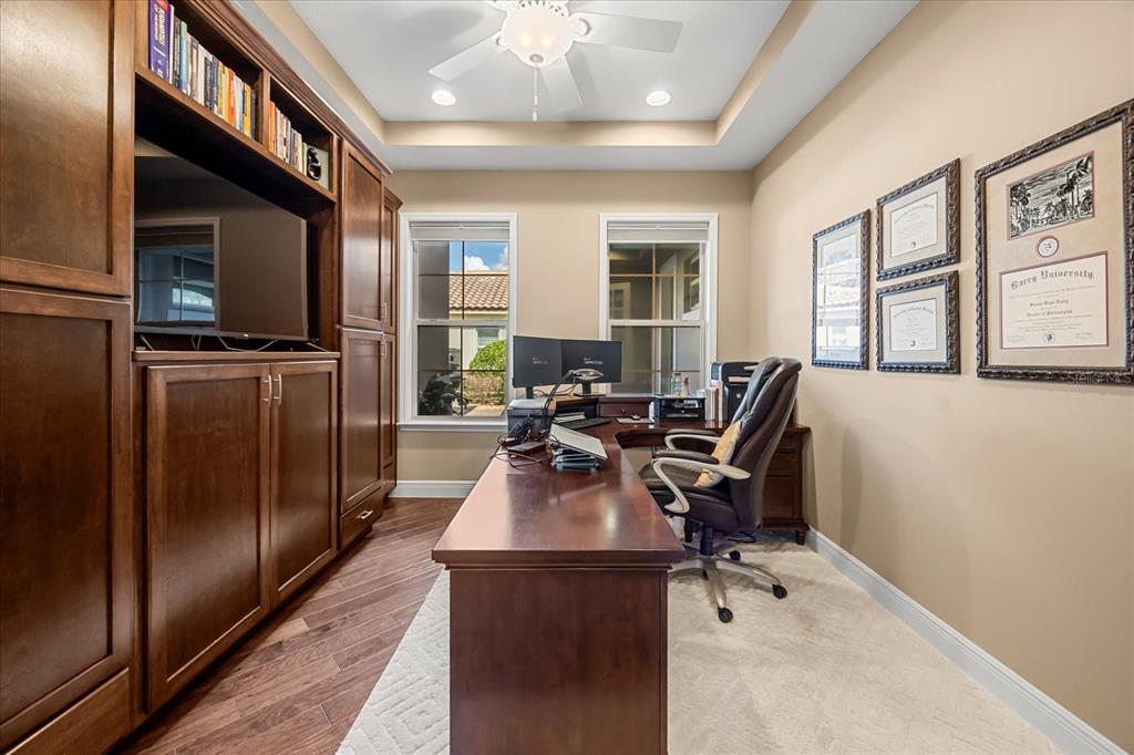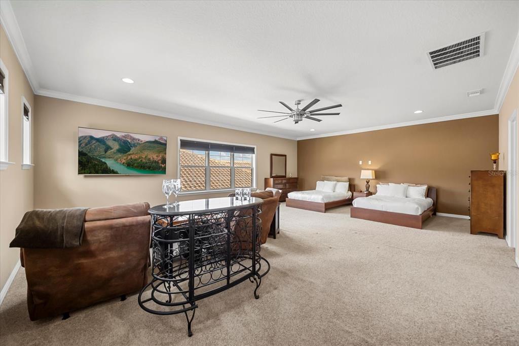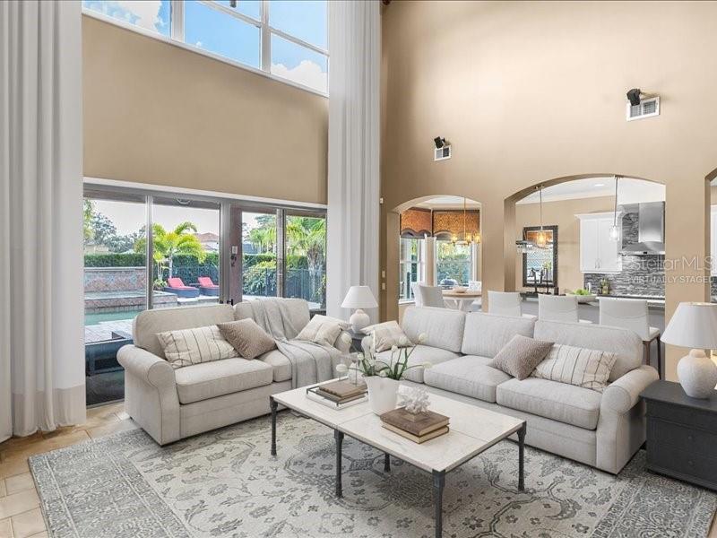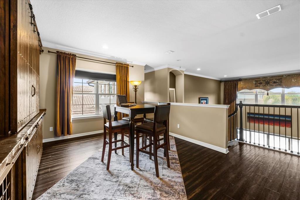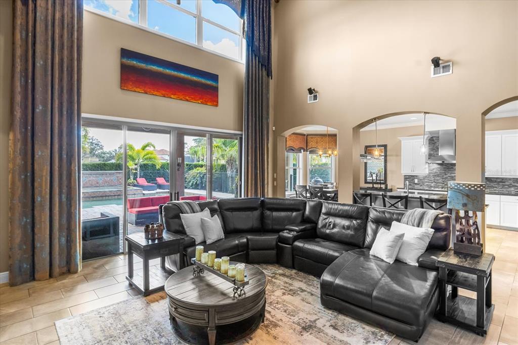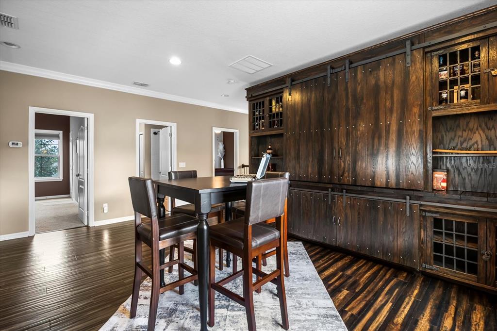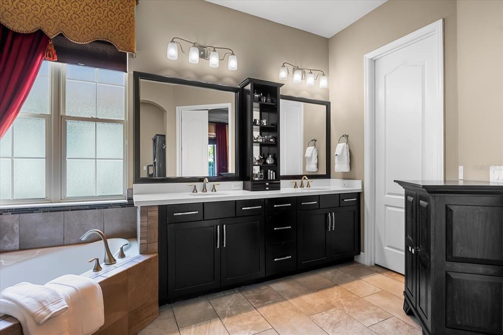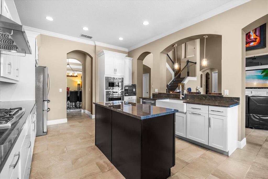 One or more photo(s) has been virtually staged. stunning “granada plan,” resort-style home in the heart of the gated steeple chase community located in lake mary. craftsman woodworking detailing throughout the home, and adorns this private, outdoor retreat from the tongue and groove wood ceiling in the expansive lanai to the decked-out summer kitchen including natural gas stove and grill, frig, and attractive, gas-lit coach lights. you can enjoy your saltwater pool and heated spa while relaxing in the outdoor bar. it's equipped with beer taps, storage, and a sink with plenty of seating options. a fence line of mature podocarpus shrubs surrounds this secluded outdoor space, and this area boasts surround sound speakers as well as mosquito control using all-natural products. upon entering, you will find a well- organized open concept. the gourmet style kitchen has a dual oven/microwave combo, a center island for extra prep space, tons of counter space sure to please, a walk-in pantry, and a farmhouse sink. unique to this home is a secluded wine room, with a wrought iron door entrance and window feature, welcoming you to the custom cabinetry and solid surface tops with its own beer tap . enjoy the generous great room overlooking the outdoor pool area. the oversized, private, first-floor master suite includes walk-in closets and a luxurious shower. it also has a soaker tub, dual vanity, and a water closet. first-floor office, with custom-built storage, wood floors, and a shoe cabinet has flexibility to be a guest room. upstairs, there are 4 bedrooms and 3 full bathrooms as well as a loft area that includes a beautiful built-in wall unit. the first- floor laundry room accesses the single-car garage as well as the driveway. a separate 2-car garage includes ceiling storage for all your needs. all this with an incredible location nearby to great schools, world-class dining, shopping, and a bustling business district and all major highways. this property may be under audio/visual surveillance. call today for your private home showing.3955 EQUINE, LAKE MARY, FL 32746