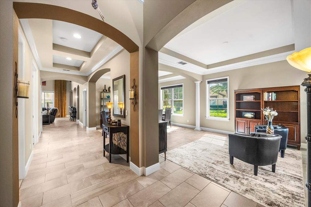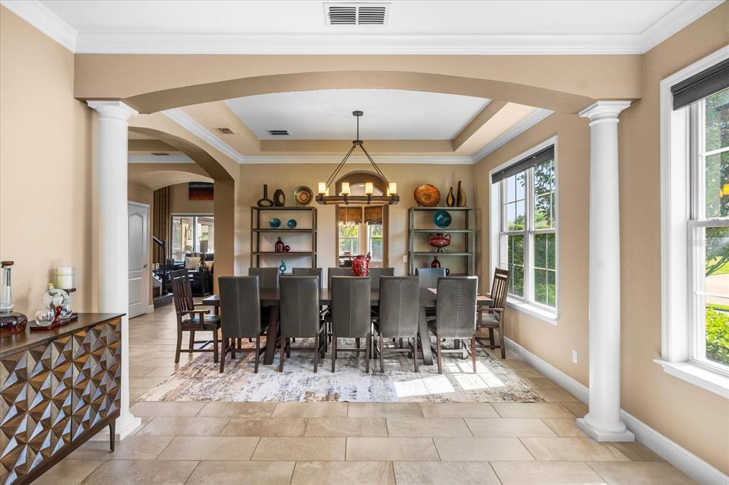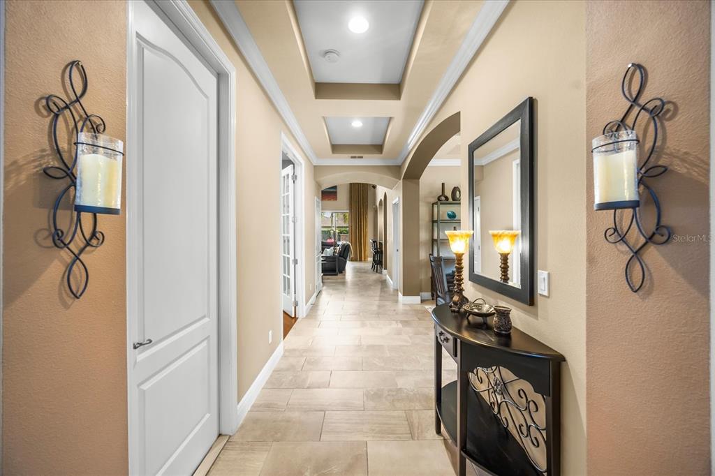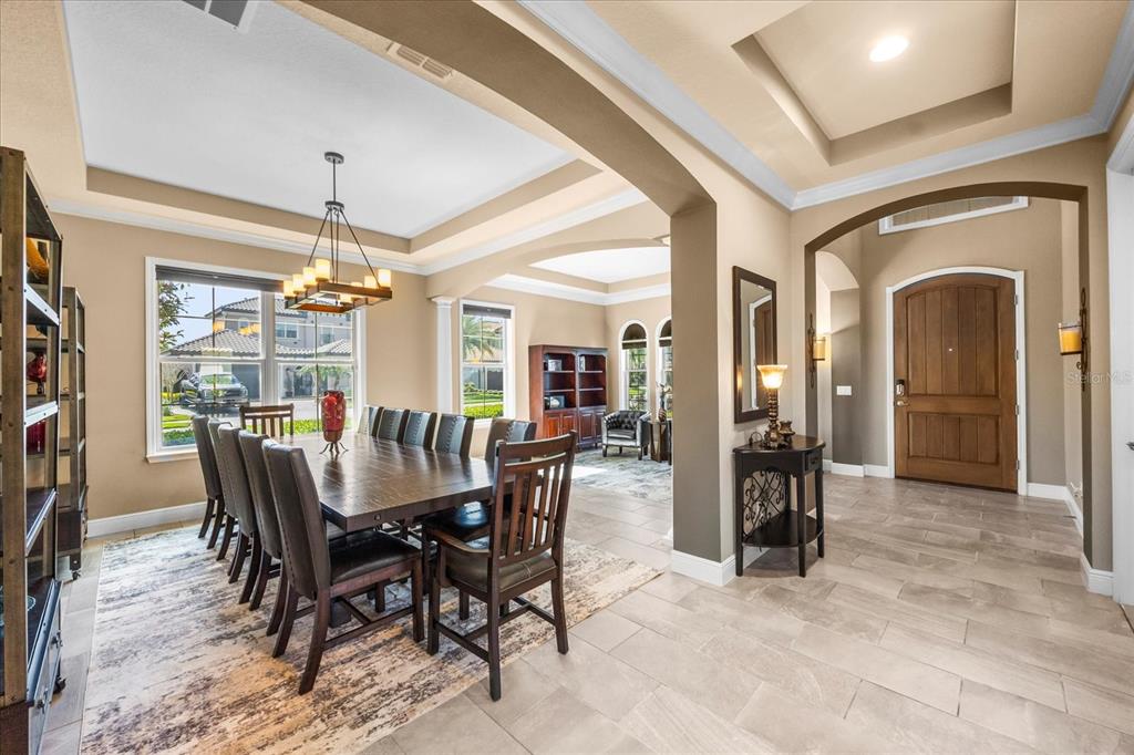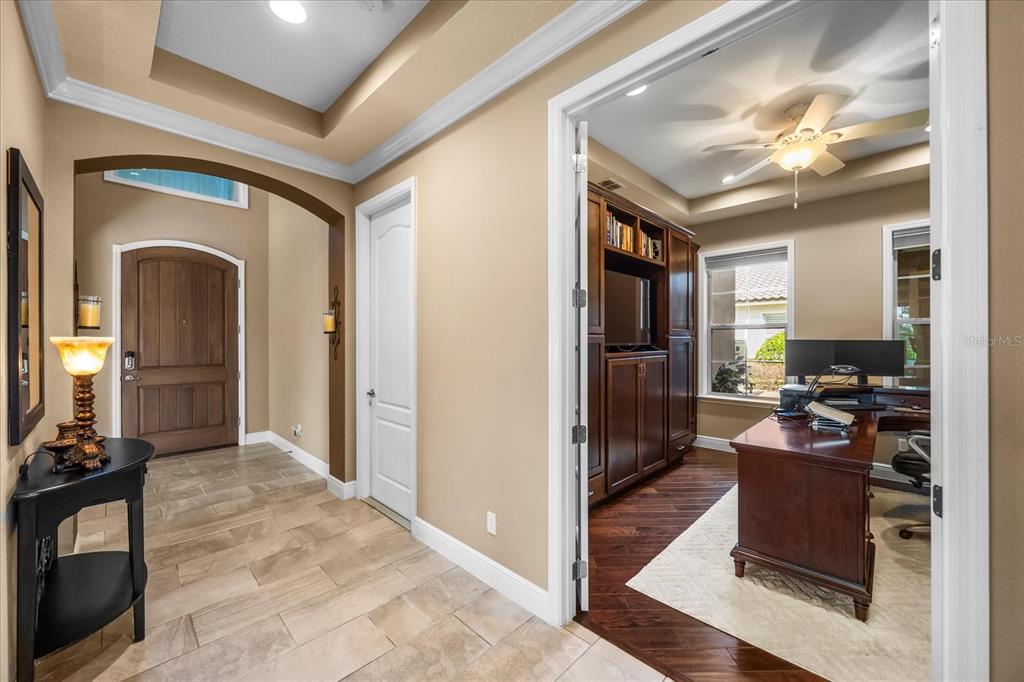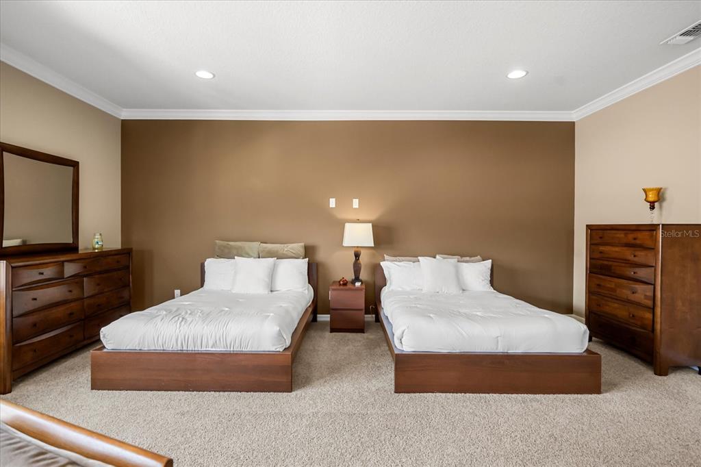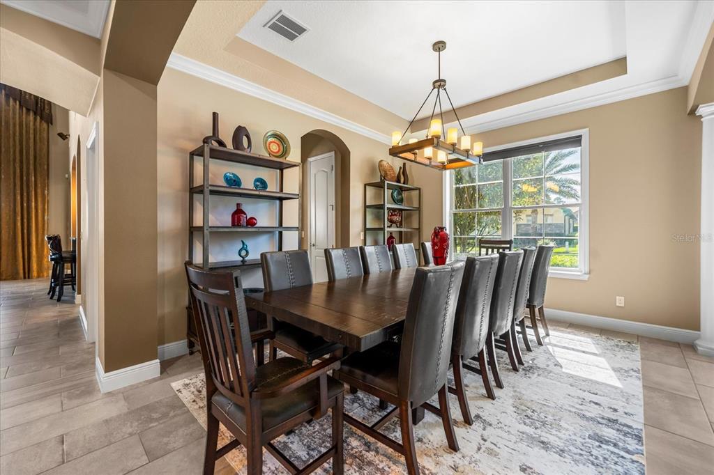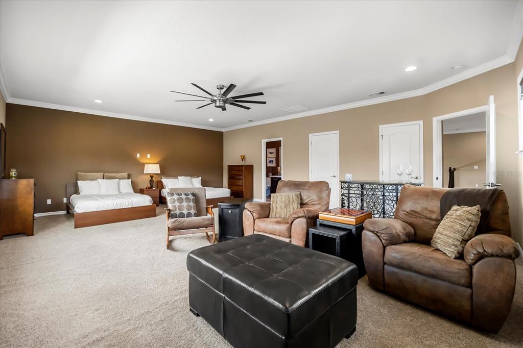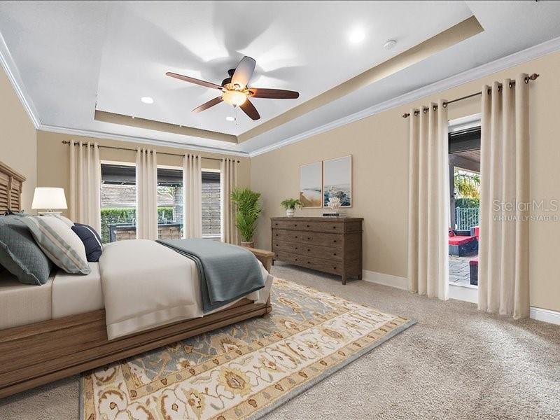 One or more photo(s) has been virtually staged. stunning “granada plan,” resort-style home in the heart of the gated steeple chase community located in lake mary. craftsman woodworking detailing throughout the home, and adorns this private, outdoor retreat from the tongue and groove wood ceiling in the expansive lanai to the decked-out summer kitchen including natural gas stove and grill, frig, and attractive, gas-lit coach lights. you can enjoy your saltwater pool and heated spa while relaxing in the outdoor bar. it's equipped with beer taps, storage, and a sink with plenty of seating options. a fence line of mature podocarpus shrubs surrounds this secluded outdoor space, and this area boasts surround sound speakers as well as mosquito control using all-natural products. upon entering, you will find a well- organized open concept. the gourmet style kitchen has a dual oven/microwave combo, a center island for extra prep space, tons of counter space sure to please, a walk-in pantry, and a farmhouse sink. unique to this home is a secluded wine room, with a wrought iron door entrance and window feature, welcoming you to the custom cabinetry and solid surface tops with its own beer tap . enjoy the generous great room overlooking the outdoor pool area. the oversized, private, first-floor master suite includes walk-in closets and a luxurious shower. it also has a soaker tub, dual vanity, and a water closet. first-floor office, with custom-built storage, wood floors, and a shoe cabinet has flexibility to be a guest room. upstairs, there are 4 bedrooms and 3 full bathrooms as well as a loft area that includes a beautiful built-in wall unit. the first- floor laundry room accesses the single-car garage as well as the driveway. a separate 2-car garage includes ceiling storage for all your needs. all this with an incredible location nearby to great schools, world-class dining, shopping, and a bustling business district and all major highways. this property may be under audio/visual surveillance. call today for your private home showing.3955 EQUINE, LAKE MARY, FL 32746