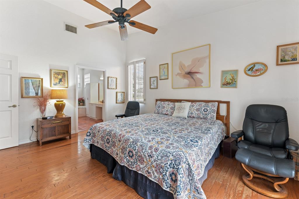 Split Bedroom Walk-In Closet(s)Ceiling Fan(s) High Ceilings Solid Surface Counters Primary Bedroom Main FloorExterior Features: