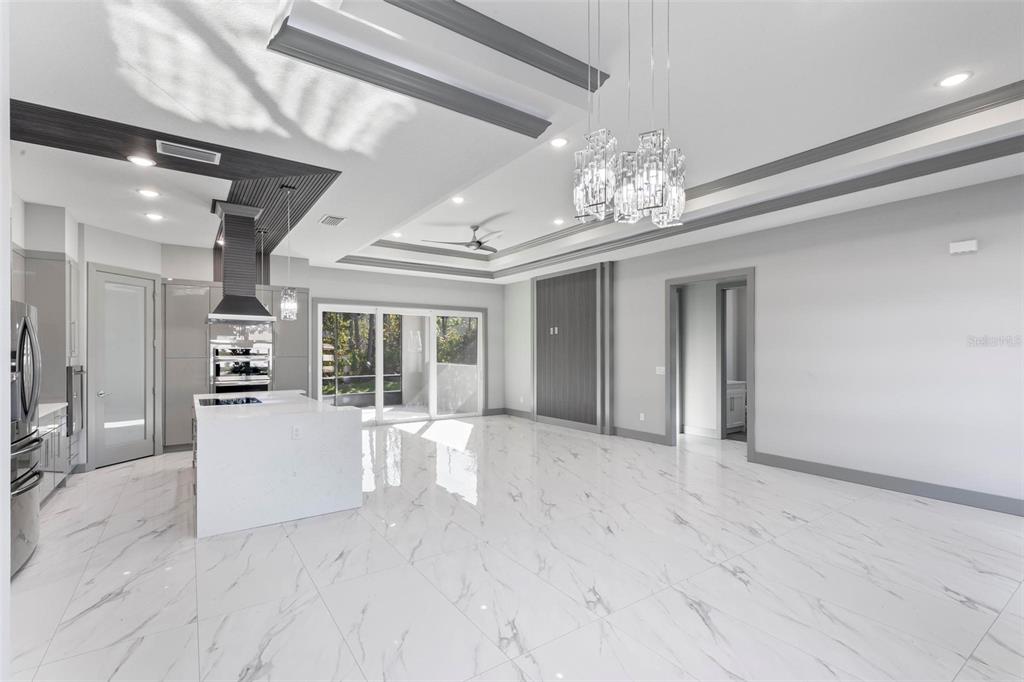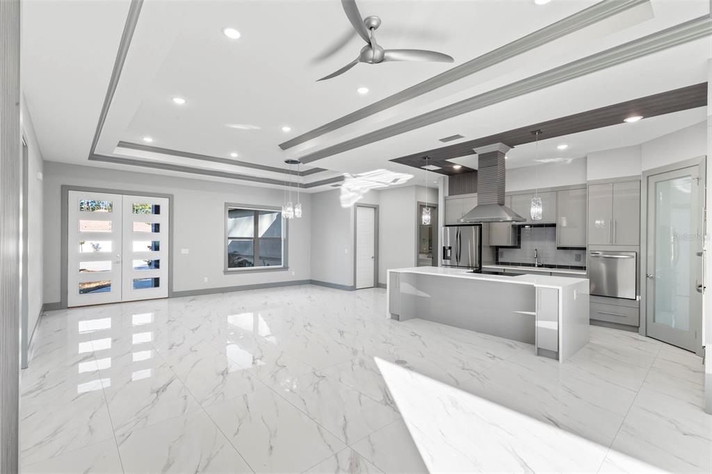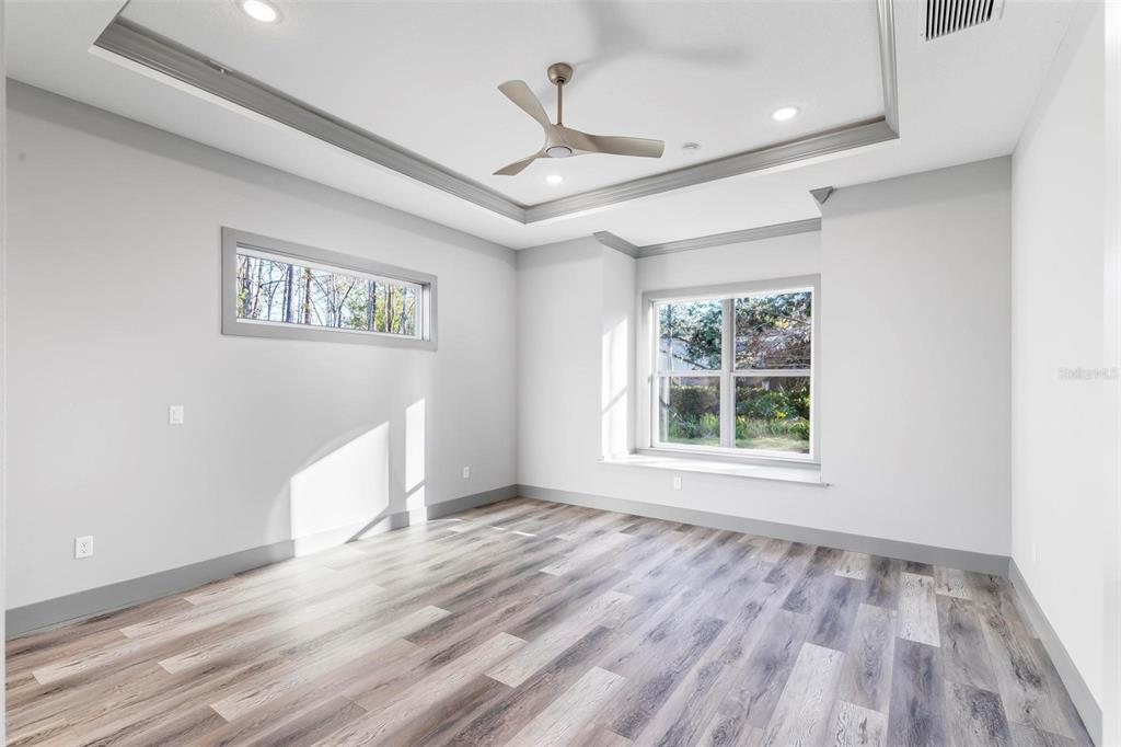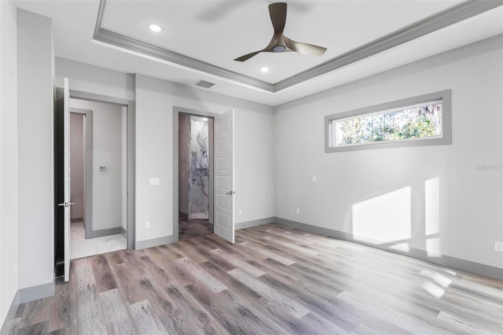 Split Bedroom Walk-In Closet(s)Ceiling Fan(s) High Ceilings Stone Counters Thermostat Open FloorplanCrown Molding Primary Bedroom Main Floor Kitchen/Family Room Combo Tray Ceiling(s)Exterior Features: