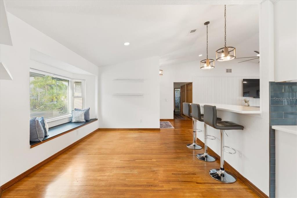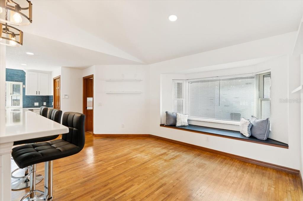 Vaulted Ceiling(s)Ceiling Fan(s) Eating Space In Kitchen Living Room/Dining Room Combo Thermostat Open Floorplan Window Treatments Solid Surface CountersCrown Molding Primary Bedroom Main Floor Dry BarExterior Features: