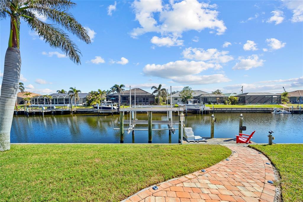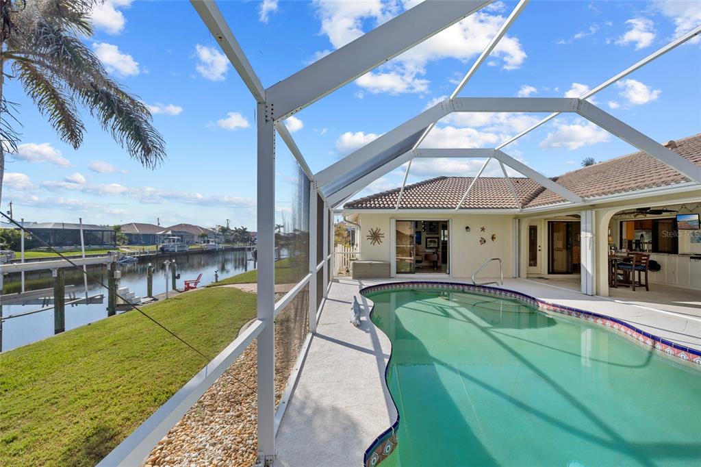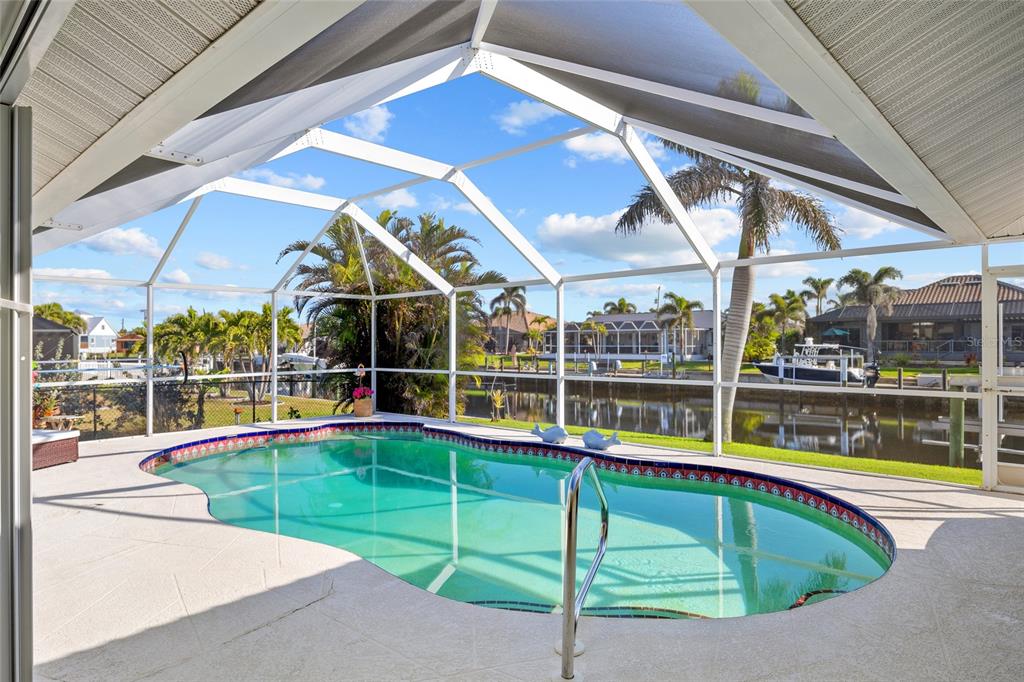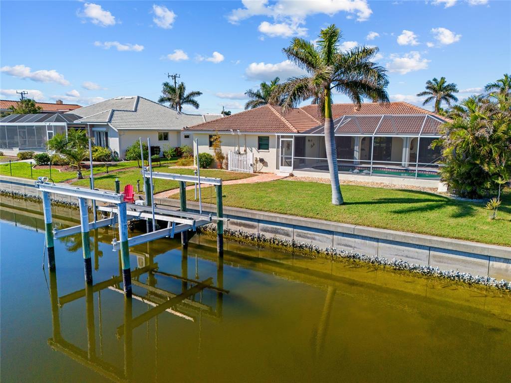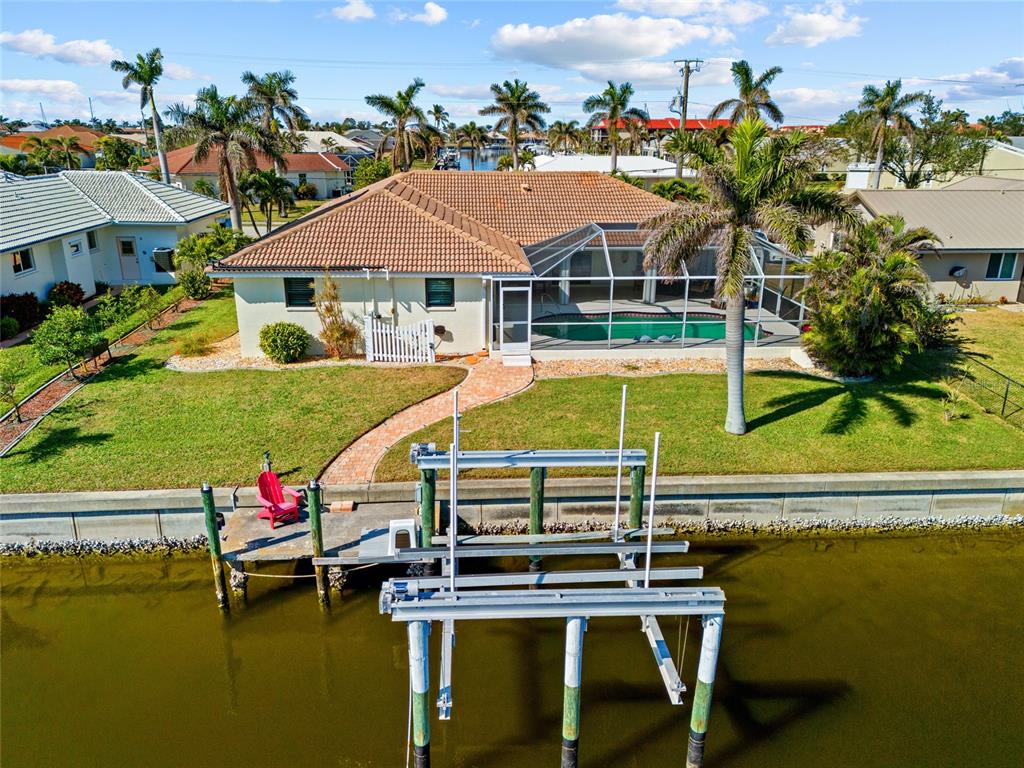 Punta gorda isles! beautifully updated 4 bedroom, 2 bath, 2-car garage waterfront pool home with powerboat access to charlotte harbor leading to the gulf of mexico! for the avid boater, this property features 85’ ft of waterfrontage, concrete seawall, dock with water and electric and 20,000 lb. boat lift perfect for those who love the water and the vibrant lifestyle of this sought-after community. as you step inside, you'll be greeted by a customized contemporary living space with high ceilings and plantation shutters that add a touch of elegance. the tile flooring in the main living areas leads you through a spacious 2,175 square feet of living space, where every detail has been thoughtfully crafted. the large open kitchen is a chef's delight, featuring granite counters, a stylish backsplash, ample cabinetry for storage, stainless steel appliances, and a breakfast bar. a convenient pass-through window to the lanai makes outdoor entertaining a breeze. the dining area flows seamlessly into a light and bright family room with sliders that open to the covered lanai and screened solar-heated pool. imagine enjoying your morning coffee here, with an eastern exposure that provides stunning sunrise views. the primary suite is a true retreat, boasting a pocket slider to the lanai and an updated bath with dual sinks and a glass walk-in shower. the split floor plan ensures privacy for guests, with a separate wing and updated full bath with pool access. additional features include impact windows and doors, inside laundry room, paver driveway and walkway to dock, irrigation system and mature tropical landscaping this home is part of a vibrant community known for its golf and boating amenities. you'll be conveniently close to the st. andrews south golf club, the yacht club, fishermen's village, and the historic downtown area of punta gorda. enjoy a lifestyle rich in arts, entertainment, world-class fishing and boating, fine dining, and beautiful parks, with easy access to the stunning swfl gulf beaches. don’t miss this opportunity! schedule your private showing today!400 CORONADO, PUNTA GORDA, FL 33950
