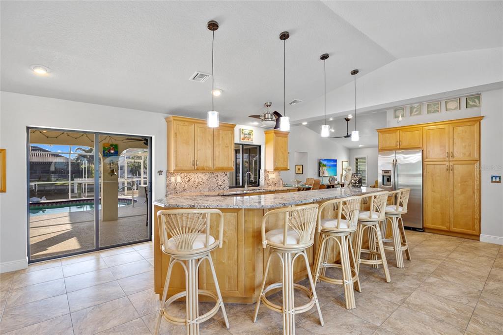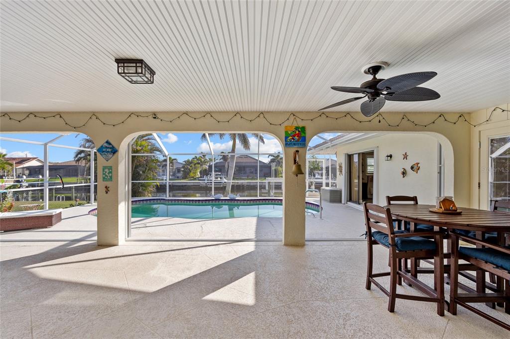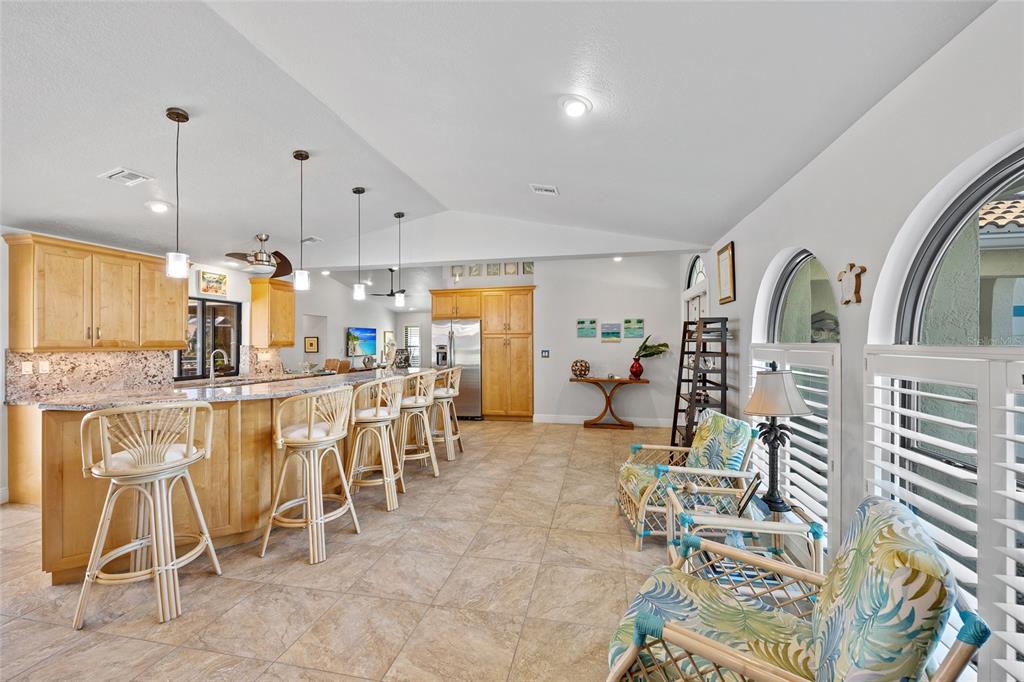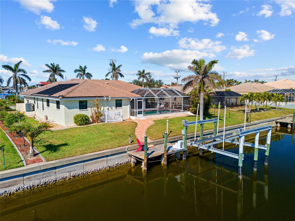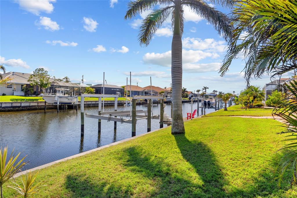 Punta gorda isles! beautifully updated 4 bedroom, 2 bath, 2-car garage waterfront pool home with powerboat access to charlotte harbor leading to the gulf of mexico! for the avid boater, this property features 85’ ft of waterfrontage, concrete seawall, dock with water and electric and 20,000 lb. boat lift perfect for those who love the water and the vibrant lifestyle of this sought-after community. as you step inside, you'll be greeted by a customized contemporary living space with high ceilings and plantation shutters that add a touch of elegance. the tile flooring in the main living areas leads you through a spacious 2,175 square feet of living space, where every detail has been thoughtfully crafted. the large open kitchen is a chef's delight, featuring granite counters, a stylish backsplash, ample cabinetry for storage, stainless steel appliances, and a breakfast bar. a convenient pass-through window to the lanai makes outdoor entertaining a breeze. the dining area flows seamlessly into a light and bright family room with sliders that open to the covered lanai and screened solar-heated pool. imagine enjoying your morning coffee here, with an eastern exposure that provides stunning sunrise views. the primary suite is a true retreat, boasting a pocket slider to the lanai and an updated bath with dual sinks and a glass walk-in shower. the split floor plan ensures privacy for guests, with a separate wing and updated full bath with pool access. additional features include impact windows and doors, inside laundry room, paver driveway and walkway to dock, irrigation system and mature tropical landscaping this home is part of a vibrant community known for its golf and boating amenities. you'll be conveniently close to the st. andrews south golf club, the yacht club, fishermen's village, and the historic downtown area of punta gorda. enjoy a lifestyle rich in arts, entertainment, world-class fishing and boating, fine dining, and beautiful parks, with easy access to the stunning swfl gulf beaches. don’t miss this opportunity! schedule your private showing today!400 CORONADO, PUNTA GORDA, FL 33950
